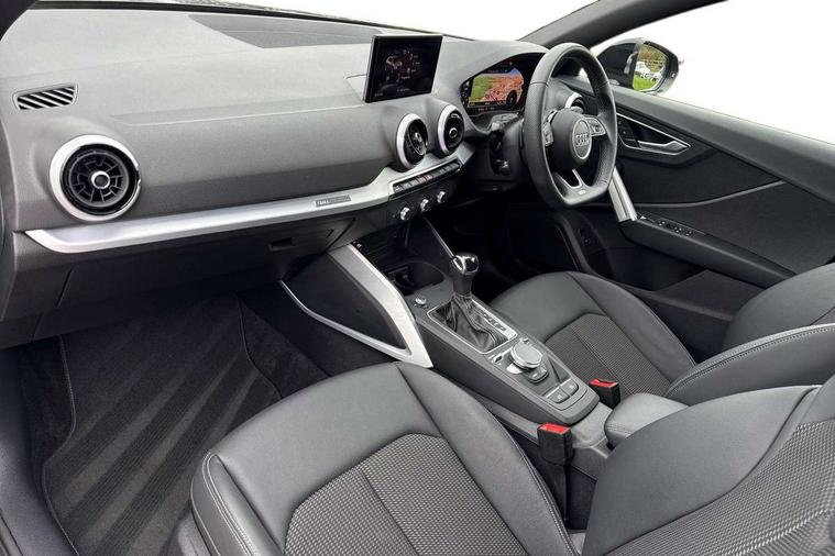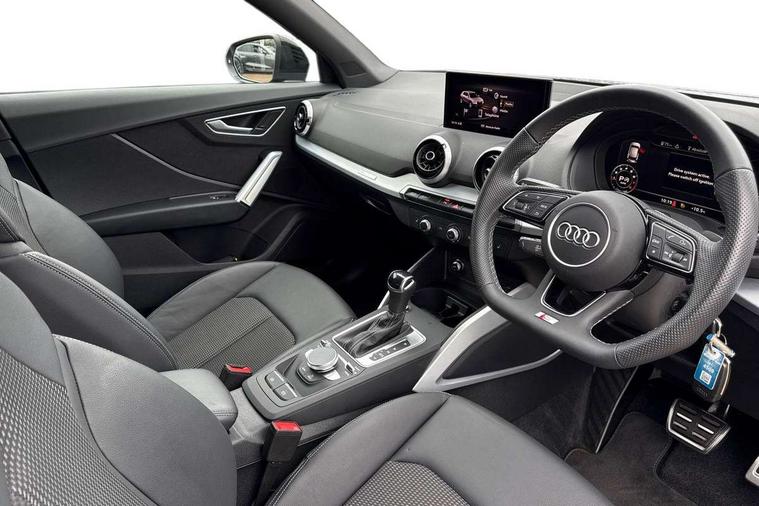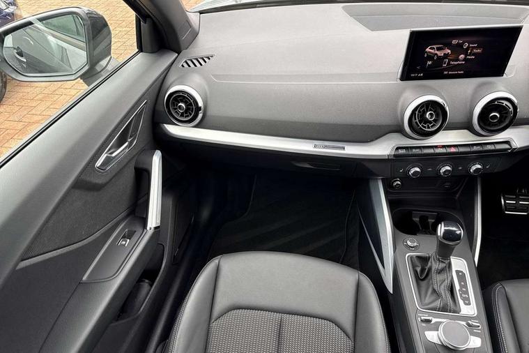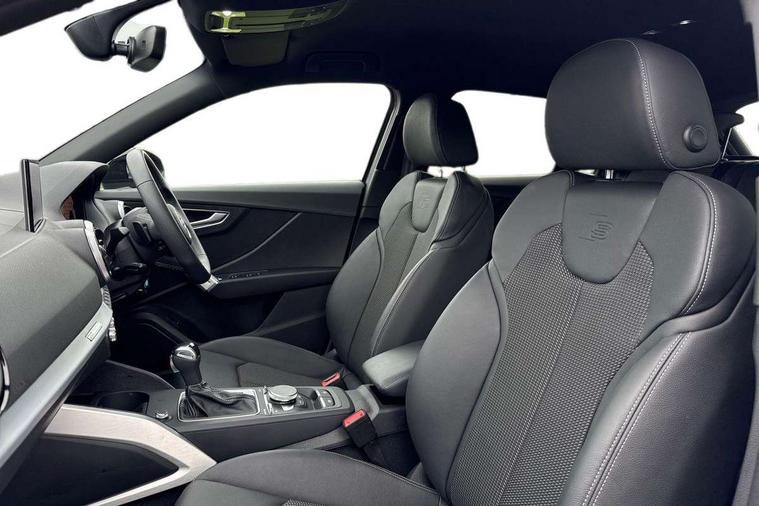 3D map display, Audi connect navigation and infotainment includes innovative services, Audi connect remote and control connects your vehicle to your smartphone, Audi drive select: S tronic - power steering assistance + engine + gearshift (modes: comfort, auto, dynamic, efficiency, individual), Audi smartphone interface - Apple carplay/Android Auto, USB connect, 2xSDXC card readers, voice control for navi, telephone, music and 3rd party apps, Audi virtual cockpit, Automatic start/stop system with recuperation, Bluetooth interface includes bluetooth audio streaming, Cruise control, Distraction and Fatigue warning, E-call, Jukebox hard drive memory for music (10GB), Lane departure warning, MMI navigation plus with 8.8" touchscreen, Natural voice recognition, Power operated tailgate, Progressive steering, Rear parking sensors, Sport suspension, 6 passive loudspeakers, DAB Digital radio, USB type C port, Audi beam, Auto dimming rear view mirror, Black window trims, Bumper in full body colour paint finish, Electrically adjustable, folding, auto dimming and heated door mirrors with integrated LED side indicators, Front windscreen with grey tinted sunband, LED daytime running lights, LED headlights with dipped beam, high beam, position lights, indicators, LED rear lights, LED third brake light, Privacy glass - dark tinted rear and rear side windows from B-pillar backwards, Rear side wing doors, Rear wiper, Variable front intermittent wipers, Wheel arch trims in manhattan grey, 12V socket in front, 3 seat bench in 2nd row, 3 spoke flat bottomed multi-function leather sport steering wheel with gear shift paddles, 4-way electric lumbar support for front seats including manual seat height adjustment for both front seats, 60/40 split folding rear seat bench, Black carpets, Black cloth headlining, Front and rear head restraints, Front centre armrest, Front sport seats, Front/rear floor mats, Height/reach adjust steering wheel, Illuminated door sill trims with S logo, ISOFIX child seat mounting in front passenger and rear outer seats, Manual air conditioning, Single front passenger seat, Stainless steel pedals, Black styling pack - Q2, 3x3 point rear seatbelts, 6 airbags - Front, curtain and front side airbags, Electromechanical parking brake, Electronic stabilisation control including ABS, ASR and EDL, Front passenger airbag deactivation, Hill hold assist, Pre-sense front with pedestrian recognition, Seatbelt monitoring, Tyre pressure warning light with visual and acoustic warning, Warning triangle and first aid kit, Anti theft alarm, Anti theft wheel bolts, Electronically operated child locks, Remote central door locking, Aluminium interior element, Black dashboard, Gloss black centre console, Matt brushed aluminium trim inlays, Tool kit,
