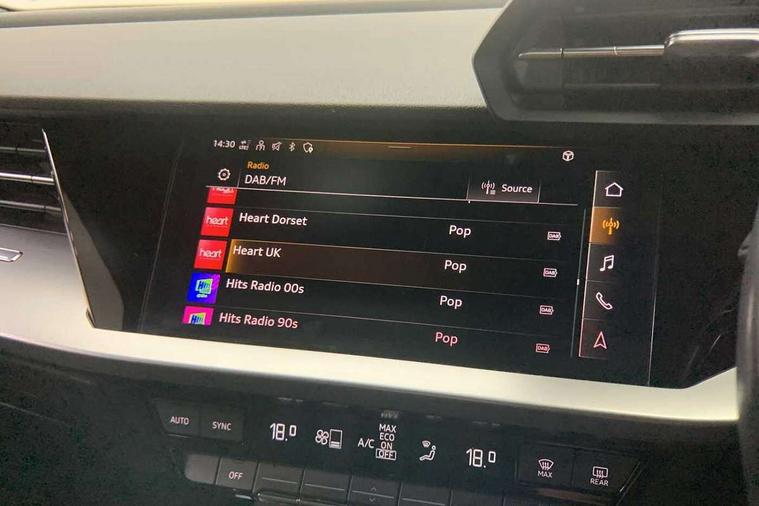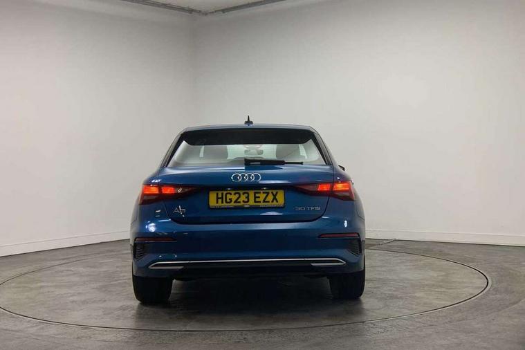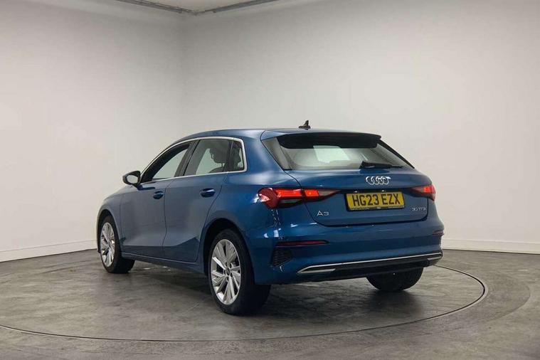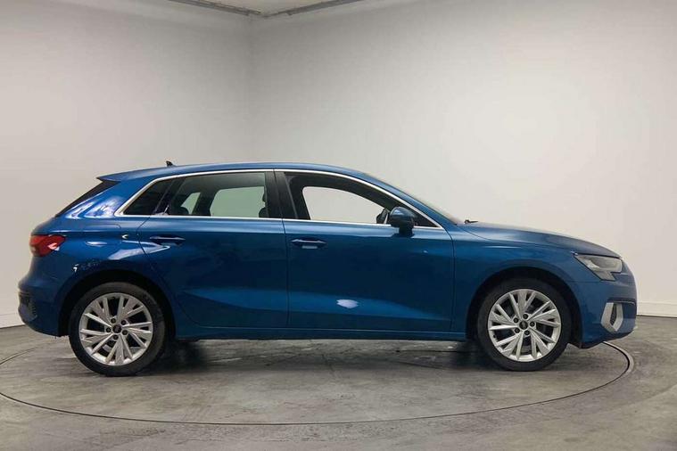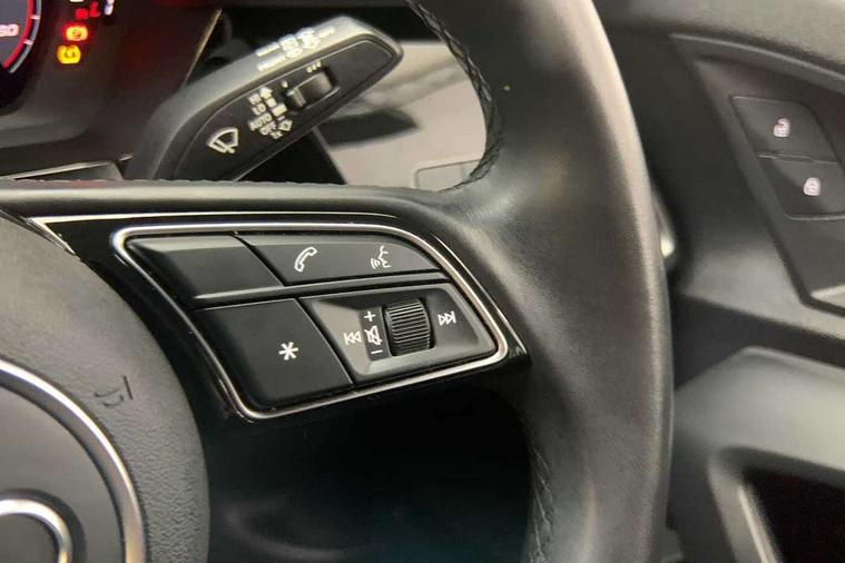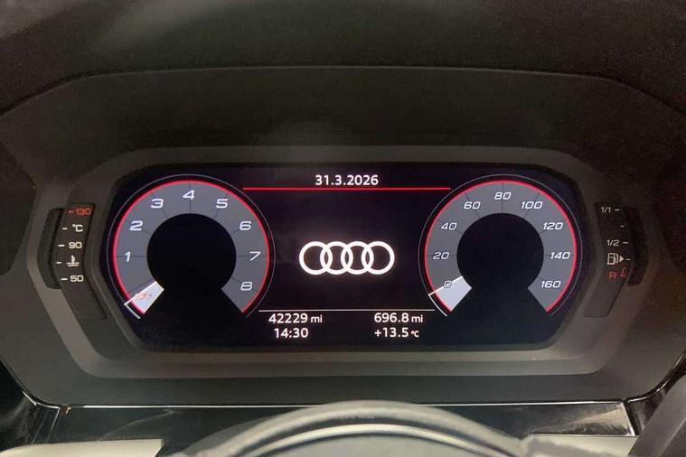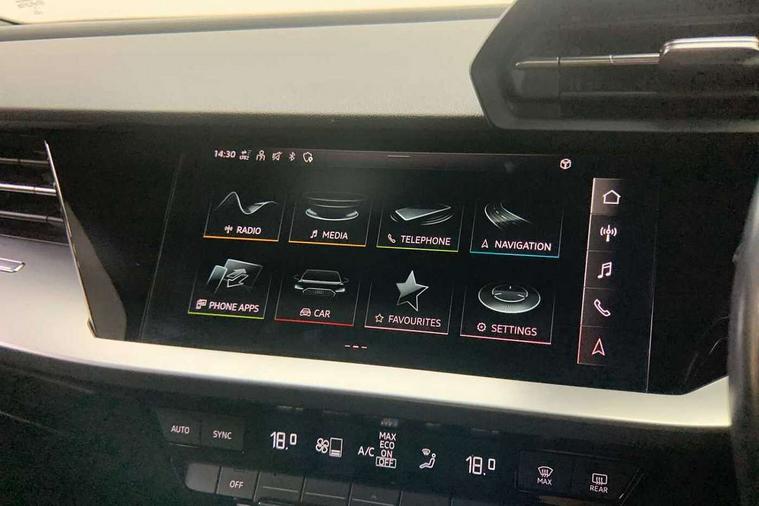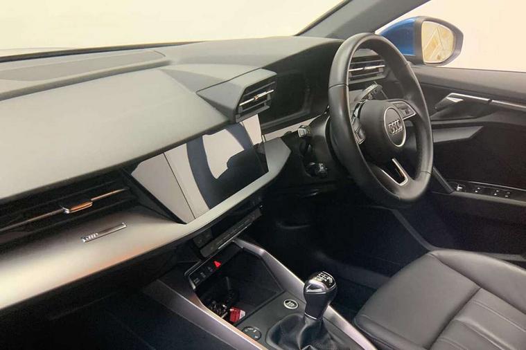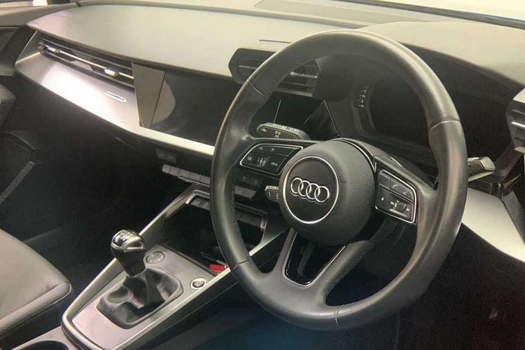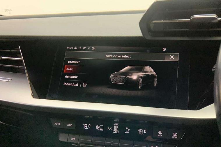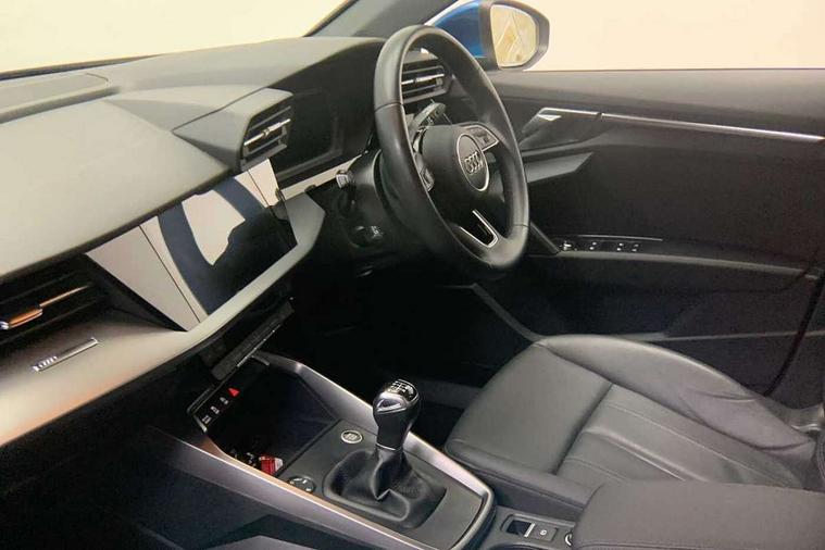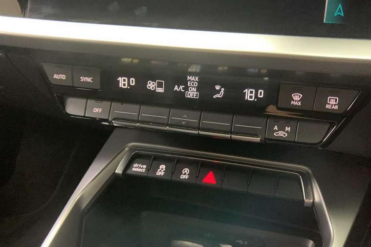 Audi drive select (Auto, Comfort, Dynamic and Individual), Audi smartphone interface, Audi Virtual Cockpit - 10.25" digital and colour instrument cluster, Automatic start/stop system with recuperation, Bluetooth interface, Camera based traffic sign recognition, Collision avoidance assistant, Cruise control, e-Call (emergency call), Electromechanical power speed sensitive steering, Lane departure warning system, MMI Navigation Plus with high resolution 10.1" colour touch screen display, Rear parking sensors, Service indicator, Trip computer, Voice control system with natural language interaction, Standard suspension, 2xUSB-C connection with data and charging functions, 6 passive loudspeakers, DAB Digital radio, 3rd brake light, Acoustic glass windscreen, Aluminium window trim, Auto dimming frameless rear view mirror, Body colour exterior mirrors, Body colour roof spoiler, Electrically adjustable/heated/folding/auto dimming door mirrors with integrated LED indications + kerb view function for passenger side, Front electric windows, LED daytime running lights, LED headlights and halogen rear lights, Light and rain sensors, Rear electric windows, Rear side wing doors, Rear window, rear door windows and rear side windows in clear glass, Rear wiper, 12V socket and storage compartment in front centre console, 3 seat bench in 2nd row, 3 spoke leather multifunction steering wheel, 4 way electrically adjustable lumbar support for driver and front passenger, 60/40 split folding rear seat bench, Dual zone electronic climate control, Front and rear headrests, Front centre armrest, Front door sill trims with aluminium inlay, Front/rear floor mats, Height and reach adjustable steering wheel, Interior lighting - Front and rear roof module including reading lights, glove compartment light and right hand side, Interior lighting - glove compartment light and right hand side, Luggage compartment floor covering, Manual boot compartment lid, Manually adjustable front seats, Routine cloth upholstery with front sports seats, Seat side bolsters, Single front passenger seat, Steel grey cloth headlining, Aluminium interior elements pack - A3 Sportback, LED interior lighting pack - A3 Sportback, Sport styling pack - A3 Sportback, 3x3 point rear seat belts, Driver and front passenger airbag with passenger airbag deactivation, Electronic Stabilisation Control (ESC) including ABS, ASR and EDL, First aid kit with warning triangle and 2 safety vests, Front side airbags with head airbags and interaction airbag, Pre-sense front with pedestrian and cyclist detection, Seatbelt monitoring, Tyre pressure loss indicator, Anti theft alarm, Anti-theft wheel bolts, Electronically operated child lock, Immobiliser, Remote control central locking, Inlays with silk effect paint in platinum grey,