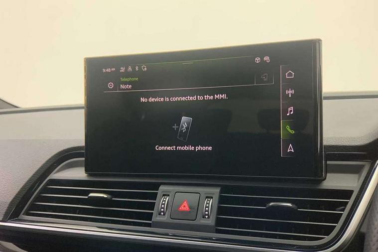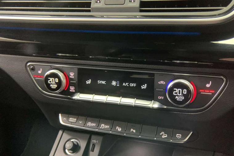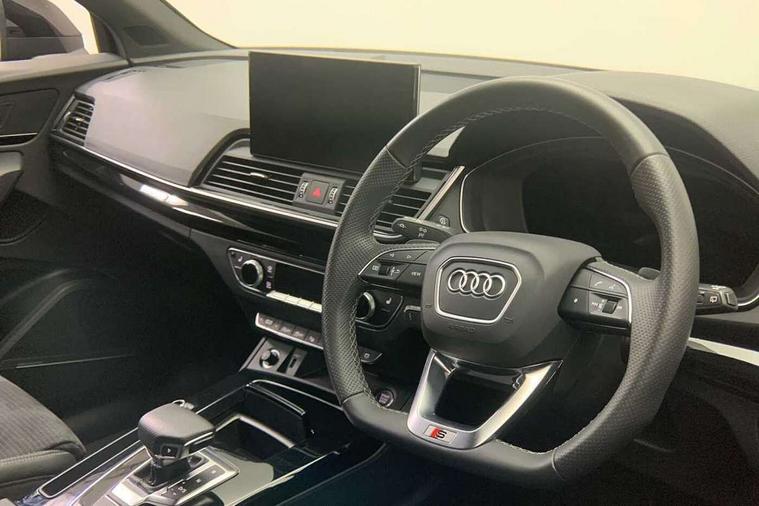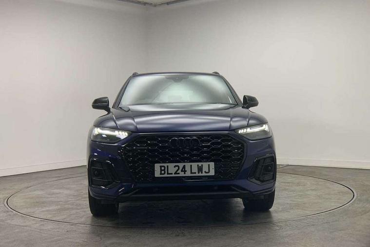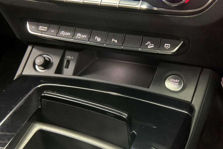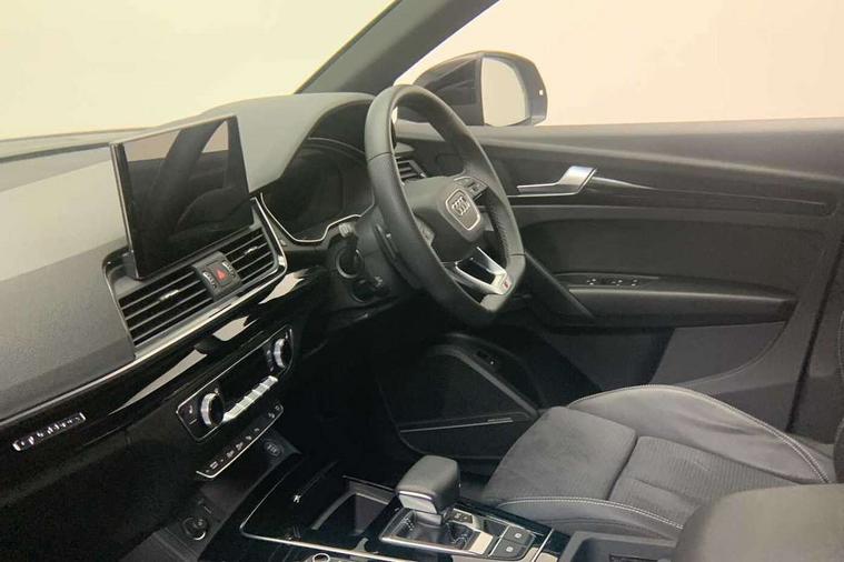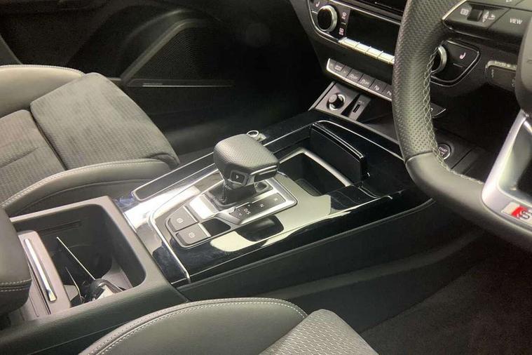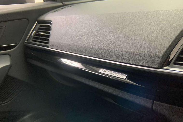 Acoustic front and rear parking sensor, Audi connect safety and service (e-call), Audi drive select, Audi virtual cockpit plus with 12.3" screen and three different layout designs, Audi wireless smartphone interface, Automatic start-stop system with coasting functionality and efficiency programme, Bluetooth interface, Camera based traffic sign recognition, Electro - mechanical power assisted steering, Lane departure warning, MMI navigation plus with 10.1" touch screen, Power tailgate, Reversing camera, Service interval indicator, Voice control system with Audi hotword activation "Hey Audi", Diesel particulate filter, Quattro on demand, S line sports suspension, 2 x USB charging port with aux input socket, 8 loudspeakers, DAB Digital radio, Acoustic windscreen, Auto dimming door mirrors, Auto dimming frameless rear view mirror, Automatic headlight adjustment, Automatic headlights and windscreen wipers, Black roof rails, Black styling with black rings, Body colour bumpers, Body colour rear diffuser with matt aluminium silver surrounds, Body colour underbody protection, Chrome plated exhaust trims, Daytime running lights, Door sills in Selenite silver, Electric adjustable/heated/folding door mirrors, Front air inlet surrounds in aluminium, Front and rear electric windows, Front radiator grille in honeycomb design, LED 3rd brake light, LED headlights and LED tail lights, Loading edge protection in stainless steel, Lower bumpers painted in contrast Manhattan grey, Rear chrome trim strip below lights, Rear privacy glass and rear side windows, Rear side wing doors, Rear wiper, Roof bars, S Line badges on the front wing panels, S Line front and rear bumpers, S Line rear spoiler, S Line side skirts, 3 rear headrests, Black cloth headlining, Comfort front centre armrest, Contrast stitching on seats, steering wheel and gear lever gaiter, Deluxe 3 zone electronic climate control, Front head restraints, Front sport seats with S embossed logo, Front/rear floor mats, Gear lever in black leather, Heated front seats, Height/reach adjustable steering column, Illuminated door sill trims with S logo, Luggage compartment cover, Manual seat adjustment with 4-way electric lumbar support, Single front passenger seat, Stainless steel pedals, Sunvisors with vanity mirrors, Top surface of the rear centre armrest in artificial leather, High gloss pack - Q5, LED interior light pack - Q5, 3 point seatbelts on all seats, 6 airbags - Driver, front passenger, curtain and side airbags, Attention and drowsiness assist, Electrically operated child locks on rear doors, Electromechanical parking brake, Electronic stabilisation control including ABS, ASR and EDL, First aid kit with warning triangle and vests, Front passenger airbag deactivation, Hill descent control, Hill hold assist, ISOFIX child seat mounting for front passenger seat and ISOFIX child seat mounting with Top Tether for outer rear seats, Multi collision brake assist, Pop-up bonnet for pedestrian protection, Pre sense city, Seatbelt monitoring, Tyre pressure warning, Anti theft alarm, Anti-theft wheel bolts, Remote central locking, Remote control key with SAFELOCK and keyless go, Air vents inserts and centre console in gloss black, Tool kit, Tyre repair kit,
