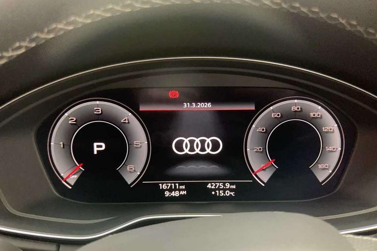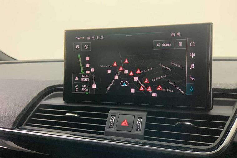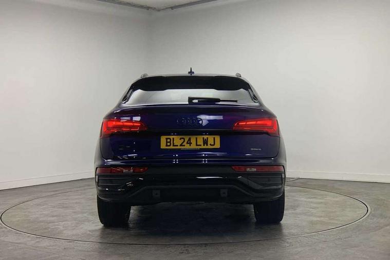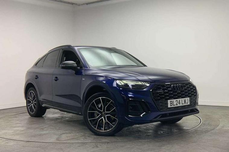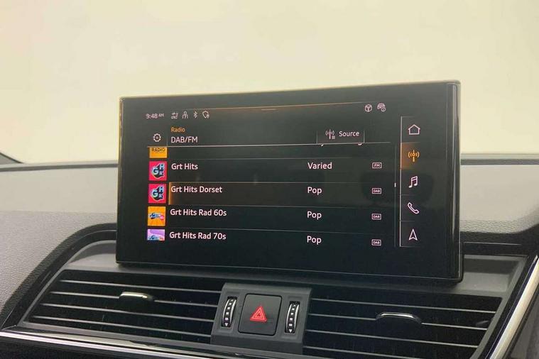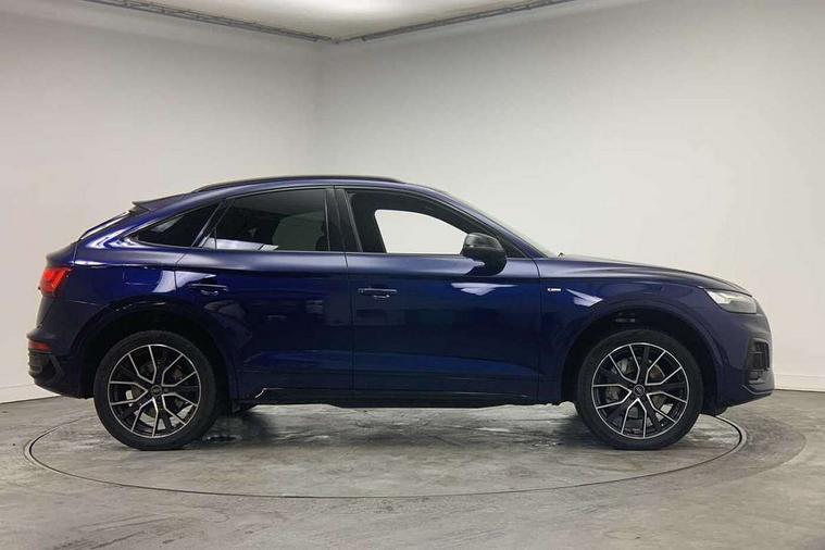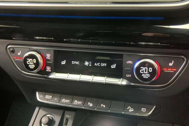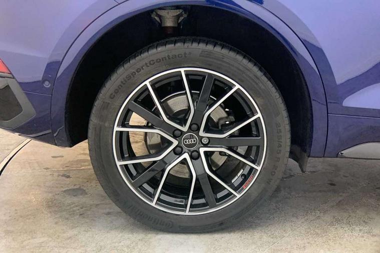 Acoustic front and rear parking sensor, Audi connect safety and service (e-call), Audi drive select, Audi virtual cockpit plus with 12.3" screen and three different layout designs, Audi wireless smartphone interface, Automatic start-stop system with coasting functionality and efficiency programme, Bluetooth interface, Camera based traffic sign recognition, Electro - mechanical power assisted steering, Lane departure warning, MMI navigation plus with 10.1" touch screen, Power tailgate, Reversing camera, Service interval indicator, Voice control system with Audi hotword activation "Hey Audi", Diesel particulate filter, Quattro on demand, S line sports suspension, 2 x USB charging port with aux input socket, 8 loudspeakers, DAB Digital radio, Acoustic windscreen, Auto dimming door mirrors, Auto dimming frameless rear view mirror, Automatic headlight adjustment, Automatic headlights and windscreen wipers, Black roof rails, Black styling with black rings, Body colour bumpers, Body colour rear diffuser with matt aluminium silver surrounds, Body colour underbody protection, Chrome plated exhaust trims, Daytime running lights, Door sills in Selenite silver, Electric adjustable/heated/folding door mirrors, Front air inlet surrounds in aluminium, Front and rear electric windows, Front radiator grille in honeycomb design, LED 3rd brake light, LED headlights and LED tail lights, Loading edge protection in stainless steel, Lower bumpers painted in contrast Manhattan grey, Rear chrome trim strip below lights, Rear privacy glass and rear side windows, Rear side wing doors, Rear wiper, Roof bars, S Line badges on the front wing panels, S Line front and rear bumpers, S Line rear spoiler, S Line side skirts, 3 rear headrests, Black cloth headlining, Comfort front centre armrest, Contrast stitching on seats, steering wheel and gear lever gaiter, Deluxe 3 zone electronic climate control, Front head restraints, Front sport seats with S embossed logo, Front/rear floor mats, Gear lever in black leather, Heated front seats, Height/reach adjustable steering column, Illuminated door sill trims with S logo, Luggage compartment cover, Manual seat adjustment with 4-way electric lumbar support, Single front passenger seat, Stainless steel pedals, Sunvisors with vanity mirrors, Top surface of the rear centre armrest in artificial leather, High gloss pack - Q5, LED interior light pack - Q5, 3 point seatbelts on all seats, 6 airbags - Driver, front passenger, curtain and side airbags, Attention and drowsiness assist, Electrically operated child locks on rear doors, Electromechanical parking brake, Electronic stabilisation control including ABS, ASR and EDL, First aid kit with warning triangle and vests, Front passenger airbag deactivation, Hill descent control, Hill hold assist, ISOFIX child seat mounting for front passenger seat and ISOFIX child seat mounting with Top Tether for outer rear seats, Multi collision brake assist, Pop-up bonnet for pedestrian protection, Pre sense city, Seatbelt monitoring, Tyre pressure warning, Anti theft alarm, Anti-theft wheel bolts, Remote central locking, Remote control key with SAFELOCK and keyless go, Air vents inserts and centre console in gloss black, Tool kit, Tyre repair kit,