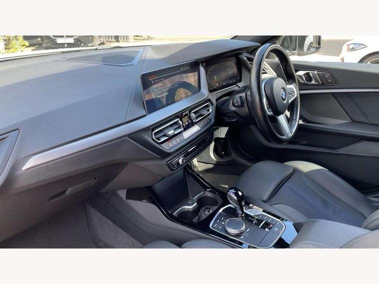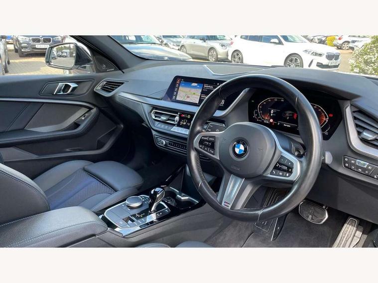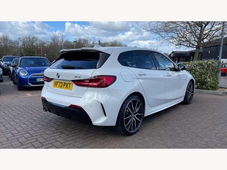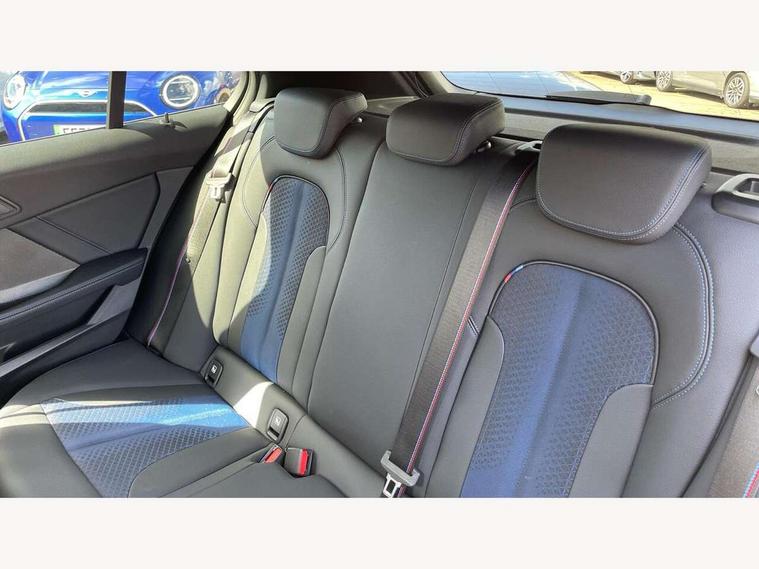Active guard plus, Attentiveness assist, BMW ConnectedDrive online services, BMW Teleservices, Check Control warning system for monitoring of lights and door/luggage compartment open warning, Cruise control with speed limiter, Eco pro mode, Front axle single joint with specific axle kinematics to minimise drive influences on steering + provide increased rigidity agile driving behaviour, Integrated owners handbook, Lane departure warning system, Oil sensor for level and grade, On board computer, Optimum shift indicator, Personal Profile, Pull away assistant, Rigidly mounted rear subframe - Multi link construction with separate spring / damper configuration and excellent driving characteristics, Speed limit Info including no-overtaking indicator, Aluminium lightweight construction, Anti roll bar front and rear, Balancer shaft, Double VANOS twin scroll turbocharging system, Drive Performance Control, Electronic differential lock, High precision injection, M sport suspension, Petrol Particulate Filter, Twin tube gas filled shock absorbers with degressive characteristic curve, VALVETRONIC engine management, DAB Digital radio, Auto dimming rear view mirror, Automatic headlight beam throw control, Automatic windscreen wipers and automatic headlight, Body colour door handles, Body colour mirror caps, Body colour roof trims, Chrome 'M' logo side designation, Chrome exhaust twin tailpipes round 90mm in left, Chrome kidney grille frame with Satin Aluminium struts, Direction indicator side lights in exterior mirrors, Electrically adjustable exterior mirror with mirror adjustment switch on drivers armrest and aspheric on driver side, convex on passenger side, Fading support, Folding side mirrors with auto dimming/folding wing mirrors with auto dimming, Follow me home headlights, Front and rear bumper system with replaceable deformation elements, Front and rear electric windows with open and close fingertip control, anti trap facility and comfort closing, Front door sill finishers in black plastic with M designation in metallic look, Green tinted heat protection glazing, High gloss shadowline window frame, Recess cover mirror frames and B/C pillar embelisher trim, High level third brake light, Integrated front windscreen with washer jets, LED daytime running lights, LED eyebrow turn indicators, LED front fog lights, Lightweight engineering, Matt black air guide grilles, Matt black wheel arch trim, Model designation on electric bootlid, Nearside reverse light in rear light cluster, Preparation for high beam assistant, Rear fog lights, Rear side wing doors, Rear window wiper, Shark fin antenna, Trailer stabilisation logic, Visible VIN plate, Welcome lighting, 12V power socket in front centre console with blanking plug, 3 rear seat head restraints, 3 seat bench in 2nd row, 3 spoke sports leather steering wheel with black leather and stitching, pearl chrome decorative finish, specific M Badge, Anthracite headlining, Black boot net with lashing eyes, Cargo function on 2nd seat row, Child seat ISOFIX attachment for two outer rear seats and front passenger seat with anchorage points, Conditioned based service, Driver and front passenger backrest net on rear, Driver and front passenger seat heating, Driver side folding compartment in instrument panel, Folding rear clothes hook, Four grab handles integrated in roof lining, Front and rear door pockets with bottle holders, Front and rear side armrest integrated into door trim, Front armrest, Front sports seats, Glove compartment, Height adjustable front head restraints, Luggage compartment for bag hooks on left and right, foldable luggage compartment liner and four lashing eyelets, Manual adjust steering wheel, Multi-function controls for steering wheel, Single front passenger seat, Storage compartment in centre console, Storage compartment in luggage compartment, Stowage of the parcel shelf in luggage compartment trim, Sun visors with vanity mirrors and insert tab, Two front centre console cupholders, Two zone automatic air conditioning, Type C two USB ports in rear centre console, Velour floor mats, Additional interior lighting pack - 1 Series, BMW live cockpit professional pack- 1 Series, Connected pack professional - 1 Series, Interior lights pack - 1 Series, M Sport exterior styling aerodynamics pack - 1 Series, 2 tone horn, 3 point seatbelts on all seats, front pyrotechnic belt tensioners, stopper and belt force limiters, rear coded belt buckles, Airbags - Front driver/passenger, front and rear curtain head protection, front side, manual deactivation of front passenger airbag, Anti lock braking system (ABS) with brake assist, BMW emergency call, Brake drying, Braking readiness, Child proof locking system in rear door, City braking function, Comfort modes, Cornering brake control, Crash sensor activating of airbags, Unlocking doors, hazard warning lights, interior light, safety battery terminal, Driver and front passenger seat belt security check, Dynamic stability control + (DSC+), Dynamic Traction Control - DTC, Electrically operated hand brake including automatic hold function, Front and rear disc brakes, Seatbelt warning, Side impact protection, Tyre pressure monitoring system, Warning triangle and first aid kit, Central locking switch for all doors, fuel filler cap and luggage compartment, Deadlocking function system to all doors, Drive away locking system on all doors and luggage compartment with de-activated in iDrive settings, Locking wheel bolts, Remote control with integrated key with High-gloss Black inlay and M designation and 1 button for open/ close lock, window, open luggage compartment, Start/stop button illuminated in centre console with keyless engine start and auto start stop deactivation button, Thatcham Cat.1 alarm and immobiliser, Wheel slip limitation close to the actuator (ARB), Contrast stitching on instrument panel, 18" Burnished M double spoke bi-colour alloy wheels finished in orbit grey - style 819M, Electrically powered 12V com