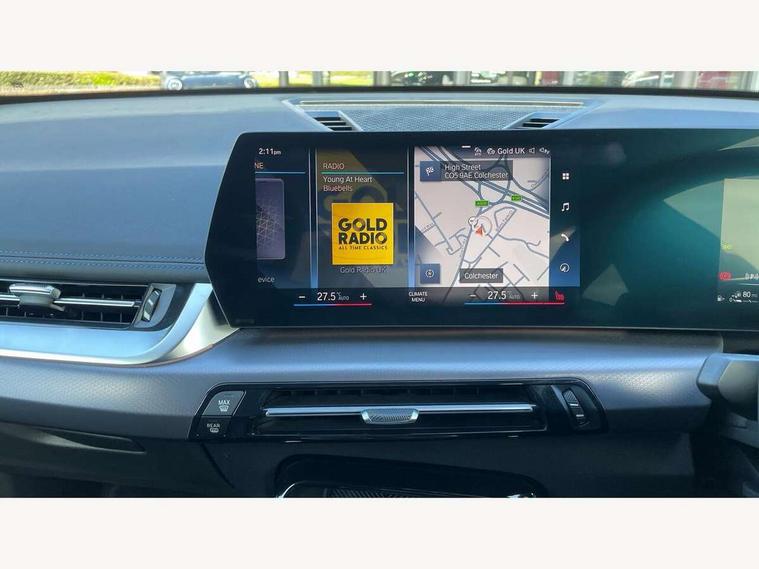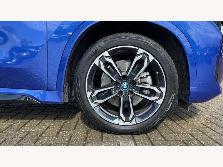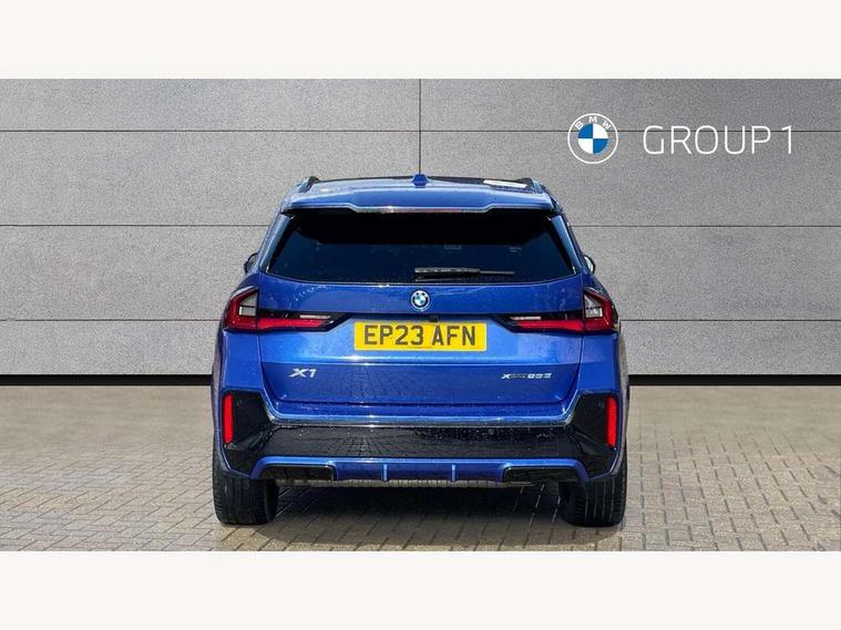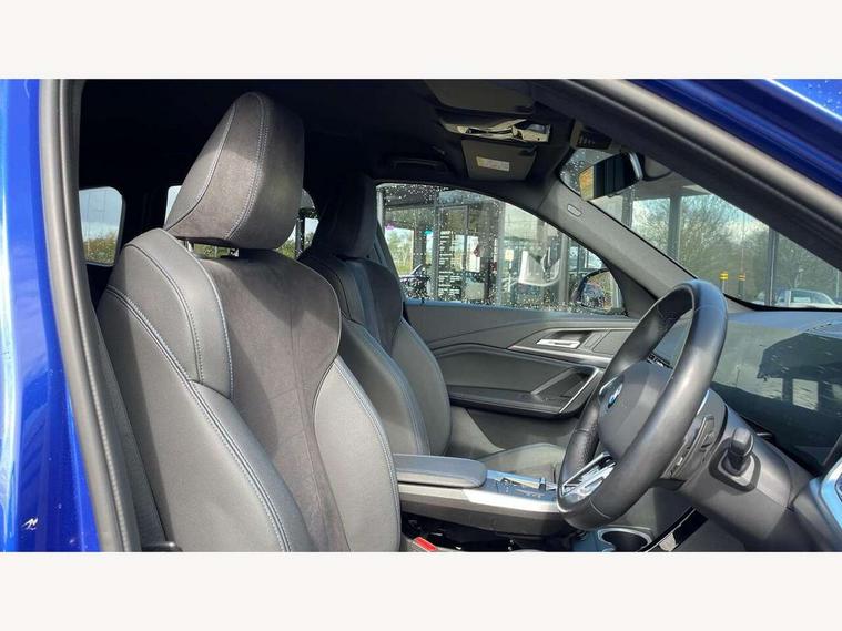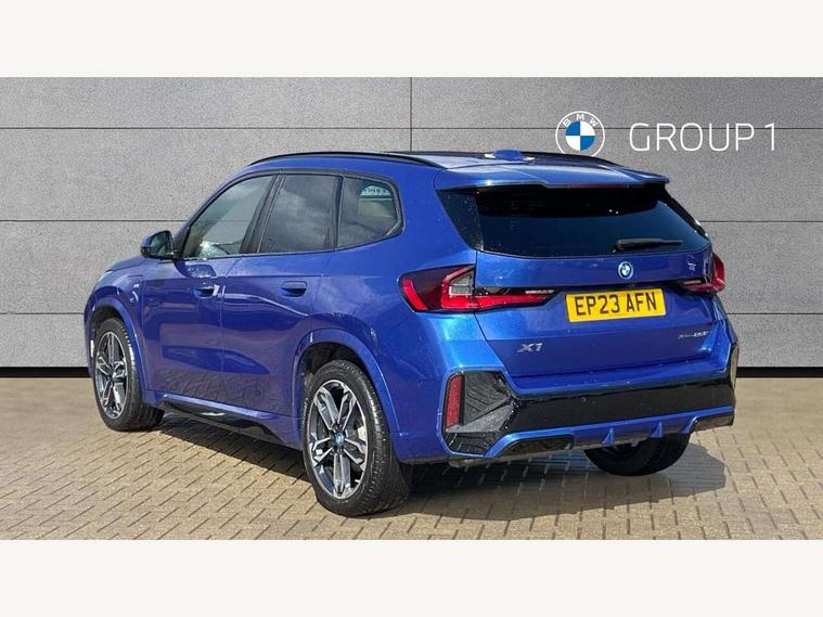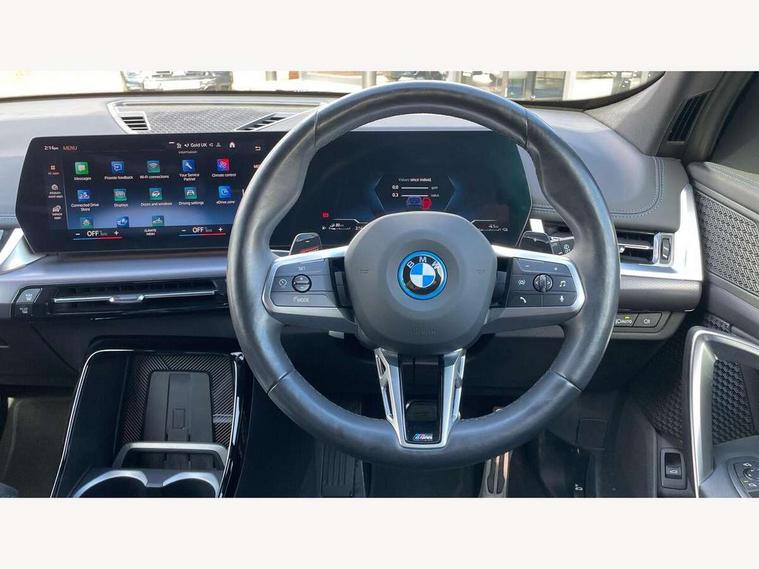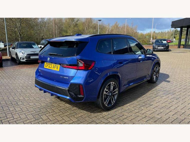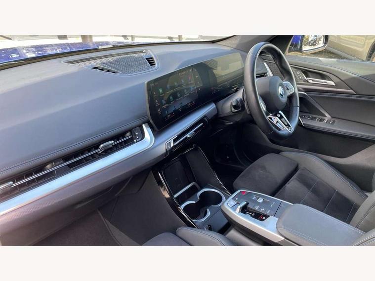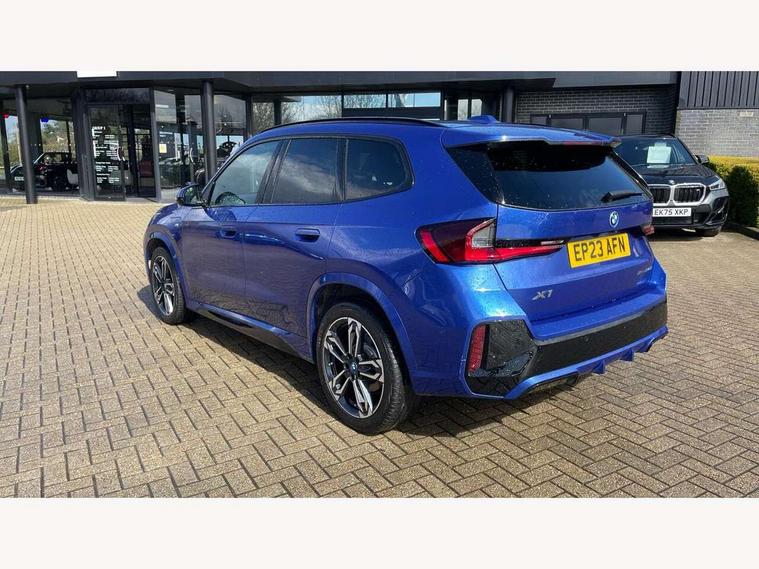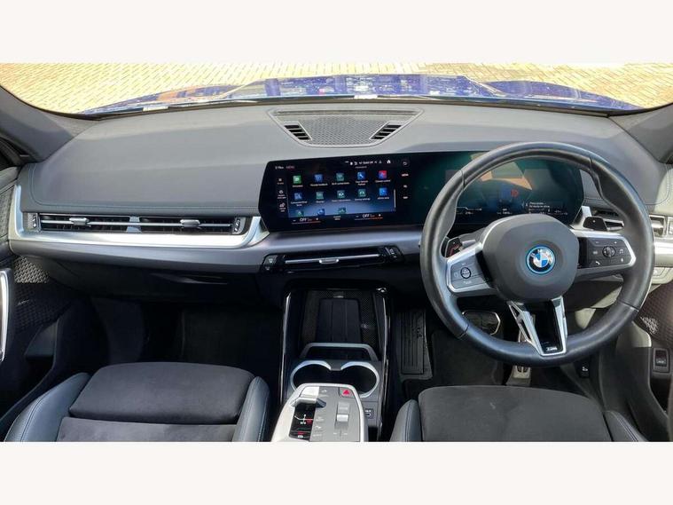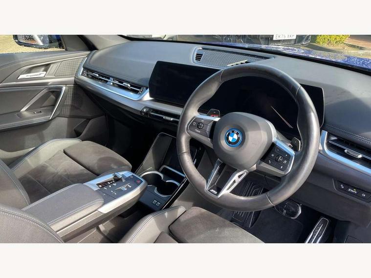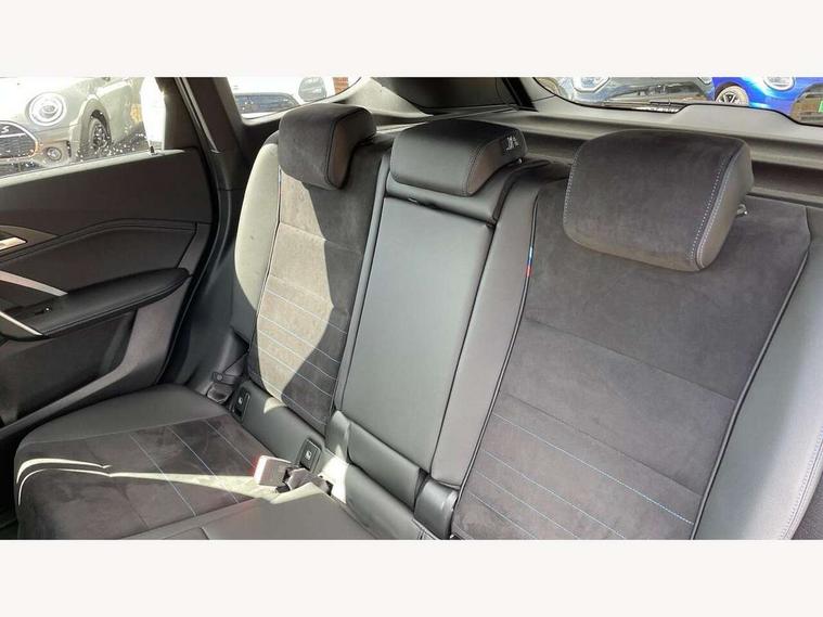 Active Guard + lane departure warning, speed limiting, front collision warning, Left turn warning with brake function and evasion assist, Attentiveness assist, Automatic start/stop function, BMW Live Cockpit Plus with 10.25" instrument cluster and 10.7" display, BMW Online services, BMW Teleservices, Brake pad wear indicator, Condition based service, Connected eDrive Services, Drive off assistant, Electrically opening/closing tailgate with opening/closing with remote control and contactless opening and closing, iDrive controller, Language version English, My Modes, Parking Assistant with Reversing Assistant, active PDC, Lateral Parking Aid, Rear View Camera and Park Distance Control, Personal Profile - automatic lock when driving away selectable, Servotronic PAS, Tyre puncture warning system, Widescreen display, 45 Litre fuel tank, eDrive exterior sound, Fast charging cable professional mode 3 for public charging, M Adaptive suspension, Mode 2 flexible charger, Performance Control, Petrol Particulate Filter, Steptronic transmission with double clutch and gear shift paddles, xDrive intelligent four wheel drive system, BMW iconic sound electric, DAB Digital radio, Badge on engine compartment lid and tailgate, Contoured rear roof spoiler in vehicle colour with side aeroblades in black high-gloss, Dynamic brake lights, Electric adjustable heated door mirrors, Electric windows - front and rear, with open/close fingertip control, anti-trap facility and comfort closing, Folding door handles integrated flush with surface, Follow me home headlights, Front and rear bumper panel with M specific design, in body colour with inserts in black high gloss, Front door exit lights, Front entry sills aluminium inserts with M inscription, Heated rear window, High gloss shadow line includes B-pillar trim panel/window cavity cover/window frame/window guide rail front doors/door mirrors in high gloss black, Invisible exhaust tailpipe, Key with M identification, LED 3rd brake light integrated in rear roof spoiler, LED daytime running lights, LED number plate light, M identification on the sides, M roof rails high gloss shadow line, M specific radiator grille in satinated aluminium, Matt black roof strips, Model inscription on right tailgate, Rain sensor including auto headlights activation, Rear side wing doors, Rear wiper, Side sill covers with M specific design in body colour, Trailer stabilisation logic, Welcome lighting, Window washer nozzle for rear view camera, Windscreen wipers with front and rear heated washer nozzles, 12V - Power sockets with front centre console and luggage compartment, 2 cup holders in front, 2 x USB Type C ports for charging and data transmission (front centre console) and 2 x USB Type C ports for charging (rear centre console), 3 rear headrests, 3 seat bench in 2nd row, 3 upper retaining strap clips integrated into rear panels of seat backrests, 40:20:40 split folding rear seats, Ambient interior lighting, Anthracite headlining, Anthracite Velour front and rear floormats, Bottle trays in all doors, Child seat ISOFIX attachment for two outer rear seats and front passenger seat with anchorage points, Clothes hook rear, Driver and front passenger heated seats, Dual zone automatic air conditioning, Front and rear door pockets, Front centre console storage compartment, Front sports seats, Front/rear adjustable head restraints, Glove compartment, Light on right in luggage compartment, M sport leather steering wheel, Manual steering column height and depth adjustment, Map pockets, Middle centre console storage compartment, Rear armrest in door trim panel, Single front passenger seat, Sport leather multifunction steering wheel with thumbrests and operation of instrument display, audio, telephone and driver assistance, Storage compartment with folding cover under centre console armrest cushion, Connected Package Professional - X1, Technology pack - X1, ABS/EBD, Automatic hold function, Automatic Stability Control (ASC), BMW emergency call, Braking readiness, Cornering brake control (CBC), Crash Sensor - activates hazard/interior lighting + unlocks doors, Driver/Front Passenger airbags, Driver/front passenger side airbags, Dry braking, Dynamic stability control + (DSC+), Electromechanical parking brake, Energy recovery system, Front and rear brake discs, Front and rear head airbags, Front passenger airbag deactivation, Integrated brake system, PC iBrake PostCrash approach control warning with light braking function, Rear door child safety locks, Three point seat belts in all seats, Tyre pressure monitor, Warning triangle, Alarm system with tilt sensor, monitoring doors, bonnet interior and tailgate, Closing system with central locking, Locking wheel bolts, Luxury instrument panel, Tyre repair kit (including Tyre sealant and 12V Compressor),