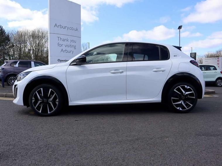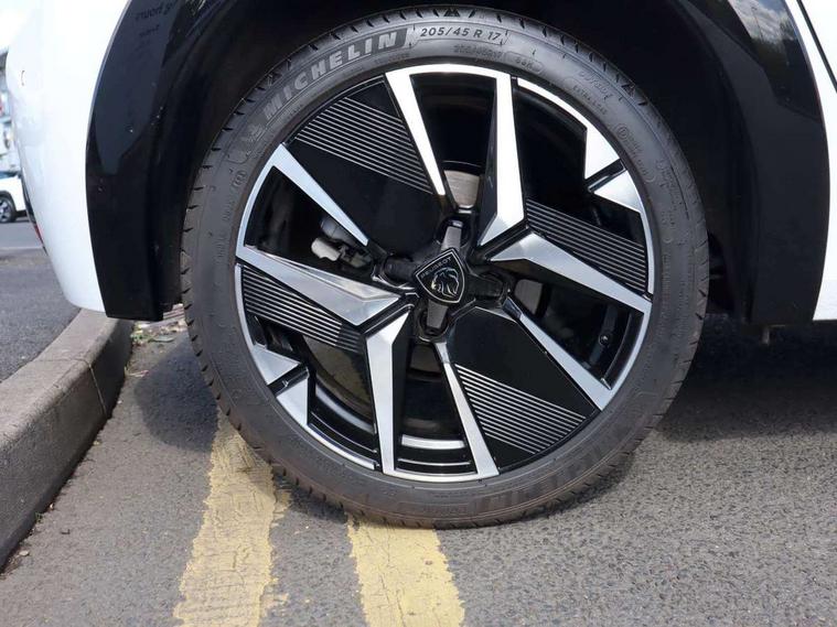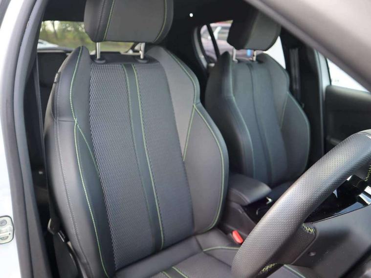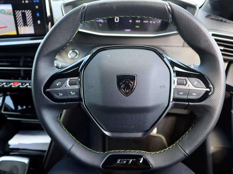 Bluetooth telephone facility, Drive mode select (Eco/Normal/Sport), Driver attention warning, Emergency call service, Exterior temperature indicator with ice warning, Front and rear parking sensors, Multi function trip computer, PEUGEOT i-Cockpit with 10" configurable 3D colour head up instrument panel, PEUGEOT i-Cockpit with 10" HD capacitive colour touchscreen, PEUGEOT i-Cockpit with compact steering wheel, PEUGEOT SOS and assistance, Push button start, Smart phone docking station, Smartphone 15W wireless charging plate, Speed limit recognition and recommendation, Start/stop system, Wireless mirror screen with apple carplay and android auto, 6 Speakers - 2 tweeters and 4 door speakers, DAB Digital radio, Peugeot i-connect infotainment system - 10in HD touchscreen, AM/FM/DAB digital radio, Wifi Mirroring, Bluetooth & 2 USB connection, USB-A socket (x1) and USB-C socket (x1) - rear, USB-C data and charge socket and USB-C charge socket in front, Voice recognition for radio, navigation and telephony features, 2 X Rear number plate lights, Acoustic windscreen, Antenna - Gloss Black 'fin' design, Automatic hazard light activation upon heavy brake application, Body coloured exterior door handles, Dark tinted rear side and tailgate windows, Diamond black rear spoiler (roof), Door sills protection with PEUGEOT signature lettering, Electric heated and power folding door mirrors with courtesy floor lighting, Frameless electrochrome interior rear view mirror, Full LED headlights with automatic height adjustment and PEUGEOT smartbeam assist, Gloss black B pillar, Gloss black door mirror shells, Gloss black front bumper grille with body colour accents, Gloss black rear cluster connecting strip, Gloss black wheel arch extensions, Gloss black window weatherstrips, GT model designation badging on C pillar, GT model designation badging on tailgate, Headlights left on audible warning, LED 3 claw horizontal rear lighting signature (with daylight function) and LED brake lights, indicators and reversing lights, LED daytime running lights with distinctive 3 claw signature, LED front indicators, LED third brake light, Model designation badges front and rear in basalt grey, One touch electric front/rear windows with pinch protection, Rear bumper with gloss black finish, Rear reversing lights, Rear side wing doors, Rear windscreen wiper triggered automatically in reverse gear, Roof spoiler, Tailgate with heated rear windscreen and wiper blade, Variable front intermittent wipers, 1/3 to 2/3 split folding rear seats, 12V socket, 3 seat bench in 2nd row, 8 Colour personalisable ambient lighting, Adamite green contrast stitching to front and rear armrest, front centre console, dashboard facia, Aluminium pedals, Automatic mono zone climate control air condition, Boot lighting, Driver and front passenger dynamic seats, Driver and front passenger seat manual adjustment in longitudinal and back rest angle, Driver and front passenger seat mechanical height adjustment, Driver and passenger sun visors, front footwells and central storage with LED lighting, Electric power steering with reach and rake adjustable steering column, Front centre armrest with storage compartment, Front LED interior light, front LED reading spotlights(x2), rear LED reading spotlight(x2), Gear shift indicator, High centre console with 2 cup holders, Luxury carpet mats, Map pockets on the backs of the front seats, Multi function full grain perforated leather steering wheel with adamite green stitch detail and 'GT' emblem, Passenger seat height adjuster, Piano keys gloss black plated toggle switches to access main functions of the vehicle, Rear centre headrest, Roof lining - Mistral black, Seatbelt unfastened on the move audible and visual alert for front and rear seats, Single front passenger seat, Visibility pack - 208, 2x Isofix child seat fitting on outer rear seats, 3 rear 3 point seatbelts, ABS (Anti-lock Braking System) with EBD (Electronic Brakeforce Distribution) and EBA (Emergency Braking Assistance), Active safety brake with night function/cyclists/pedestrians, Child locking functionality on rear doors, Driver and front passenger airbag with passenger airbag deactivation, Driver/front passenger side airbags, Electric parking brake, ESP with Hill Assist, Front and rear curtain airbags, Front and rear disc brakes, Front optimised safety headrests and 3 x rear retractable headrests with height adjustable, Front three point retractable seatbelts with force limiters, Remote plip(x2) for locking, unlocking, includes emergency key blade, Tyre pressure monitoring system, Acoustic vehicle alert system (AVAS), Alarm - Connected, volumetric , perimetric, anti lift sensor, Automatic door locking when moving off, Deadlock, Electronic code immobiliser, Peugeot Open and Go System, Remote central locking, Carbon effect Dashboard, front and rear door panel finish, 17" Yanaka two tone diamond cut alloy wheels wheels includes gloss black inserts, Space saver spare wheel,