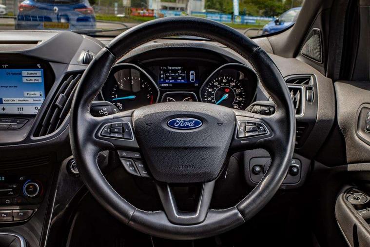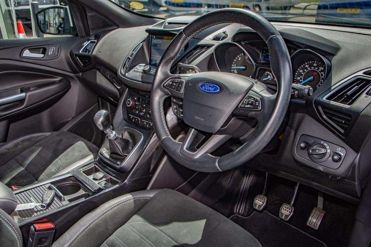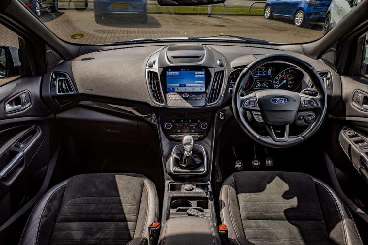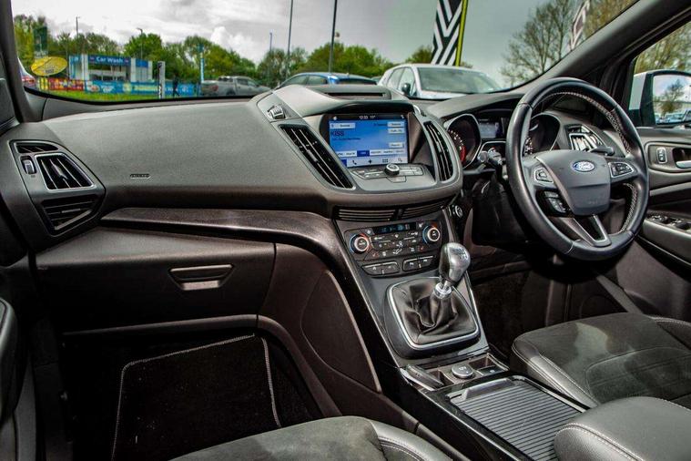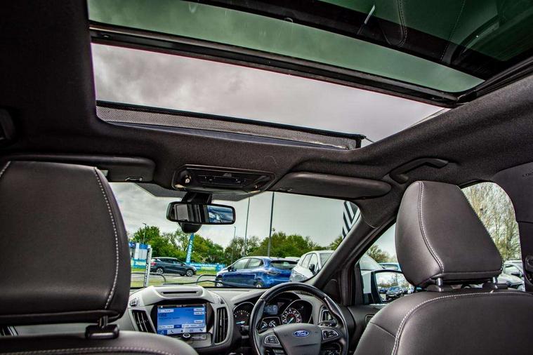 Enhanced active park assist including perpendicular parking pull out assist and flank guard, EPAS, Rear parking sensor, SYNC Emergency Assistance, Trip computer, Sports suspension, Auxiliary socket for external device, Remote audio controls on steering wheel, USB connection, Auto dimming rear view mirror, Automatic headlights, Black roof rails, Body colour bumpers, Body styling kit, Electric folding mirrors, Electric panoramic glass sunroof, Electrically heated door mirrors, Front scuff plate, LED daytime running lights, Power front and rear windows, Quickclear heated windscreen, Rain sensor windscreen wipers, Rear diffuser, Tailgate wash/wipe, Twin exhaust pipes, 10 way electric adjustable drivers seat, 60/40 split/folding rear back and cushion, Alloy Foot Pedals, Auxiliary power socket in luggage area, Centre console with stowage tray/bottle holder/CD stowage/front and rear 12V power point, Dark headlining, Dinamica/Leather Upholstery, Driver seat lumbar adjustment, Driver/passenger front seatback pockets, Driver/passenger seats fore/aft adjustment, Dual electronic automatic temperature control, Floor mats with contrast stitching, Folding rear centre armrest, Footwell courtesy lights front and rear, Front head restraints, Front overhead courtesy lights with theatre style dimming and delay, Front/rear reading lights, Gearshift paddles, Heated front seats, Isofix system on outer rear seats, Leather gearknob, Leather steering wheel, Passenger lumbar support, Reach + rake adjustable steering column, Rear floor mats, Rear head restraints, Sports style front seats, Stowage unit in upper instrument panel, Tie down hooks, Tonneau cover, Variable intensity instrument illumination, 3 point seatbelts on all 3 rear seats, ABS/EBD, Driver and passenger airbags, Driver and passenger side airbags, Electric traction assist system, Electronic parking brake, ESP+EBA, Front and rear curtain airbags, Hill start assist, Intelligent Protection System (IPS), Tyre pressure monitoring system, Immobiliser, Keyless entry system with hands free boot opening, Keyless start, Locking wheel nuts, Remote central locking, Thatcham Cat.1 alarm, 19" 5x2 spoke black alloy wheels, Mini steel spare wheel,