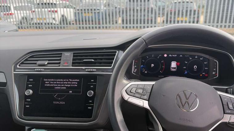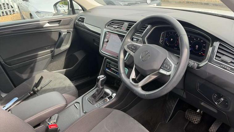 Adaptive cruise control ACC stop and go including speed limiter, App-Connect incl. App-Connect Wireless for Apple CarPlay and Android Auto, Bluetooth phone integration system, Distance control assist, Driver alert system, Driver profile selection, Dynamic road sign display, eCall emergency call system, Electromechanical speed sensitive power steering, Engine start/stop button, Lane keeping system Lane Assist, Lights on warning, Motorised electric tailgate operated via key fob, drivers door and foot movement under tailgate, Multifunction front facing camera, Outside temperature display, Premium multifunction display with multi colour display, Remote control boot opening, Rev counter, Revision / skills operating concept travel assistant, Service interval indicator, Speed limit display, Start/stop system with regenerative braking, Tailgate/trunk lid unlocking from outside, Trip computer, Warning sound and light for doors and tailgate open, Battery regeneration during braking, XDS electronic differential lock for improved traction and handling, 4 X 20 watt output, 8 Speakers, Diversity antenna for FM reception, Radio, SD card slot, Simultaneous pairing of 2 compatible mobile devices, SMS functionality - read, compose and send SMS messages using touch-screen display, Title and cover art display, USB C ports, Aluminium door sill protectors, Auto dimming interior rear view mirror, Automatic headlight control system, Body colour door handles, Body coloured bumpers, Body coloured door mirrors with integrated indicators, Coming/leaving home lighting function, Dynamic headlight range control, Front and rear electric windows, Heated rear window, High level 3rd brake light, IQ light-Adv high beam, Dynamic light assist for LED matrix headlamp+LED separate DRL+DCL, dark red rear LED tech, Poor weather light+ cornering light, Laminated safety glass windshield, heat and sound insulating, LED rear number plate lights, Poor weather light and cornering light, Privacy glass for rear side windows and rear window, Rain sensor windscreen wipers, Rear exhaust tailpipe, Rear fog lamp, Rear side wing doors, Rear windscreen washer and wiper with interval delay, Side and rear windows in heat insulating glass, Tilting and sliding panoramic sunroof with rear panoramic sunroof, Trailer Stability Programme, Windscreen wipers/ intermittent wipe + 4 position delay, 12V outlet in center console rear and in luggage compartment, 12V outlet in front and tray, 2 cup holders in front, 2 LED front reading lights, 2 LED rear reading lights, 3 bench rear seats in 2nd row, 3 rear headrests, 4 load lashing points, 40:20:40 split folding rear seats, Air Care Climatronic 3 zone automatic climate control with enhanced air filter and controls in the rear, Backrest release for left front seat, Climate control unit rear with touch function, Door and side trim panel in foam film and woven fabric, Front centre armrest, Front footwell illumination, Front seats head restraints (x-adjustment), Height adjustable front seats, Height/reach adjust steering wheel, Instrument lighting white adjustable panel illumination, Interior light with delay, Isofix Preparation 2 Rear child seats, Leather gear knob, Lockable cooled glovebox, Luggage compartment lighting, Luggage net, Rear bench seat asymetrically split folding, longitudinally movable and folding with load-through hatch and center armrest, Remote unlocking for rear seat backrest, Removable luggage cover, Removable rear headrests, Safety optimised front head restraints, Single front passenger seat, Sliding/reclining rear seats, Standard rear seat release, Storage compartment in driver's door, Storage compartment in passenger's door, Storage compartment in rear doors, Storage compartments in luggage area left and right, Storage tray on dashboard, Sun visors with illuminated vanity mirrors, Top front comfort seats, Variable boot floor, height adjustable and removable, Easy open and close pack with safelock - Tiguan, 3 point seat belt for centre rear seats, 3 point seat belts with seat belt pretensioners for the outer rear seats, Active bonnet, Curtain airbags for front and rear passengers, Driver/Front Passenger airbags, Drivers knee airbag, Electronic parking brake with auto hold, Electronic Stability Control with driver steering recommendation, ABS, ASR, EDL, EDTC and trailer stabilization, Front assist with autonomous emergency braking (for Adaptive Cruise Control ACC up to 130 mph), Front disc brakes, Front passenger airbag deactivation, Front side airbags, Height adjustable front 3 point seatbelts + pretensioners, Hill hold control, Manual child proof rear door locks, Pedestrian monitoring system, Power assisted brakes, Proactive passenger protection system in combination with front assist, Rear disc brakes, Rigid safety cell with front and rear crumple zones, Two tone horn, Warning sound and light for front seat belts if unfastened, Anti theft alarm system with interior monitoring, backup horn and towing protection, Anti theft wheel bolts, Central locking system with safelock radio remote control and 2 remote control folding keys, Electronic engine immobiliser, Tool kit,