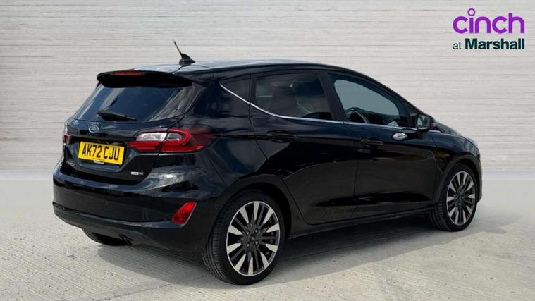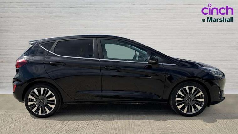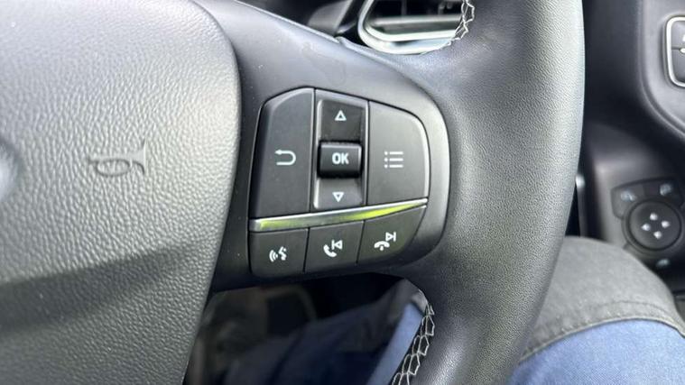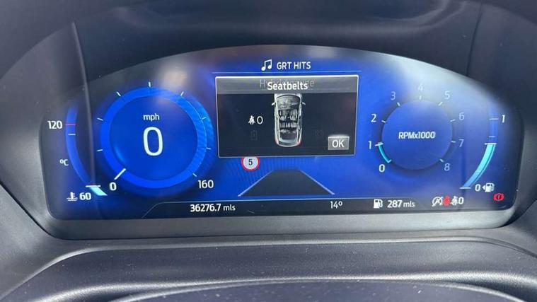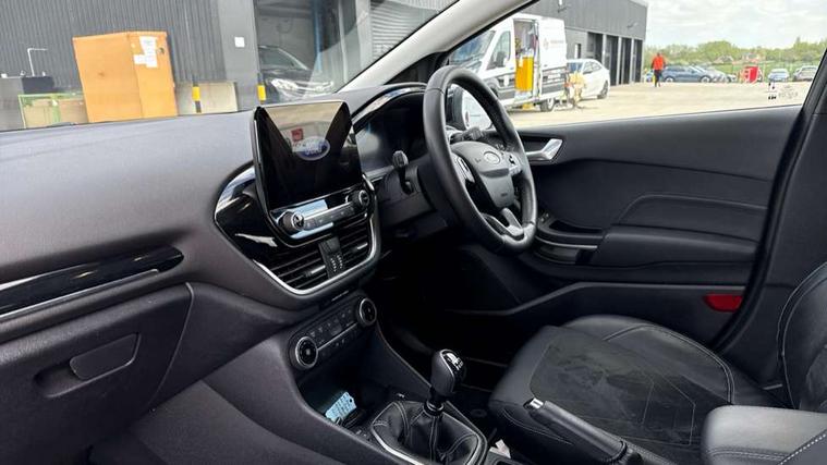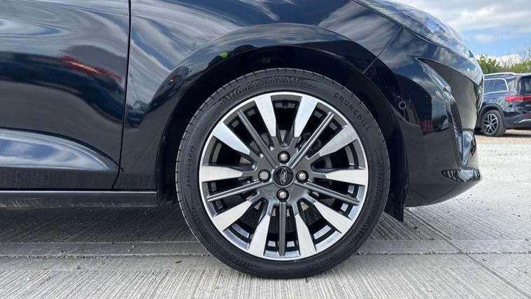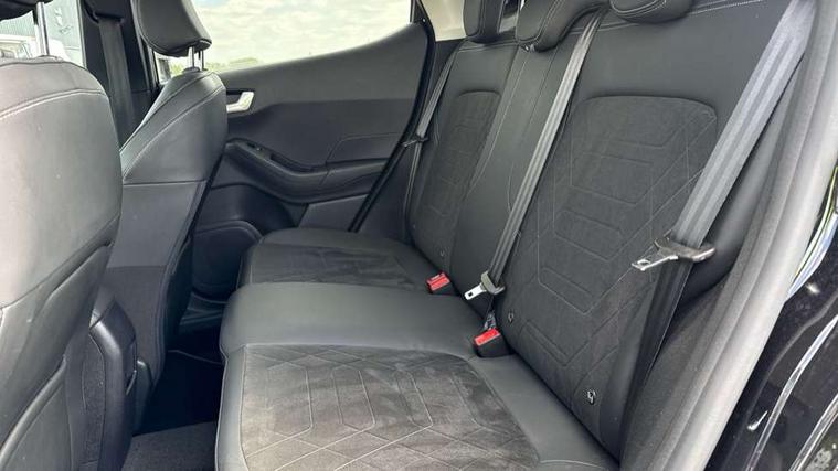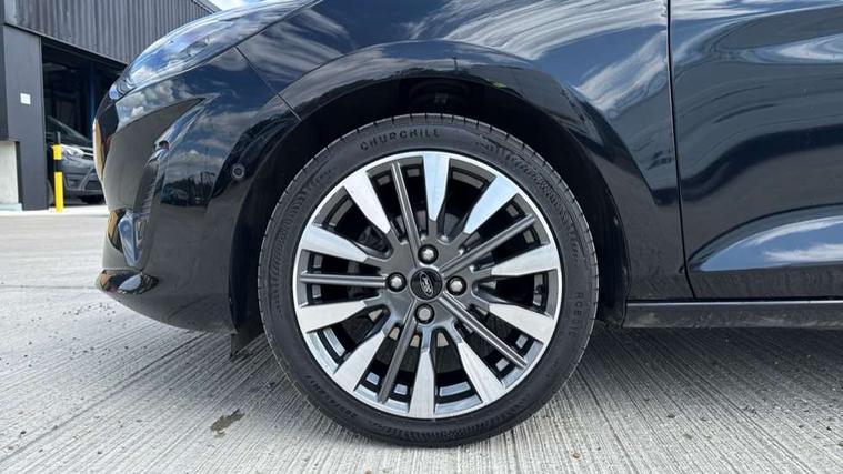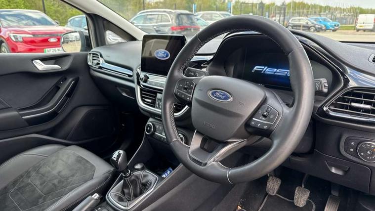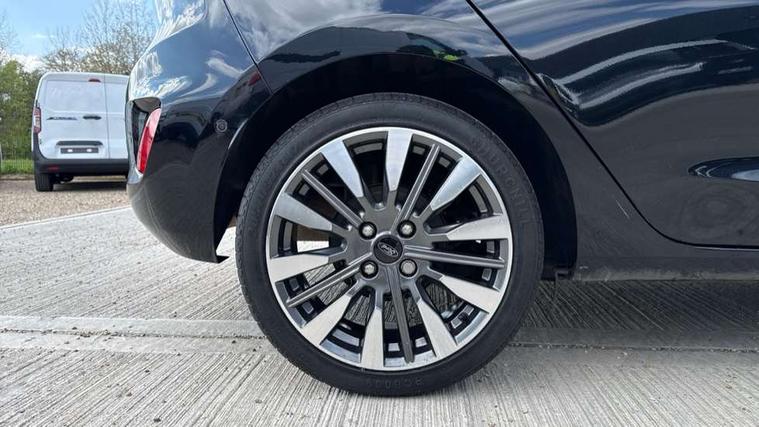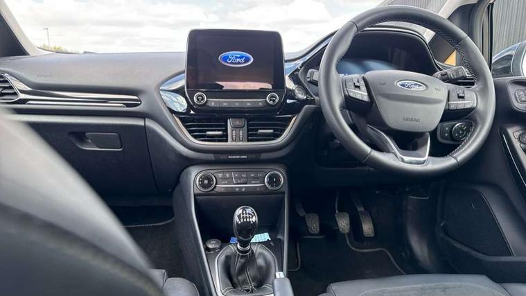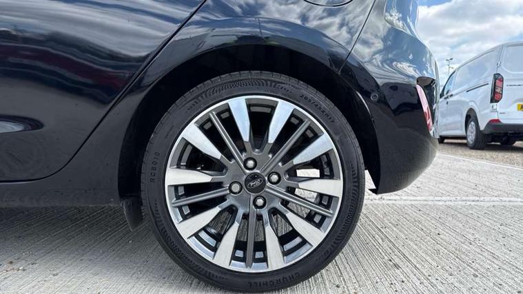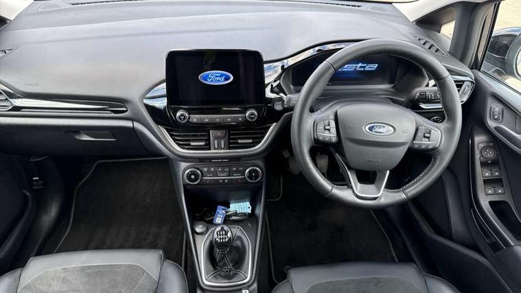4.2" TFT instrument cluster screen, Bluetooth system, Electric power steering, Ford easy fuel, Rear parking distance sensors, Selectable drive modes (Normal, Sport, Track), Traffic sign recognition, Trip computer, 2 USB ports, Auxiliary input socket, B&O Premium audio system with 8" touchscreen, 10 speakers, 360 degree sound system, Ford SYNC 3 navigation system and Ford pass connect, DAB Digital radio, Steering wheel mounted controls, Auto high beam, Body colour bumpers, Body colour door handles, Body colour rear spoiler, Body coloured electrically operated and heated door mirrors with side indicators, Chrome beltline trim, Chrome front grille, Chrome lower window surround, Cornering front fog lights, Electric front windows/one touch facility, Electric rear windows, LED Night signature to rear lights, Power foldable door mirrors with puddle lights, Quickclear heated windscreen, Rain sensing wipers and auto dimming rear view mirror, Rear privacy glass, Rear wiper, 3 spoke leather trimmed steering wheel with audio control, 60/40 split folding rear seat, Adjustable head restraints, Boot carpet, Centre console with opening armrest, 2x cupholders, 12v and USB, Chrome inner door handles, Drivers and Passenger lumbar support, EATC - Electronic Auto Temperature control, Footwell illumination, Front floor mats in velour, Front map reading lights, Front seat and rear pockets, Height adjustable passenger seat, Illuminated glovebox, Leather gaiter, LED ambient lighting, Load area light, Luxury woven headliner, Manual 4-way driver seat adjust, Overhead console with sunglasses holder, Pollen filter, Rake/reach adjustable steering wheel, Sensico partial premium upholstery, Sensico wrapped steering wheel, NCAP Pack - Fiesta, 3 point seatbelts on all rear seats, ABS+EBA, Curtain airbags, Driver and passenger airbags, Drivers knee airbag, Electronic stability control with hill start assist, Front passenger airbag deactivation, Front side airbags, Seatbelt warning, Two tone horn, Tyre pressure monitoring system, Ford keyfree system with Keyless entry and keyless start, MyKey system, Remote central locking & engine immobiliser, Thatcham Cat.1 alarm, 17" 8 spoke alloy wheels,