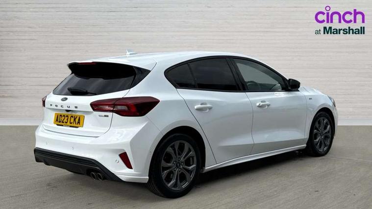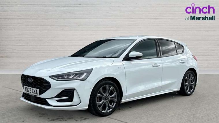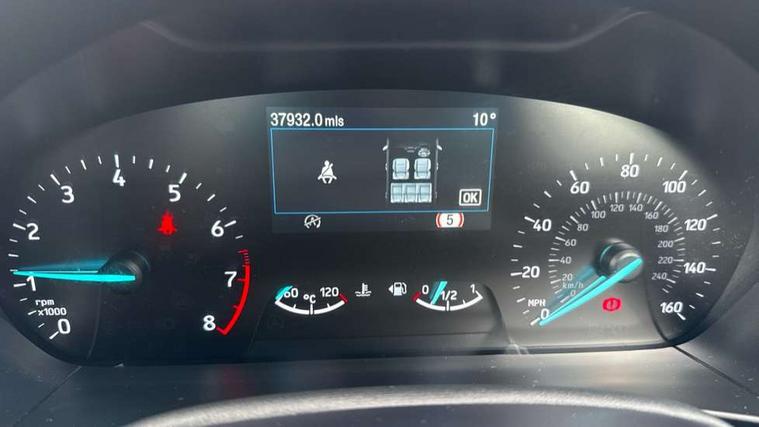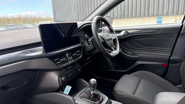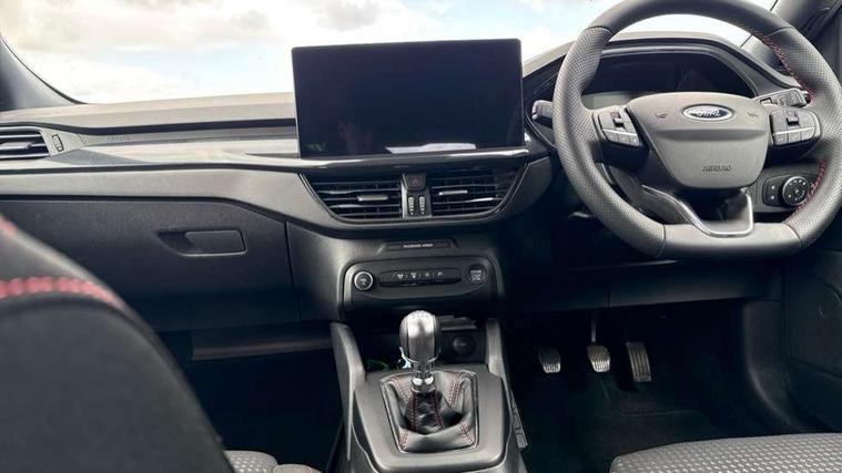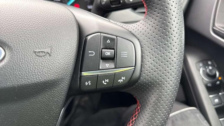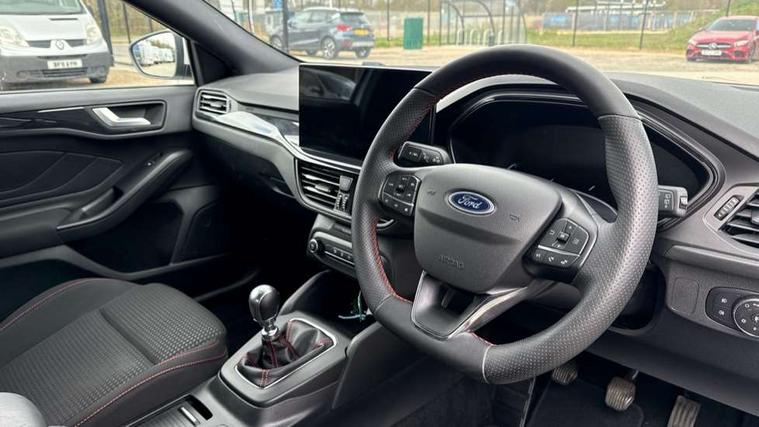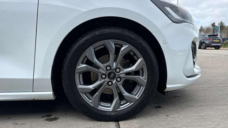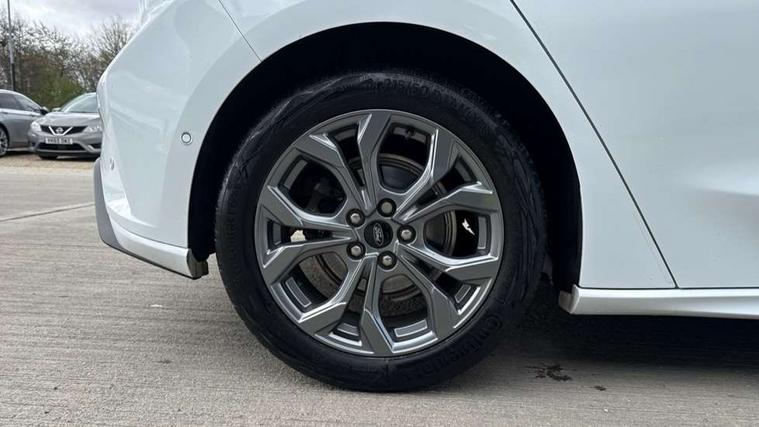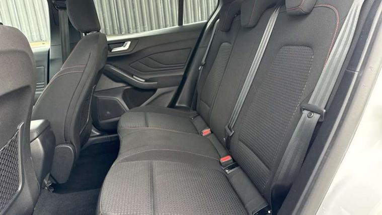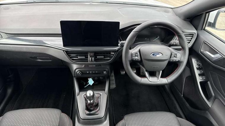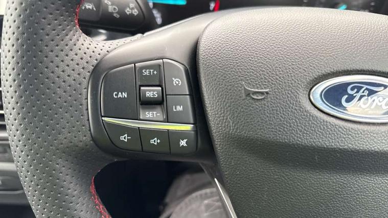 4.2" TFT coloured cluster, Bluetooth system, Digital clock, E-call, Easy fuel capless refuelling system, Eco mode, Ford SYNC 3 navigation with 8" TFT touchscreen, DAB radio and app link Android auto/Apple carplay, Intelligent speed assist, Lane keeping system - lane keeping alert and lane keeping aid, PAS, Selectable drive mode, Trip computer, Sports tuned suspension, 2 USB ports, Aux input, Auto dimming rear view mirror, Auto headlamps (on/off), Automatic rain sensing wipers, Body colour large rear spoiler, Body coloured bumpers, Body coloured door handles, Body coloured electrically operated and heated door mirrors with side indicators, Electrically operated front and rear windows with one touch opening and closing, Front variable intermittent wipers with electric wash, Heated rear window, LED daytime running lamp, LED front fog lamps with cornering function, LED reflector headlamps, Polished twin tailpipe, Power folding door mirrors, Quickclear heated windscreen, Rear privacy glass, Rear side wing doors, ST-Line upper and lower grille with full body styling kit and wing badges, Tailgate wash/wipe, Third brake light, 3 seat bench in 2nd row, 3 spoke flat bottomed Sensico steering wheel with red stitching, Aluminium gear knob, Cloth upholstery, Dark headliner, Driver's lumbar support, Front floor mats, Height adjustable front headrests, Isofix child seat preparation, Manual air conditioning, Reach + rake adjustable steering column, Rear centre headrest, Single front passenger seat, 3x3 point rear seatbelts, ABS+Electronic Brake force Distribution, Auto hold function, Driver airbag, Electronic parking brake, Electronic stability control, Front and rear seatbelt reminder, Front inertia reel height adjustable seatbelts with pre-tensioners, Front passenger airbag, Front side airbags, Hill start assist, Manual rear child locks, Passenger airbag deactivate switch, Post collision braking, Pre collision assist with autonomous emergency braking and pedestrian/cyclist detection, Side curtain airbags, Three rear inertia reel lap/diagonal seatbelts, Tyre pressure monitoring system, Ford keyfree system with Keyless entry and keyless start/sleep mode key fob, MyKey system, Remote central locking & engine immobiliser, Thatcham category 1 alarm, 17" 5x2 spoke alloy wheels with rock metallic finish, Mini steel spare wheel,