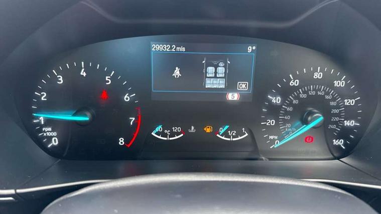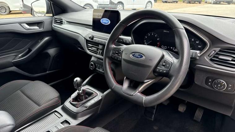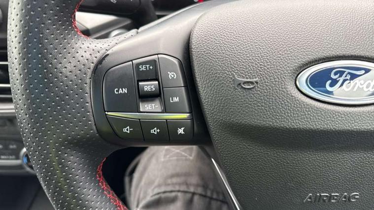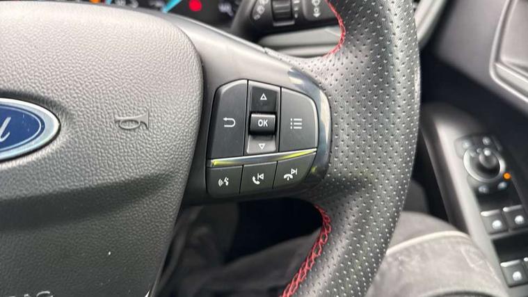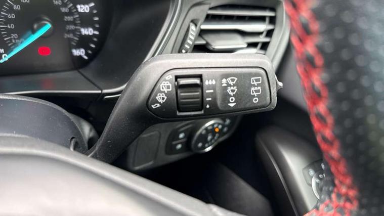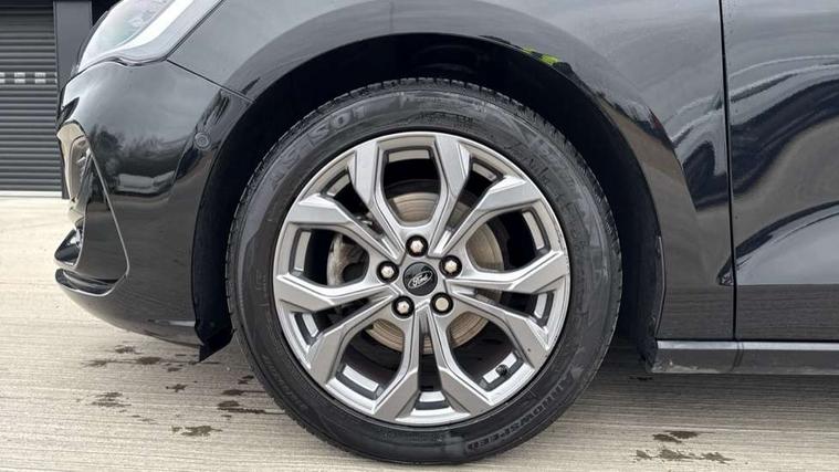 4.2" Colour TFT Ice blue illumination analogue cluster with trip computer, Bluetooth system, Digital clock, Easy fuel capless refuelling system, eCall emergency call system, Eco mode, Lane keeping system - lane keeping alert and lane keeping aid, PAS, Rev counter, Selectable drive mode, Service interval indicator, Sports tuned suspension, 2 USB ports, Auto headlamps (on/off), Body coloured door handles, Electrically operated front and rear windows with one touch opening and closing, Electrically operated heated power fold door mirrors with puddle lamp with side indicators, Front variable intermittent wipers with electric wash, Full fixed LED headlamps, Heated rear window, LED daytime running lamp, LED rear lamps, LED third brake light, Polished twin tailpipe, Privacy glass, Quickclear heated windscreen, Rain sensor, Rear side wing doors, Tailgate wash/wipe, Unique ST-Line grille, full bodystyling kit, and large body coloured rear spoiler, 3 rear headrests, 3 seat bench in 2nd row, Cloth upholstery, Dual zone electronic air temperature control, Height adjustable front headrests, Isofix child seat preparation, Reach + rake adjustable steering column, Single front passenger seat, 3x3 point rear seatbelts, ABS+Electronic Brake force Distribution, Auto hold function, Driver airbag, EDL traction control, Electronic parking brake, Electronic stability control, Front and rear seatbelt reminder, Front inertia reel height adjustable seatbelts with pre-tensioners, Front passenger airbag, Front side airbags, Passenger airbag deactivate switch, Post collision braking, Pre collision assist with autonomous emergency braking and pedestrian/cyclist detection, Remote/power child rear door locks, Side curtain airbags, Three rear inertia reel lap/diagonal seatbelts, Tyre pressure monitoring system, Keyless entry and keyless start, MyKey system, Remote central locking & engine immobiliser, Thatcham alarm with power door dead locks, 17" 5 spoke Rock mettalic finish alloy wheels with mini spare wheel,