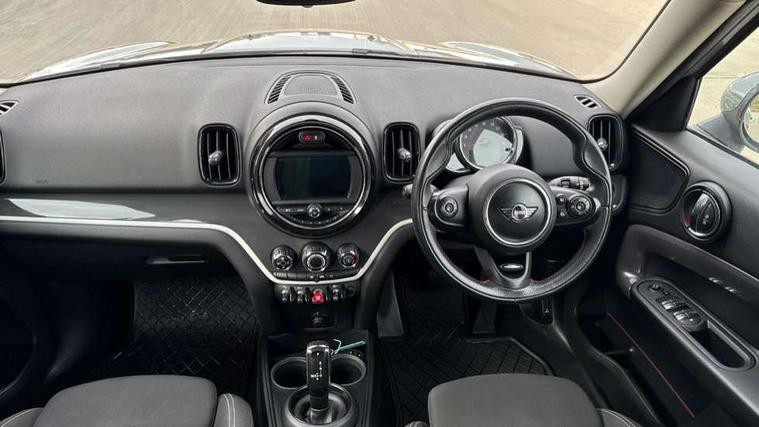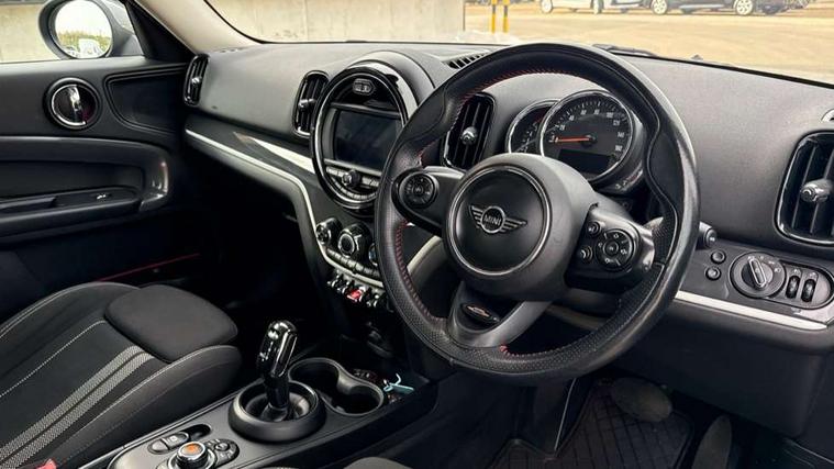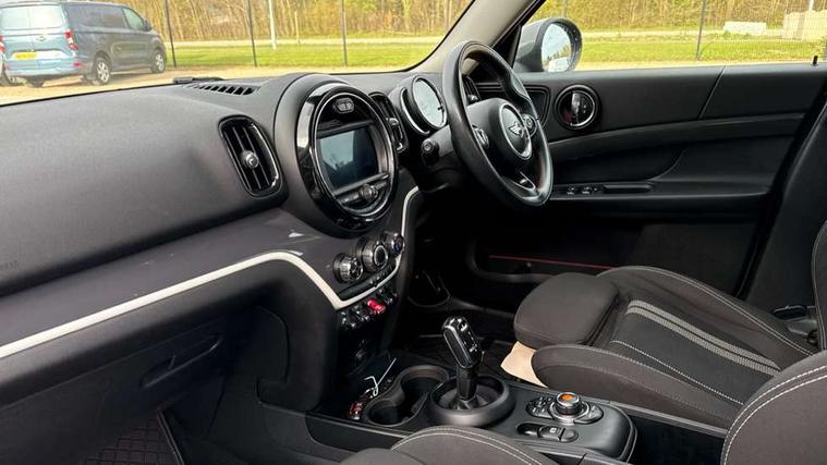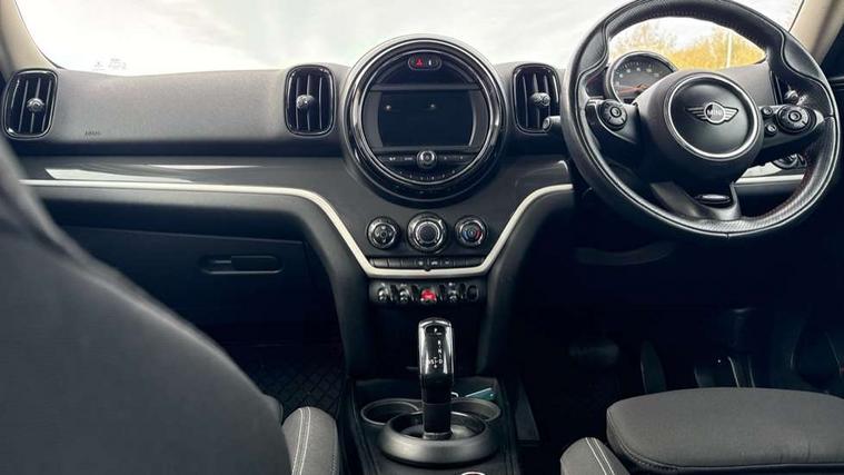 Apple CarPlay preparation, Brake pad wear indicator warning light, Central display with LED ring and 6.5" colour touch screen, Connected driver, DTC - Dynamic traction control, Exterior temperature gauge, Intelligent emergency call, MINI remote services, MINI TeleServices, Navigation system, On board computer, Personal Profile, Real time traffic information, Service interval indicator, Servotronic speed sensitive power steering, Diesel particulate filter, Electronic differential lock, Performance Control, Auxiliary input socket, DAB digital radio module, MP3 compatible radio/single CD player, Radio visual boost, Anti dazzle rear view mirror, Body colour scoop integrated into engine- compartment lid, Chrome door handles, Chrome headlight surround, Chrome plated radiator grille, Chrome side scuttle, Chrome window surround, Electric front windows + one touch + anti-pinch, Electrically adjustable door mirrors, Follow me home headlights, Green tinted glass, Heated door mirrors/heated windscreen washers, Heated rear window with automatic switch off, Metal look door sill finishers, Rain sensor including auto headlights activation, Rear wiper, Roof spoiler, Twin chrome exhaust tailpipes, White indicator lights, 12V power point front, 2 cupholders in front centre console, 4 lashing points to secure luggage, 40:20:40 split folding rear seats, Centre console storage box, Chrome interior door handles, Driver/passenger sunvisors, Front and rear headrests, Front interior light, Front passenger grab handle, Front seat backrest storage nets, Gearshift paddles, Heater with recirculation function, Height/reach adjust steering wheel, Isofix rear child seat preparation, Luggage compartment lighting, Multifunction steering wheel, Rear grab handles, Sensatec gearshift and handbrake, Sport front seats, Storage compartments in doors, Toolkit in luggage compartment, Interior lights pack - Countryman, MINI Excitement Pack - Countryman, 3 point automatic seatbelts, 3 point seatbelts on all rear seats, ABS, Cornering brake control (CBC), Crash Sensor - activates hazard/interior lighting + unlocks doors, Driver and passenger airbags, Driver and passenger side airbags, DSC - Dynamic Stability Control, Electronic brake force distribution, Electronic parking brake, Front curtain airbags, Front passenger airbag deactivation, Fuel cut off safety device, Hill start assist, Pyrotechnically pre-tensioned front seatbelts, Tyre pressure warning, Automatic door locking, Keyless Start, Locking wheel bolts, RF remote control central locking, Second remote key, Thatcham category 1 alarm + immobiliser,