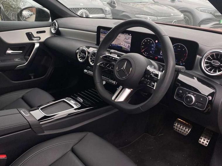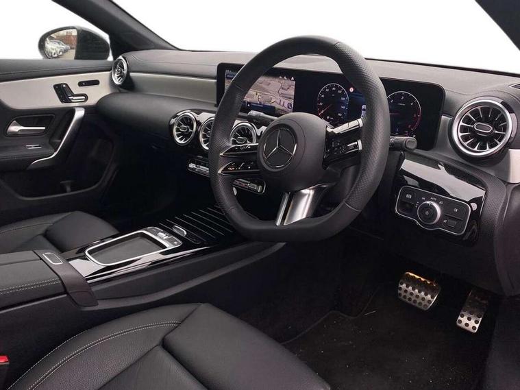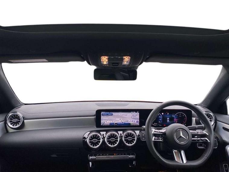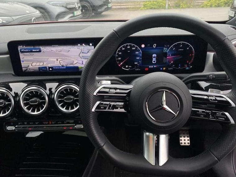 10.25 inch Instrument display with digital cockpit, 10.25 inch touchscreen central media display, Active lane keeping assist, Attention assist - Monitors steering behaviour and long journey fatigue, Bluetooth connection, Car wash mode, Cruise control with limiter, Direct steer system, DYNAMIC SELECT with a choice of driving modes (ECO, Comfort, Sport and Individual), ECO start/stop function, Fingerprint sensor, Fluid level warning indicator for fuel, oil, coolant and washer fluid, Hard-disk navigation, Head up Display, Hey Mercedes Voice activation, Lamp failure indicator, MBUX augmented reality for navigation, Mercedes me connect including emergency call system, accident recovery, breakdown and maintenance management, Mercedes me remote services, Outside temperature gauge, Owners manual in English, Pre-installation of private car share, Radio aerial integrated into front and rear windshields, Service indicator (ASSYST), Smartphone integration with Apple CarPlay and Android auto, Traffic sign assist, Trip computer in multifunction display with current consumption indicator, Wireless charging in the front centre console, Comfort suspension with ride height lowering, Rear axle multi-link, Burmester lettering on the speakers, Burmester surround sound system (710W) with dolby atmos, speakers - 1 central, 1 woofer, 1 tweeter, 1 subwoofer with 60W, 2 in C pillar, DAB digital radio tuner, MBUX multimedia system, Pre installation for Mercedes Benz Link, Adaptive brake lights, AMG body styling with AMG front apron and rear apron and visible exhaust tailpipe in chrome trim elements, Body colour door handles, Electric panoramic sunroof with automatic tilt and convenience closing fuinctions, rain sensor auto closing and electronic roller sunblind, Electric windows, Electrically adjustable and heated door mirrors with integrated LED indicators, Exhaust system with 2 Visible tailpipe trim elements and rear apron with trim in chrome, Hand free access, Headlamp assist automatic headlamp activation, Heated glass rear windscreen + timer control, High level LED third brake light, Integrated LED daytime running lights, Interior mirror with black reading lamps and frameless, LED tail lamp, Multibeam LED headlamps with adaptive highbeam assist plus, Privacy glass with dark tinting on rear side windows and rear window, Radiator grille with Mercedes-Benz pattern in chrome and central Mercedes star, single louvre in high-gloss black with chrome inserts, Rain sensing windscreen wipers with two sensitivity settings, Rear boot, Rear fog lamp, Rear side wing doors, Variable front intermittent wipers, 3 seat bench in 2nd row, 3 twin spoke flattened multifunction steering wheel in nappa leather - horizontal twin spoke in high gloss black, vertical twin spoke in silver chrome, 40:20:40 split folding rear seat backrests, Air conditioning - Two zone thermotronic luxury automatic climate control with display, Air vents with surround in silver chrome, Automatic child seat recognition sensor, Black roof lining, Brushed stainless steel sports pedals with rubber studs, Electrically adjustable front memory seats including 4 way lumbar support, Floor mats with stitched AMG lettering, Fluorescent jacket, Front centre armrest with stowage, Galvanished gear shift paddles in silver chrome, Illuminated front door sills with Mercedes Benz lettering and changeable cover, Interior lighting - 64 colour Ambient lighting, Luggage net on driver/front passenger seat backrest, Manually height and reach adjustable steering column, Rear armrest with two integral cup holders for drinks, Rear head restraints, Single front passenger seat, Sport seats with fixed head restraints, Stowage compartment in centre console with retractable cover, Sunvisors with illuminated vanity mirrors, Twin front cupholders, Two outer rear seat isofix and top tether child seat fixing points, Drive parking assist pack with 360 degree camera - CLA, Keyless go comfort pack - CLA, Light and sight pack - CLA, Mirror pack - CLA, Night package - CLA, Seat comfort pack - CLA, USB package plus - CLA, Winter pack - CLA, Active bonnet pedestrain safety measure which detects an impact and raises bonnet by 65mm, Adaptive brake assist with hold function and hill start assist, Anti lock braking system (ABS) with brake assist, Black seat belts, Bonnet with power domes, Brake calipers with Mercedes-Benz lettering, Brake pad wear warning indicator, Childproof locks manually operated for rear doors and electrically operated for rear power windows, Crash responsive emergency lighting, Driver and front passenger head and sidebags, Driver and front passenger windowbags, Drivers knee airbag, Dual stage driver and front passenger airbags, Electric parking brake, Electronic stability programme with acceleration skid control, ESP curve dynamic assist, Exit warning, Front and rear seatbelt reminder, Front passenger seat occupancy sensor, Perforated front brake discs, Sports braking system, Three point rear seat belts, Tyre pressure monitoring system, Warning triangle and first aid kit, Alarm system with immobiliser and interior protection -Thatcham category 1, Guard 360 deg vehicle protection - tow away protection with visual, acoustic warning, interior monitoring, preinstallation for parking damage, Remote central locking and crash sensor with emergency opening function, Light aluminium with longitudinal grain interior trim, 19" AMG multi-spoke black painted light alloy wheels with high sheen rim finish, Summer tyres, Tirefit tyre sealant kit,