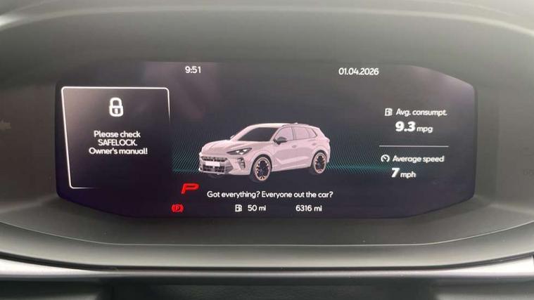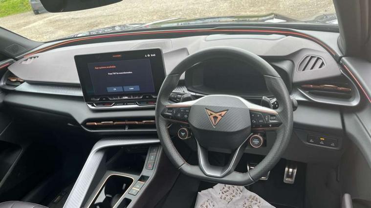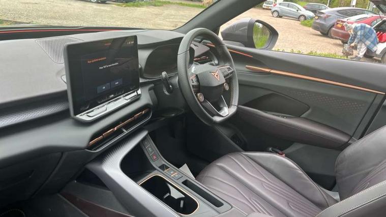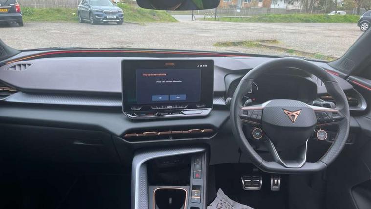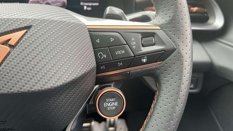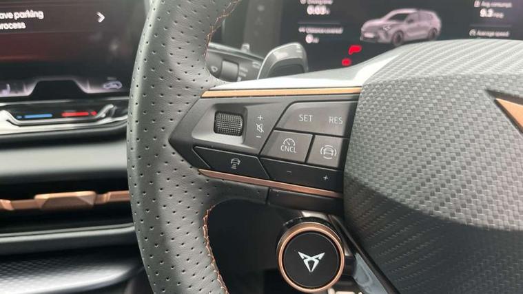 10.25" digital cockpit and configurable dashboard, Adaptive cruise control with follow-to-stop and speed limiter, Advanced driver alert system, Advanced lane assist with semi-automatic vehicle control in a medical emergency and traffic jam assist, Driving profile selection (DCC- Comfort, performance, CUPRA, Individual, Dynamic road sign display, E-call, Electric tailgate with virtual pedal, Emergency steering support with turn assist, Front and rear parking sensors, Front assist (Forward collision warning with automatic braking) with multifunction camera and front cross traffic assist, Head up Display, Intelligent park assist, Media system with Nav - 12.9" touch display, voice control, full link phone (wired/wireless), DAB and Steering wheel mounted controls, Rear traffic assist, Side and exit assist, Speed sensitive power steering, Start/stop system with regenerative braking, Top view camera (front camera, rear camera, 2 side cameras), Wireless phone charger, Adaptive chassis control with a 2-valve shock absorber, Auto dimming rear view mirror, Black roof rails, CUPRA 3D rear lights with ceremony & swiping indicator and illuminated logo, Dark tinted rear windows, Daytime running lights with automatic headlight control and Coming and Leaving home function, Door mirrors with memory function and lowing function on passenger mirror, Electric front/rear windows, Electrically adjustable, heated and folding door mirrors, Front fog lamps with cornering function, Heat reflecting windscreen, High beam assist, Rain sensing wipers, Rear fog light on one side, back up light on both sides, Rear side wing doors, Rear wash/wipe, Third brake light, Welcome lights (within exterior mirror housing), 3 seat bench in 2nd row, Black roof lining, Cupra sports pedals, Driver seat memory function, Electrically adjustable front seats including lumbar support, Four x USB Type C ports (2 in front and 2 in rear), Front and rear head restraints, Front and rear reading lights X 4, Front centre armrest, Heated front seats, Heated leather wrapped multi function sports steering wheel with tiptronic, Illuminated interior front door sills, Isofix, Leather upholstery, Operating voltage 12V, Single front passenger seat, Smart wraparound interior lighting, Sunvisors with illuminated mirror, Three zone climate control with control panel in rear, Unsplit rear seat bench, split folding backrest, with centre armrest, Variable luggage/load compartment floor, Pure performance pack - Terramar, 3 point seatbelts in front with pretensioner and electric height adjustment, 3 point seatbelts on all rear seats, Brake control system - ESC and brake booster, Child proof door locks, Driver and front passenger airbags, Electronic parking brake, Front and rear disc brakes, Front interaction airbag, Front passenger airbag deactivation switch, Front side airbags with curtain airbags, Pre-crash front and rear seat belt tensioner, window closure and hazard lights, Tyre pressure monitoring system, Visual and acoustic seat belt reminder, electric contact in front and rear, Anti theft alarm, Keyless locking and starting system with keyless access, Locking wheel bolts, Black decorative trims, Chrome interior detailing, Performance tyres in polmer coating, Tool kit,