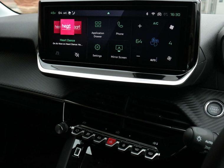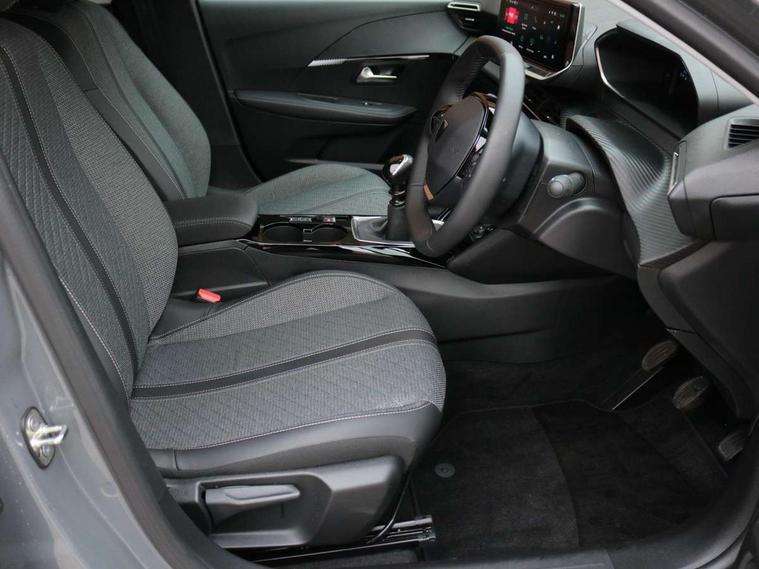 Bluetooth telephone facility, Drive mode selection(Eco/Normal), Driver attention warning, Emergency call service, Exterior temperature indicator with ice warning, Front and rear parking sensors, Multi function trip computer, PEUGEOT i-Cockpit with 10" configurable colour head up instrument panel, PEUGEOT i-Cockpit with 10" HD capacitive colour touchscreen, PEUGEOT i-Cockpit with compact steering wheel, PEUGEOT SOS and assistance, Push button start, Smart phone docking station, Speed limit recognition and recommendation, Start/stop system, Wireless mirror screen with apple carplay and android auto, 6 Speakers - 2 tweeters and 4 door speakers, DAB Digital radio, Peugeot i-connect infotainment system - 10in HD touchscreen, AM/FM/DAB digital radio, Wifi Mirroring, Bluetooth & 2 USB connection, USB-A socket (x1) and USB-C socket (x1) - rear, USB-C data and charge socket and USB-C charge socket in front, Voice recognition for radio, navigation and telephony features, 2 X Rear number plate lights, Acoustic windscreen, Antenna - Gloss Black 'fin' design, Automatic hazard light activation upon heavy brake application, Body coloured exterior door handles, Dark tinted rear side and tailgate windows, Diamond black rear spoiler, Eco LED headlights with electric height adjustment, Electric heated and power folding door mirrors with courtesy floor lighting, Electrochrome rear view mirror, Gloss black B pillar, Gloss black door mirror shells, Gloss black front bupmer grille with body colour accents, Gloss black rear cluster connecting strip, Headlights left on audible warning, LED 3 claw horizontal rear lighting signature with daylight function and LED brake lights, LED daytime running lights with distinctive 3 claw signature, LED Rear lighting with distinctive 3 claw horizontal signature with daylight function, LED third brake light, Model designation badges front and rear in basalt grey, One touch electric front/rear windows with pinch protection, Rear bumper with gloss black finish, Rear reversing lights, Rear side wing doors, Rear windscreen wiper triggered automatically in reverse gear, Roof spoiler, Tailgate with heated rear windscreen and wiper blade, Variable front intermittent wipers, 1/3 to 2/3 split folding rear seats, 12V socket, 3 seat bench in 2nd row, Automatic mono zone climate control air condition, Boot lighting, Driver and front passenger comfort seats, Driver and front passenger seat manual adjustment in longitudinal and back rest angle, Driver seat mechanical height adjustment, Electric power steering with reach and rake adjustable steering column, Front centre armrest with storage compartment, Front interior light with 2 reading spotlights, Gear shift indicator, Grained black DRL and lower/upper bumper trim, High centre console with 2 cup holders, Map pockets on the backs of the front seats, Multifunction leather steering wheel, Piano keys gloss black plated toggle switches to access main functions of the vehicle, Quartz contrast stitching to front and rear door armrest, Rear centre headrest, Roof lining - light grey, Seatbelt unfastened on the move audible and visual alert for front and rear seats, Single front passenger seat, Tri material cloth/leather upholstery, Visibility pack - 208, 2x Isofix child seat fitting on outer rear seats, 3 rear 3 point seatbelts, ABS (Anti-lock Braking System) with EBD (Electronic Brakeforce Distribution) and EBA (Emergency Braking Assistance), Child locking functionality on rear doors, Driver and front passenger airbag with passenger airbag deactivation, Driver/front passenger side airbags, Electric parking brake, ESP with Hill Assist, Front and rear curtain airbags, Front and rear disc brakes, Front optimised safety headrests and 3 x rear retractable headrests with height adjustable, Front three point retractable seatbelts with force limiters, Remote plip(x2) for locking, unlocking, includes emergency key blade, Tyre pressure monitoring system, Acoustic vehicle alert system (AVAS), Alarm - Connected, volumetric , perimetric, anti lift sensor, Automatic door locking when moving off, Deadlock, Electronic code immobiliser, Remote central locking, Carbon effect Dashboard, front and rear door panel finish, 16" Noma two tone diamond cut alloy wheels, Tyre puncture repair kit,
