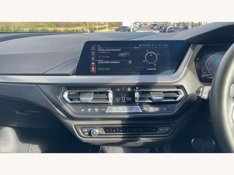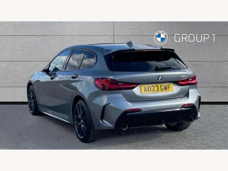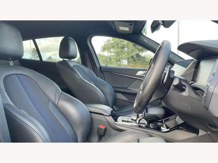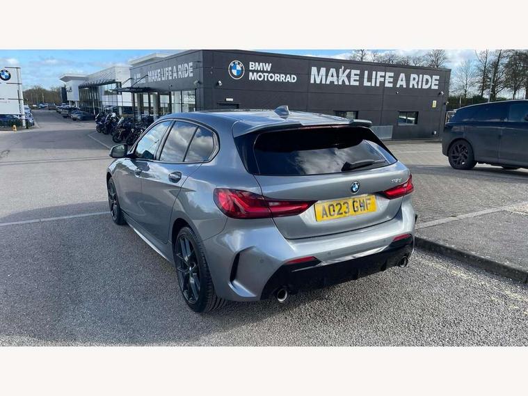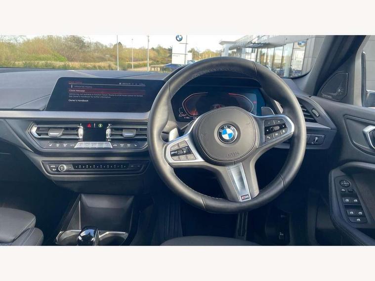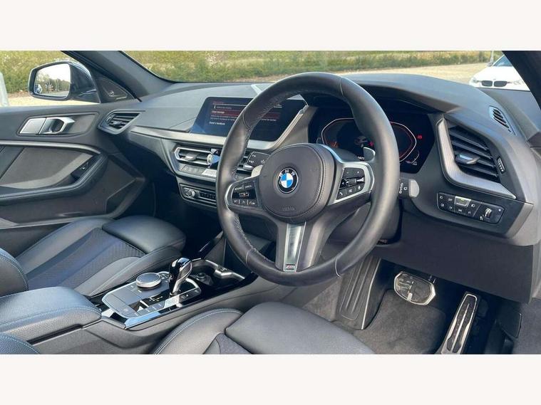 Active guard plus, Attentiveness assist, BMW ConnectedDrive online services, BMW Teleservices, Characteristic map controlled oil pump system, Check Control warning system for monitoring of lights and door/luggage compartment open warning, Cruise control with brake assist, Eco pro mode, Front axle single joint with specific axle kinematics to minimise drive influences on steering + provide increased rigidity agile driving behaviour, Integrated owners handbook, Lane departure warning system, Oil sensor for level and grade, On board computer, Optimum shift indicator, Personal Profile, Pull away assistant, Rigidly mounted rear subframe - Multi link construction with separate spring / damper configuration and excellent driving characteristics, Speed limit Info including no-overtaking indicator, Speed limiter, AdBlue tank, Aluminium lightweight construction, Anti roll bar front and rear, Balancer shaft, Diesel particulate filter, DOHC valve train with two overhead camshafts, Drive Performance Control, Eight speed sport automatic transmission with gearshift paddle switches, Electronic differential lock, Single turbo charger with variable vane geometry, Twin tube gas filled shock absorbers with degressive characteristic curve, Two-stage charging, DAB Digital radio, Auto dimming rear view mirror, Automatic headlight beam throw control, Automatic windscreen wipers and automatic headlight, Body colour door handles, Body colour mirror caps, Body colour roof trims, Chrome 'M' logo side designation, Chrome exhaust twin tailpipes round 90mm in left and right split, Chrome kidney grille frame with Satin Aluminium struts, Direction indicator side lights in exterior mirrors, Fading support, Folding side mirrors with auto dimming/folding wing mirrors with auto dimming, Follow me home headlights, Front and rear bumper system with replaceable deformation elements, Front and rear electric windows with open and close fingertip control, anti trap facility and comfort closing, Front door sill finishers in black plastic with M designation in metallic look, Green tinted heat protection glazing, Heated, electrically adjustable exterior mirror aspheric on driver side, convex on passenger side, High gloss shadowline window frame, Recess cover mirror frames and B/C pillar embelisher trim, High level third brake light, Integrated front windscreen with washer jets, LED daytime running lights, LED eyebrow turn indicators, LED front fog lights, LED Headlights, Lightweight engineering, Matt black air guide grilles, Matt black wheel arch trim, Model designation on electric bootlid, Nearside reverse light in rear light cluster, Preparation for high beam assistant, Rear fog lights, Rear side wing doors, Rear window wiper, Shark fin antenna, Trailer stabilisation logic, Visible VIN plate, Welcome lighting, 12V power socket in front centre console with blanking plug, 3 rear seat head restraints, 3 seat bench in 2nd row, 3 spoke sports leather steering wheel with black leather and stitching, pearl chrome decorative finish, specific M Badge, Anthracite headlining, Black boot net with lashing eyes, Cargo function on 2nd seat row, Child seat ISOFIX attachment for two outer rear seats and front passenger seat with anchorage points, Conditioned based service, Driver and front passenger seat heating, Folding rear clothes hook, Four grab handles integrated in roof lining, Front and rear door pockets with bottle holders, Front and rear side armrest integrated into door trim, Front armrest, Front sports seats, Glove compartment, Height adjustable front head restraints, Luggage compartment for bag hooks on left and right, foldable luggage compartment liner and four lashing eyelets, Manual adjust steering wheel, Multi-function controls for steering wheel, Single front passenger seat, Storage compartment in centre console, Sun visors with vanity mirrors and insert tab, Two front centre console cupholders, Two zone automatic air conditioning, Velour floor mats, Additional interior lighting pack - 1 Series, BMW live cockpit professional pack- 1 Series, Connected pack professional - 1 Series, Interior lights pack - 1 Series, M Sport exterior styling aerodynamics pack - 1 Series, 2 tone horn, 3 point seatbelts on all seats, front pyrotechnic belt tensioners, stopper and belt force limiters, rear coded belt buckles, Airbags - Front driver/passenger, front and rear curtain head protection, front side, manual deactivation of front passenger airbag, Anti lock braking system (ABS) with brake assist, BMW emergency call, Brake drying, Braking readiness, Child proof locking system in rear door, City braking function, Comfort modes, Cornering brake control, Crash sensor activating central locking release, hazard warning lights, fuel cut off, interior lighting + activation of safety battery terminal clamp, Driver and front passenger seat belt security check, Dynamic stability control + (DSC+), Dynamic Traction Control - DTC, Electrically operated hand brake including automatic hold function, Front and rear disc brakes, Seatbelt warning, Side impact protection, Tyre pressure monitoring system, Warning triangle and first aid kit, Central locking switch for all doors, fuel filler cap and luggage compartment, Deadlocking function system to all doors, Drive away locking system on all doors and luggage compartment, Incorrect fuel protection system, Locking wheel bolts, Remote control with integrated key with High-gloss Black inlay and M designation and 1 button for open/ close lock, window, open luggage compartment, Start/stop button illuminated in centre console with keyless engine start and auto start stop deactivation button, Thatcham Cat.1 alarm and immobiliser, Wheel slip limitation close to the actuator (ARB), Contrast stitching on instrument panel, Electrically powered 12V compressor, Reduced rolling resistance tyres,