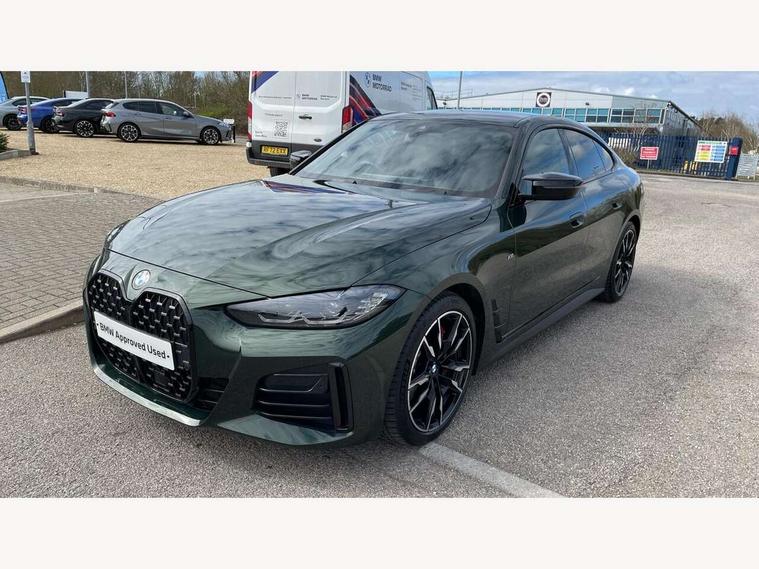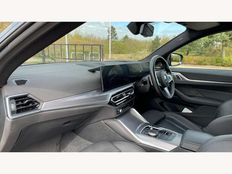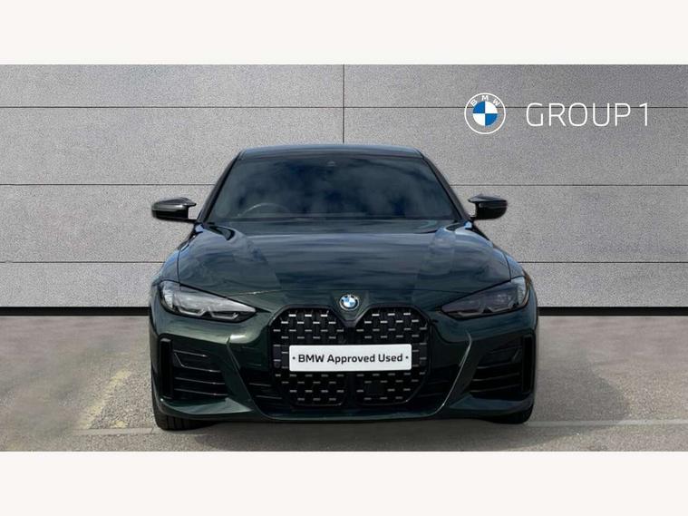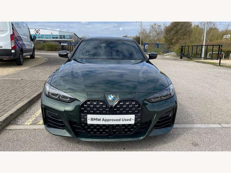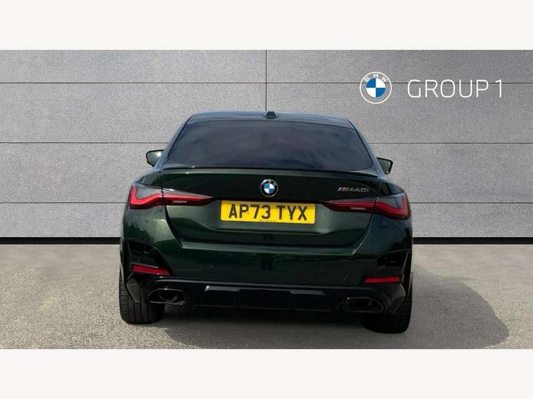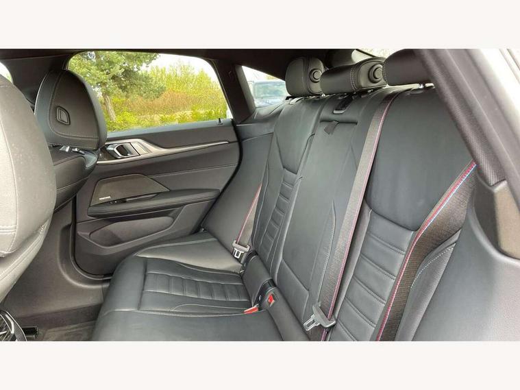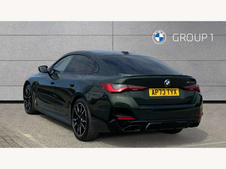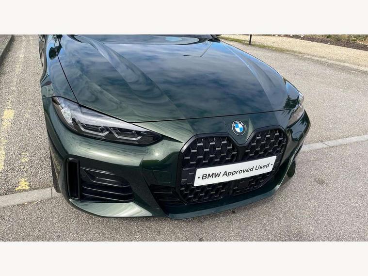 Active guard plus, Attentiveness assist, Auto start-stop, Bluetooth hands free facility with USB audio interface with audio streaming, BMW ConnectedDrive online services, BMW iDrive controller on centre console, BMW service history, BMW Teleservices, Brake pad wear indicator in front and rear, Check Control warning system for monitoring of lights and door/luggage compartment open warning, Condition based service, Electric bootlid, Electric power steering with Servotronic steering optimised at all speed ranges, Gearshift time display in manual mode, Instrument cluster with speedometer with mph readout, tachometer, fuel gauge and oil temperature gauge, Integrated owners handbook, Oil sensor for level and grade, warning by check control system, On board computer - average speed, fuel consumption, outside temp display with acoustic warning, clock/date, service interval, odometer/trip meter, Optimum shift indicator, Shifting point display, Tailgate, Variable sport steering, 48V Mild hybrid technology, 8 speed automatic steptronic transmission with gearshift paddles, Active sound design, Adaptive M suspension, Double joint spring strut front axle, Drive performance control - ECO PRO, comfort and sport modes, Electronic differential lock control (EDLC), Low centre of gravity, M Sport differential, Petrol Particulate Filter, Sprint mode, Stroke dependent dampers, xDrive system permanent all-wheel drive variable torque distribution, 2x USB Type C ports in front centre console for charging and data transfer, 2x USB Type C ports in rear centre console for charging, DAB tuner, Electronic service booklet, Acoustic glazing, Automatic headlight beam throw control with load dependent regulating reaction, dynamic compensation of braking dive and acceleration squat, Automatic windscreen wipers and automatic headlight, Automatically dimming electrochromatic rear view mirror, BMW emblem on engine compartment lid and tailgate, BMW Individual high gloss shadow line with extended contents, BMW individual lights shadow line, Body colour fuel filler flap, Body colour roof fin, Brushed aluminium inserts in the front door sill finishers with BMW designation, Door sill strips, Dynamic brake lights, Electric windows - front and rear, with open/close fingertip control, anti trap facility and comfort closing function all round, Exterior mirrors - electrically folding with anti-dazzle, Fading support, Follow me home headlights, Front and rear bumper system, Front apron plastic in body colour, Green tinted heat protection glazing, High gloss shadow line exterior trim, Illuminated bow type door handles in body colour drivers side with door lock, Interior rear view electrochromatic mirror with automatic anti dazzle function, LED 3rd brake light, LED daytime running lights, LED front indicators, Licence plate panel integrated into front bumper and tailgate, Lightweight engineering, M designation on front side panels, left and right, M rear boot spoiler, Model designation on right side of tailgate, One piece front bumper cover including towing eye cover in body colour, Preparation for high beam assistant, Rear side wing doors, Rear wiper, Reversing light, Side frame decorative moulding black matt, Sun protection glass, Two part LED tailights in L-shape with components in smoked glass, brake light, LED turn indicator and rear fog light, Visible exhaust tailpipe finisher, Visible VIN plate, Welcome lights in interior and door handle area, Widened track and increased camber values for max transverse dynamics, agility and steering precision, Window recess cover black high gloss, Windscreen wipers with integrated heated washing jets, xDrive designation on left tailgate, 12V power socket in front centre console, 2 front cupholder in centre console with clamping elements and matt black inlay, 3 rear headrests, 3 seat bench in 2nd row, 3 spoke M sport leather multifunction steering wheel, 3 zone automatic air conditioning, 4 pieces lashing eyelets in luggage compartment, 40:20:40 split folding rear seat and rear centre armrest with two cupholders, Anthracite headlining, Armrest integrated in front and rear door trim + front centre console armrest, Battery in luggage compartment, BMW ID, Extended storage in Combination with sport seat net pocket on rear backrest, Four grab handles integrated in roof lining, Front and rear door pockets, Front and rear reading lights, Heated driver and front passenger seats, Height adjustable front headrests, Height adjustable mechanically and infinitely variable steering column, Illuminated armrest storage compartment, Illuminated glove compartment with separate small compartment, Luggage compartment seprating net on side trim left/right, Bag hook, 12V socket, TTH button, USB C charging in rear, Folding compartment on driver side, Make-up mirror lights, Single front passenger seat, Storage compartment in rear centre console, Sunvisors with illuminated vanity mirrors and ticket pocket, Toolkit located in luggage compartment, Velour front floor mats, Ambient lighting pack - 4 Series, Connected professional package - 4 Series, M sport exterior styling pack - 4 Series M440i, 3 point seatbelts on all seats, Battery safety cut-off, BMW emergency call, Brake energy regeneration, Braking pre-tensioning, Child proof locking system in rear door, Child seat ISOFIX attachment for the two outer rear seats, Coasting in idle in ECO PRO mode, Cornering brake control (CBC), Crash sensor activating of airbags, Unlocking doors, hazard warning lights, interior light, safety battery terminal, Driver and front passenger side airbags, integrated in the door side seat backrest bolsters for all seat variants, Driver/Front Passenger airbags, Dry braking, Dynamic brake control, Dynamic stability control + (DSC+) - Anti-lock Braking System (ABS) with brake assist and cornering brake control + Automatic Stability Control (ASC), Dynamic Traction Control - DTC, Electric parking brake including automatic hold function and automatic