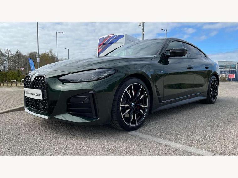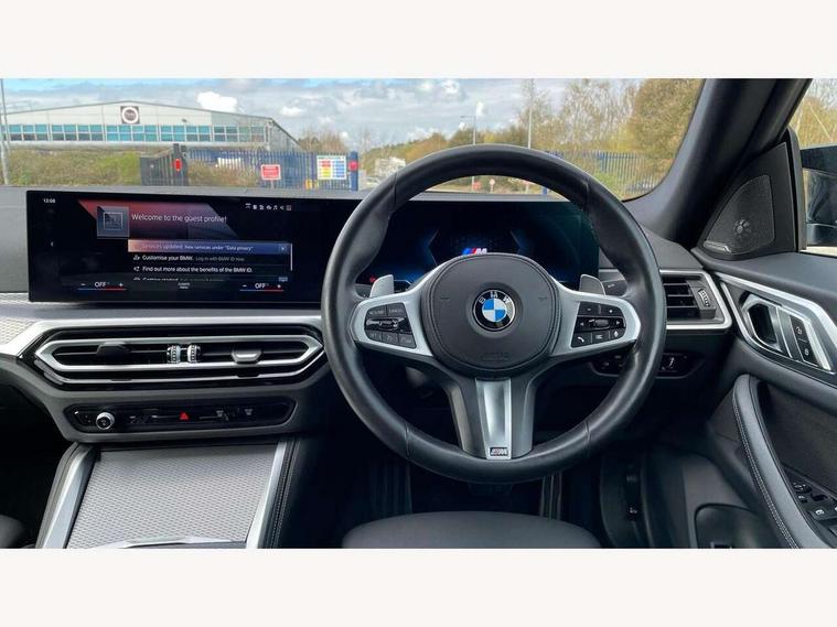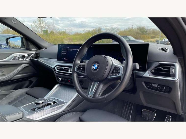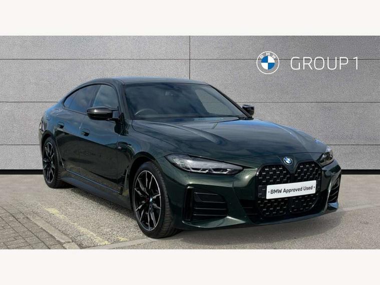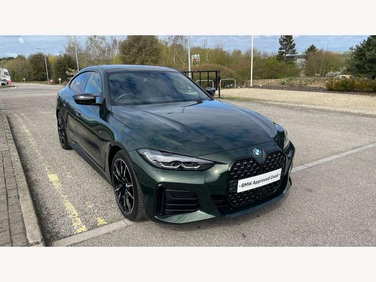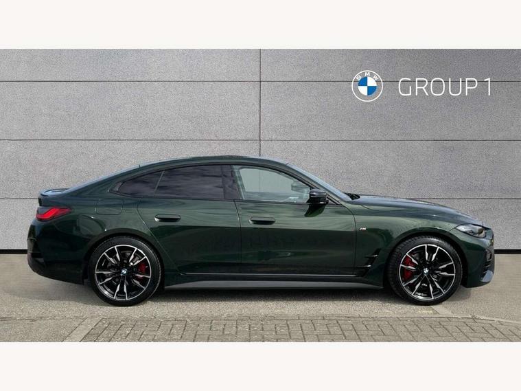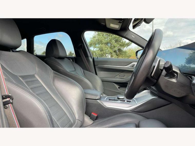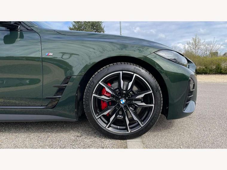 Active guard plus, Attentiveness assist, Auto start-stop, Bluetooth hands free facility with USB audio interface with audio streaming, BMW ConnectedDrive online services, BMW iDrive controller on centre console, BMW service history, BMW Teleservices, Brake pad wear indicator in front and rear, Check Control warning system for monitoring of lights and door/luggage compartment open warning, Condition based service, Electric bootlid, Electric power steering with Servotronic steering optimised at all speed ranges, Gearshift time display in manual mode, Instrument cluster with speedometer with mph readout, tachometer, fuel gauge and oil temperature gauge, Integrated owners handbook, Oil sensor for level and grade, warning by check control system, On board computer - average speed, fuel consumption, outside temp display with acoustic warning, clock/date, service interval, odometer/trip meter, Optimum shift indicator, Shifting point display, Tailgate, Variable sport steering, 48V Mild hybrid technology, 8 speed automatic steptronic transmission with gearshift paddles, Active sound design, Adaptive M suspension, Double joint spring strut front axle, Drive performance control - ECO PRO, comfort and sport modes, Electronic differential lock control (EDLC), Low centre of gravity, M Sport differential, Petrol Particulate Filter, Sprint mode, Stroke dependent dampers, xDrive system permanent all-wheel drive variable torque distribution, 2x USB Type C ports in front centre console for charging and data transfer, 2x USB Type C ports in rear centre console for charging, DAB tuner, Electronic service booklet, Acoustic glazing, Automatic headlight beam throw control with load dependent regulating reaction, dynamic compensation of braking dive and acceleration squat, Automatic windscreen wipers and automatic headlight, Automatically dimming electrochromatic rear view mirror, BMW emblem on engine compartment lid and tailgate, BMW Individual high gloss shadow line with extended contents, BMW individual lights shadow line, Body colour fuel filler flap, Body colour roof fin, Brushed aluminium inserts in the front door sill finishers with BMW designation, Door sill strips, Dynamic brake lights, Electric windows - front and rear, with open/close fingertip control, anti trap facility and comfort closing function all round, Exterior mirrors - electrically folding with anti-dazzle, Fading support, Follow me home headlights, Front and rear bumper system, Front apron plastic in body colour, Green tinted heat protection glazing, High gloss shadow line exterior trim, Illuminated bow type door handles in body colour drivers side with door lock, Interior rear view electrochromatic mirror with automatic anti dazzle function, LED 3rd brake light, LED daytime running lights, LED front indicators, Licence plate panel integrated into front bumper and tailgate, Lightweight engineering, M designation on front side panels, left and right, M rear boot spoiler, Model designation on right side of tailgate, One piece front bumper cover including towing eye cover in body colour, Preparation for high beam assistant, Rear side wing doors, Rear wiper, Reversing light, Side frame decorative moulding black matt, Sun protection glass, Two part LED tailights in L-shape with components in smoked glass, brake light, LED turn indicator and rear fog light, Visible exhaust tailpipe finisher, Visible VIN plate, Welcome lights in interior and door handle area, Widened track and increased camber values for max transverse dynamics, agility and steering precision, Window recess cover black high gloss, Windscreen wipers with integrated heated washing jets, xDrive designation on left tailgate, 12V power socket in front centre console, 2 front cupholder in centre console with clamping elements and matt black inlay, 3 rear headrests, 3 seat bench in 2nd row, 3 spoke M sport leather multifunction steering wheel, 3 zone automatic air conditioning, 4 pieces lashing eyelets in luggage compartment, 40:20:40 split folding rear seat and rear centre armrest with two cupholders, Anthracite headlining, Armrest integrated in front and rear door trim + front centre console armrest, Battery in luggage compartment, BMW ID, Extended storage in Combination with sport seat net pocket on rear backrest, Four grab handles integrated in roof lining, Front and rear door pockets, Front and rear reading lights, Heated driver and front passenger seats, Height adjustable front headrests, Height adjustable mechanically and infinitely variable steering column, Illuminated armrest storage compartment, Illuminated glove compartment with separate small compartment, Luggage compartment seprating net on side trim left/right, Bag hook, 12V socket, TTH button, USB C charging in rear, Folding compartment on driver side, Make-up mirror lights, Single front passenger seat, Storage compartment in rear centre console, Sunvisors with illuminated vanity mirrors and ticket pocket, Toolkit located in luggage compartment, Velour front floor mats, Ambient lighting pack - 4 Series, Connected professional package - 4 Series, M sport exterior styling pack - 4 Series M440i, 3 point seatbelts on all seats, Battery safety cut-off, BMW emergency call, Brake energy regeneration, Braking pre-tensioning, Child proof locking system in rear door, Child seat ISOFIX attachment for the two outer rear seats, Coasting in idle in ECO PRO mode, Cornering brake control (CBC), Crash sensor activating of airbags, Unlocking doors, hazard warning lights, interior light, safety battery terminal, Driver and front passenger side airbags, integrated in the door side seat backrest bolsters for all seat variants, Driver/Front Passenger airbags, Dry braking, Dynamic brake control, Dynamic stability control + (DSC+) - Anti-lock Braking System (ABS) with brake assist and cornering brake control + Automatic Stability Control (ASC), Dynamic Traction Control - DTC, Electric parking brake including automatic hold function and automatic