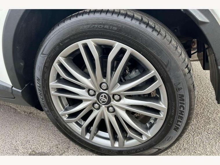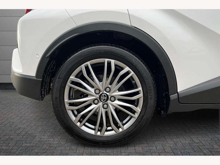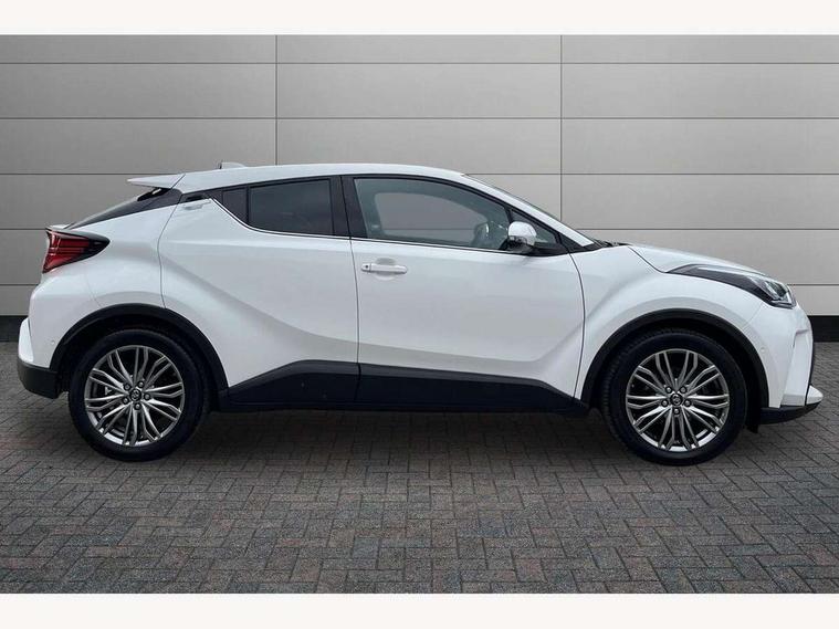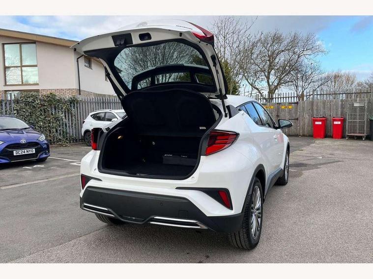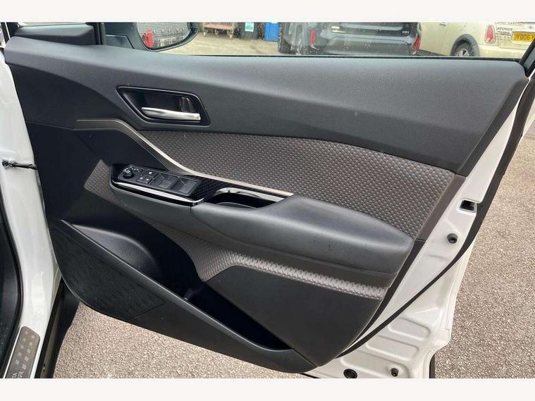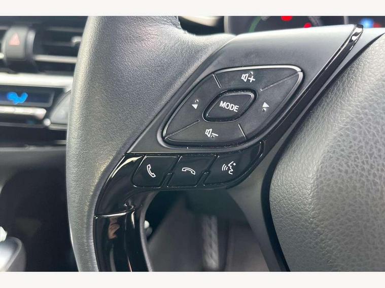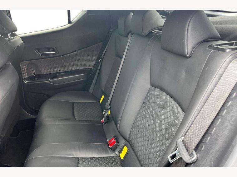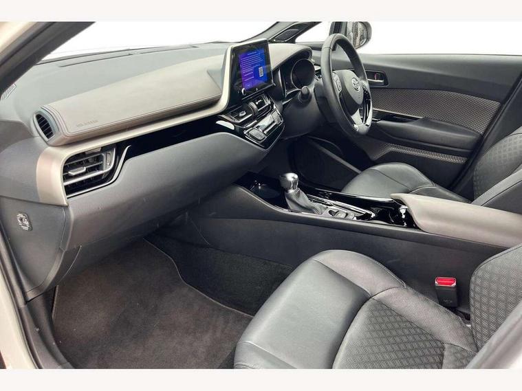 4.2" coloured TFT screen for multi-information display, Adaptive cruise control, Apple car play and Android auto, Bluetooth connectivity, E-call, Electric power steering, Hybrid system indicator, Lane departure alert with steering control, Lane trace assist, Push button tailgate release, Remote boot door release in cabin, Remote boot door release in key, Reversing camera, Road sign assist - RSA, Simple Intelligent parking assist, Smart voice assist, Touch 2 Go navigation system, Trip computer, Voice recognition, Wireless smartphone integration, Vehicle Stability Control (VSC), 6 speakers, AM/FM radio, DAB Radio (Digital Audio Broadcasting), Toyota touch 2 multimedia system with 8" display, USB connector, Wi-fi connectivity, Adaptive front light system, Adaptive LED Headlights, Anti-jam protection on power windows, Auto high beam, Auto up and down function on all power windows, Automatic headlight levelling, Automatic headlights, Automatic headlights cut-off, Black and body coloured rear bumper, Black lower front grille, Black upper front grille, Body colour door handles, Body colour door mirrors, Body colour front spoiler lip, Body coloured front bumper, Boot door release with push button, Electric heated door mirrors, Follow me home headlights, Front and rear power windows, Headlight cut off reminder, Honeycomb lower front grille, LED daytime running lights, LED fog lights, LED front light guide, LED High mounted stop light, LED rear brake lights, LED rear combination lights, Noise reduction layer on front windows and windscreen, Power adjustable door mirrors, Privacy glass, Rain sensor, Rear sequential indicators, Rear side wing doors, Rear spoiler, Rear tailgate, Rear window defogger, Rear window wiper, Shark fin antenna, UV-filter on driver and passenger windows, UV-filter on rear windows, Variable front intermittent wipers, 12v power outlet - front, 3 rear headrests, 3 seat bench in 2nd row, 3 spoke leather steering wheel, 60/40 split folding 2nd row rear seats, Adjustable rear headrests, Adjustable speed limiter switch on steering wheel, Assist grips front and centre pillar, Audio and telephone switches on steering wheel, Black front door assist grips, Blue ambient lighting on front cup holders, Blue ambient lighting on front doors, Boot light, Chrome interior door handles, Driver and front passenger personal light, Driver and front passenger Whiplash Injury Lessening seats, Driver and passenger seatback pockets, Dual zone automatic air conditioning, Floor mats, Front cupholders, Front head restraints, Front sports seats, Glovebox with internal light, Hard tonneau cover, Heated driver and front passenger seats, Heated steering wheel, Hooks for luggage holding net, Humidifying Nanoe air purifier, Illuminated entry system, Isofix attachments on outer rear seats, Leather gearshift, Leather wrapped steering wheel, Light on driver sun visor, Light on passenger sun visor, Manual telescopic steering wheel, Manual tilt steering wheel, Microphone on front personal light, Mirror on driver sun visor, Mirror on passenger sun visor, Multimedia switches on steering wheel, Pollen filter, Power adjustable lumbar support on driver seat, Power tilting cushion on driver seat, Shopping bag hooks, Single front passenger seat, Slow opening on lower glovebox, Voice recognition switch on steering wheel, Leather pack - C-HR, Tech with parking sensor pack - C-HR, 16 Disk front wheel brake, 3x3 point rear seatbelts, ABS+EBD+Brake assist, Electronic parking brake, Front and rear seatbelt reminder, Front passenger airbag on/off switch, Hill start assist control (HAC), Pre collision system with pedestrian detection, Pre-tensioners and force limiters, Rear door child safety locks, SRS Airbags - Driver + Front passenger, front side, front and rear curtain and driver's knee airbags, Toyota safety sense, Tyre pressure monitoring system, Tyre pressure warning system, Acoustic vehicle alert system (AVAS), Glass-breaking alarm sensors, Immobiliser, Intrusion alarm, Intrusion sensor, Motion sensor alarm, Power door locks, Power passenger window lock, Remote central locking, Black lower dashboard, Dark brown upper dashboard, Piano black console, Silver deco line on upper dashboard, Tyre repair kit,