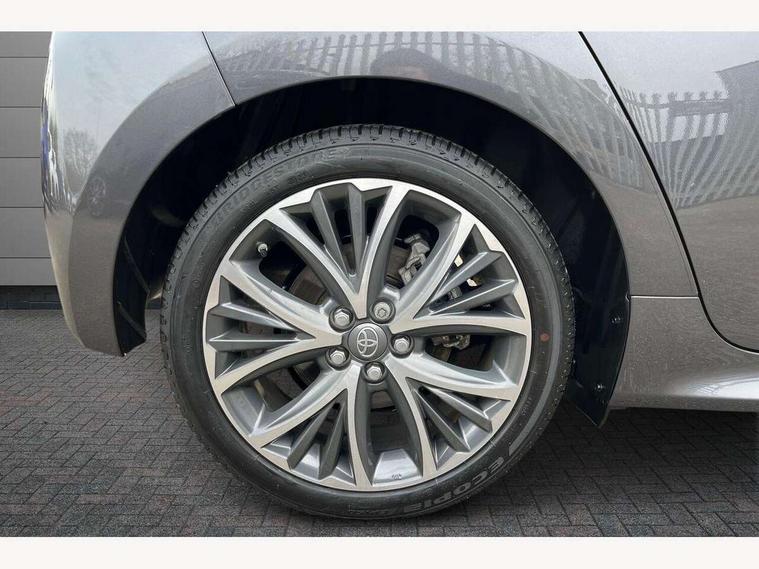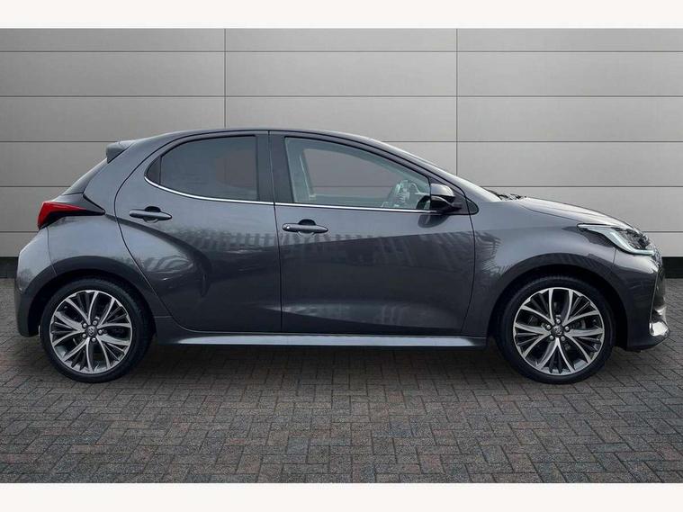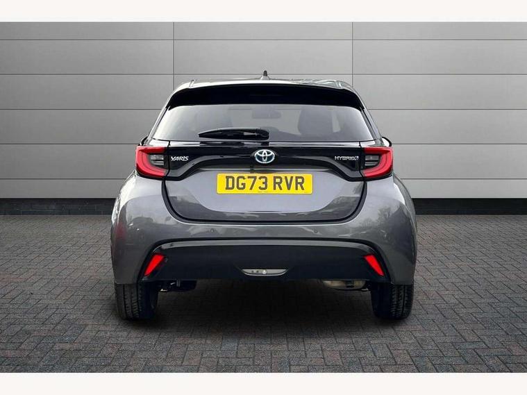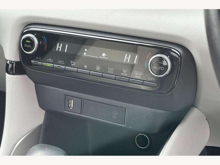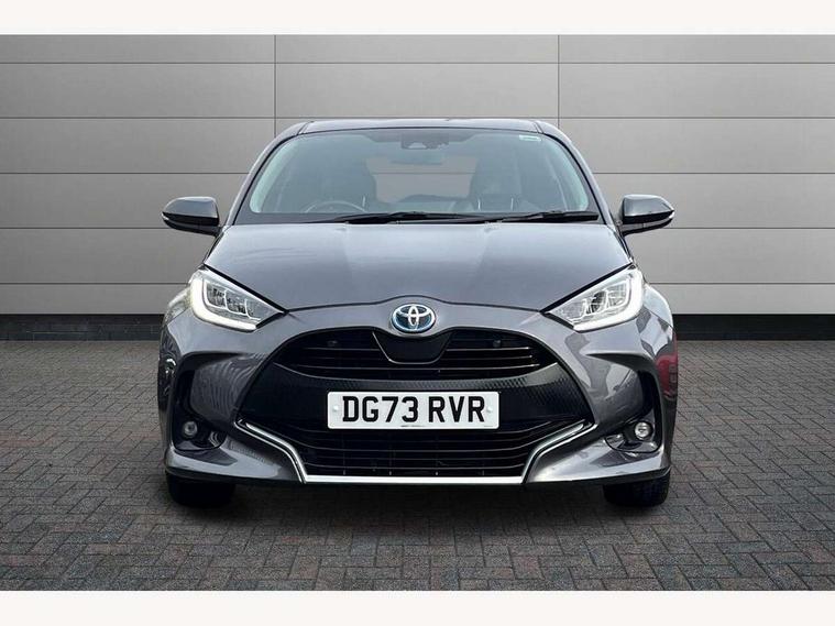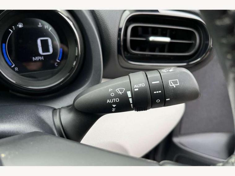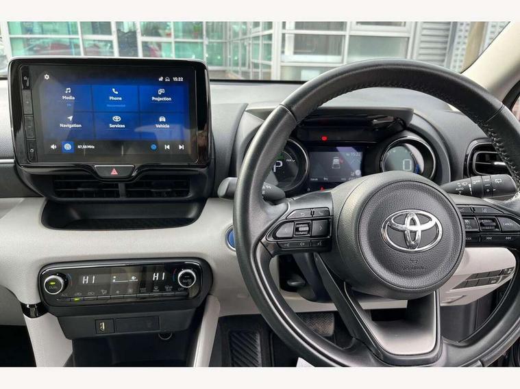 Adaptive cruise control, Adjustable speed limit with speed warning, Blind spot monitoring, Bluetooth connectivity, Colour binocular inspired displays with digital speedometer, E-call, Electric power steering, Hybrid energy display, Multi information display switches on steering wheel, Reversing camera, Smartphone integration with Apple CarPlay and Android auto, Tailgate, Touch 2 navigation system, Voice recognition, Vehicle Stability Control (VSC), 6 speakers, 9" HD multimedia display touch screen with Toyota smart connect, USB connection, Acoustic windscreen glass, Auto windscreen wipers, Automatic headlights, Automatically retractable door mirrors, Body coloured door mirrors, Electric adjustable heated door mirrors, Follow me home headlights, Front auto power windows with anti jam protection, Full LED rear lights, LED daytime running lights, LED front fog lights, LED front light guide, LED Headlights, LED High mounted stop lamp, LED Indicators, LED rear light guide, Manual headlight levelling, Painted chequered front grille, Rain sensor, Rear auto power windows with anti jam protection, Rear privacy glass, Rear side wing doors, Rear spoiler, Rear wiper, Satin lower front grille, Shark fin antenna, Turning signal integrated indicators in door mirrors, Variable front intermittent wipers, 3 adjustable rear headrests, 3 seat bench in 2nd row, 3 spoke leather steering wheel, 60/40 split folding rear seat, Active headrests, Adjustable boot height, Coat hooks in rear grab handles, Cup holders (2 front & door), Data Communication Module (DCM) connected services, Dual zone automatic air conditioning, Fabric seat with partial synthetic leather upholstery, Front armrest, Front sport seats, Glovebox, Grey roof lining, Height adjustable driver's seat, Height adjustable passenger seat, Isofix seat fixing, Leather gearshift, Map pockets on the backs of the front seats, Pollen filter, Shopping bag hooks, Single front passenger seat, Tilt/telescopic steering column, Parking pack - Yaris, 3 point seatbelts on all rear seats, ABS+EBD+Brake assist, Electronic parking brake, Emergency brake light system (EBS), Front passenger airbag on/off switch, Front seatbelt reminder, Hill start assist control (HAC), Rear child proof door locks, Rear seat belt reminder, Supplemental Restraint System (SRS) 8 airbags: Driver & passenger's airbags, dual side curtain airbags, side impact airbags, front centre airbag, Toyota Safety Sense 2, Precollison + Night time Pedestrian & Cyclist Detection, Lane Trace Assist, Auto High Beam, Intelligent ACC & Road Sign Assist, Tyre pressure warning system, 2x Master key, Alarm/immobiliser, Keyless smart entry with push button start, Remote AC via MyT, Remote locking via MyT, Remote powered central double locking doors, Satin chrome interior styling, Soft touch instrument panel, Space saver spare wheel,