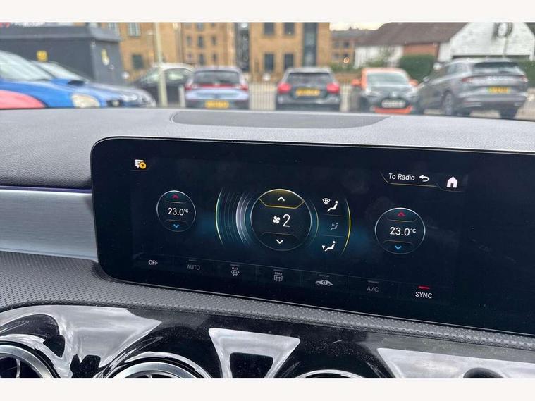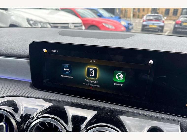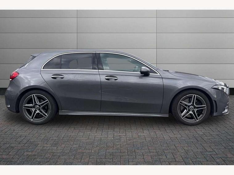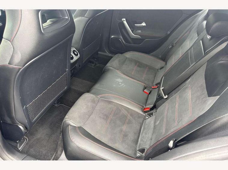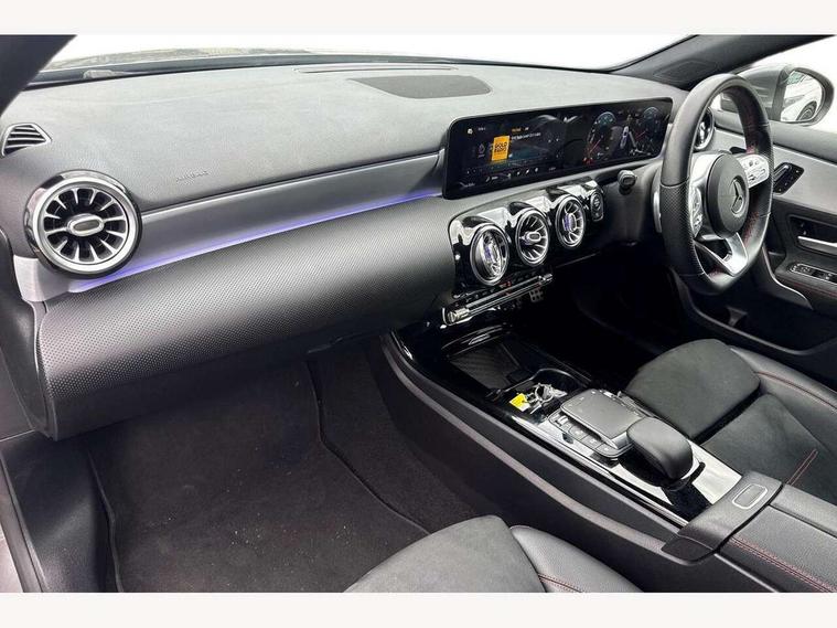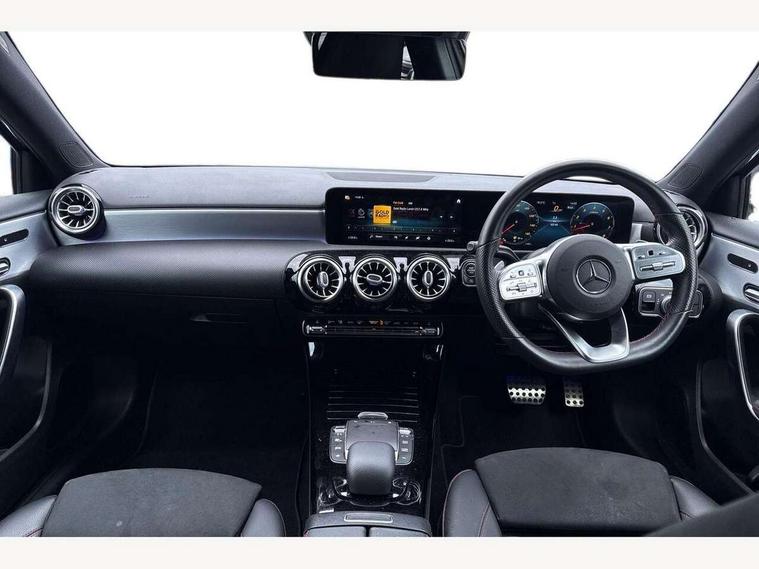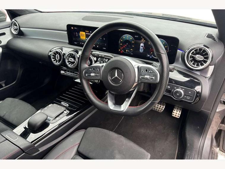 10.25" Digital instrument cluster display screen, 10.25" media display, 180 degree rear view camera with parking guidelines, Active lane keep assist, Active park assist with parktronic system including front and rear parking sensors, Attention assist, Brake pad wear indicator warning light, Car wash mode, Direct steering, Dual bluetooth interfaces, DYNAMIC SELECT with a choice of driving modes (ECO, Comfort, Sport and Individual), ECO start/stop function, Fluid level warning indicator for fuel, oil, coolant and washer fluid, Hard-disk navigation, Hey Mercedes Voice activation, Lamp failure indicator, MBUX augmented reality for navigation, Mercedes me connect including emergency call system, accident recovery, breakdown and maintenance management, Outside temperature gauge, Owners manual in English, Pre-installation for private car sharing, Pre-installation for Vehicle Monitoring, Pre-installation for Vehicle Setup, Preinstallation for Mercedes Benz link, Service indicator (ASSYST), Smartphone integration with Apple CarPlay and Android auto, Traffic sign assist, Trip computer, Wireless charging, Lowered comfort suspension, Rear axle multi-link, 10 speakers, 2 USB ports (type C) in rear stowage compartment and one in front of center console, DAB Digital radio, MBUX multimedia system with DAB digital radio and touchpad including satellite navigation, Mercedes-Benz advanced sound system - 225W, 4 Electric Front and Rear windows, Adaptive brake lights, AMG bodystyling - Front apron with splitter in chrome, rear apron with chrome trim and chrome visible trim elements in tailpipe, Black weather strip, Body colour bumpers, Body colour door handles, Body colour side skirt, Body coloured door mirrors, Chrome beltline trim, Diamond radiator grille with chrome pins and silver louvre + chrome insert, Electric adjustable and heated door mirrors with integrated LED side indicators, Exhaust system - Twin visible tailpipes in polished stainless steel, Headlamp assist automatic headlamp activation, Heated glass rear windscreen + timer control, Illuminated front door sill panels with Mercedes-Benz lettering, LED high performance headlamps with integrated LED daytime running lights, LED tail lamp, LED third brake light, Multibeam LED with adaptive highbeam assist plus, Panoramic sliding sunroof, Privacy glass, Radio aerial, Rain sensing windscreen wipers with two sensitivity settings, Rear fog lights, Rear wiper, Window line trim strip in chrome, 3 Spoke flat bottom leather multi function steering wheel with perforated leather in grip area, 40:20:40 split folding rear seats, Artico man-made leather/Microfibre Dinamica upholstery with red contrast stitching, Auto Mercedes-Benz child seat recognition sensor, Black air vents with surround in silver chrome, Black roof lining, Brushed stainless steel sports pedals with rubber studs, Controller on centre console with chrome surround, Electrically adjustable front memory seats including lumbar support, Floor mats with stitched edging and AMG lettering, Front centre armrest with storage compartment, Front seat backs luggage nets, Front seat cushion length adjustment, Galvanished gear shift paddles on steering wheel, Heated front seats, Height/reach adjustable steering column, Interior lighting - 64 colour Ambient lighting, Interior mirror with reading lamps in black and frameless, Rear armrest with 2 cupholders, Rear head restraints, Seat occupancy sensor for front passenger seat, Sports seats with integrated headrests, Stowage compartment in centre console with retractable cover, Sunvisors with illuminated vanity mirrors, Touchpad on center console, Twin front cupholders, Two zone thermotronic luxury automatic climate control, Light and sight pack - A Class, Mirror package - A Class, Seat comfort pack - A Class, 3 rear 3 point seatbelts, ABS with Brake Assist, Active bonnet, Adaptive brake assist with hold function and hill start assist, Childproof locks manually operated for rear doors and electrically operated for rear power windows, Crash responsive emergency lighting, Driver and passenger head and side airbags, Drivers knee airbag, Dual stage driver/passenger airbags, Electronic parking brake, ESP curve dynamic assist, ESP with ASR, Front and rear seatbelt reminder, Front brake callipers with Mercedes Benz lettering, ISOFIX and top tether child seat fixing points in two outer rear seats, Perforated front brake discs, Tyre pressure monitoring system, Warning triangle and first aid kit, Window airbags, Alarm system/interior protection/immobiliser, Keyless entry lock/unlock, Keyless Go, Remote central locking and crash sensor with emergency opening function, Urban guard vehicle protection system with immobiliser and interior protection, Black seatbelts, Light aluminium with longitudinal grain interior trim, 18" AMG 5 twin spoke light alloy wheels in titanium grey with highsheen finish, Summer tyres, Tirefit sealant kit,