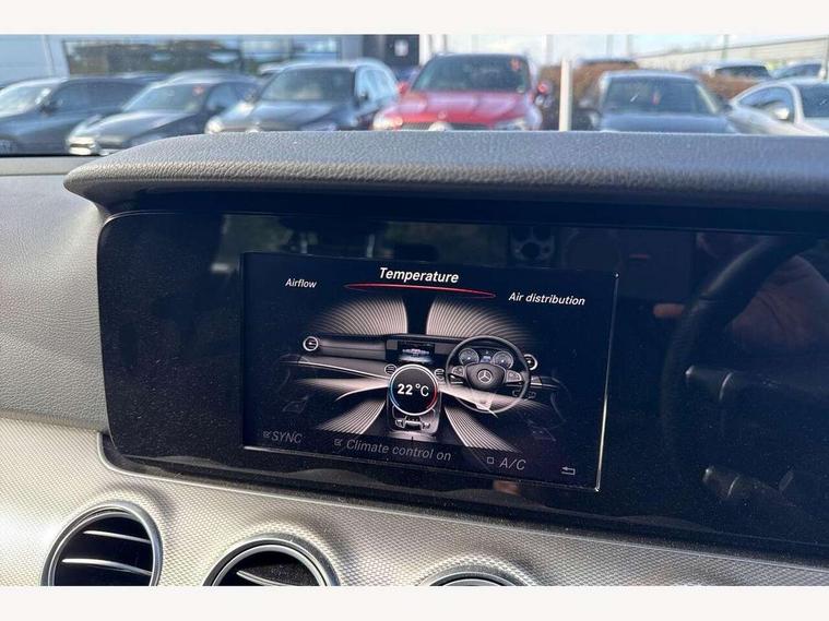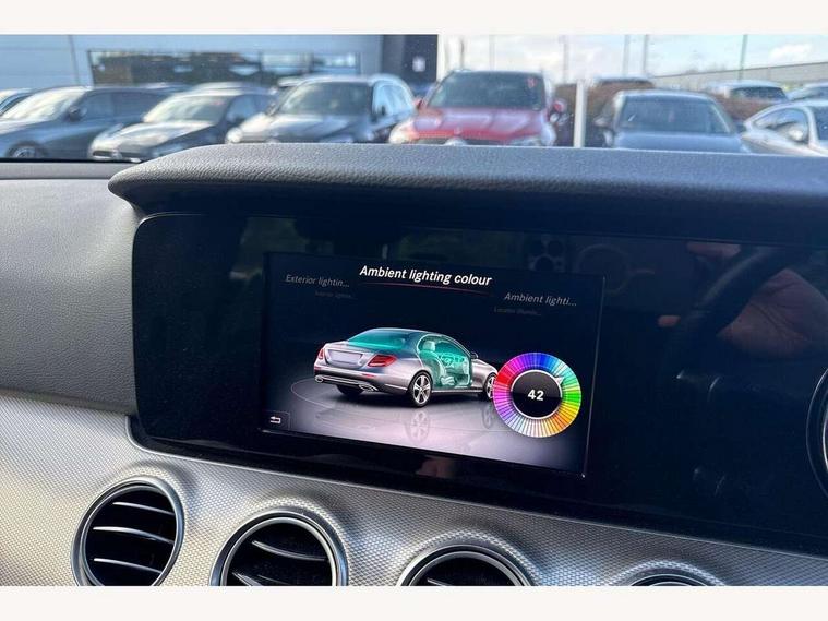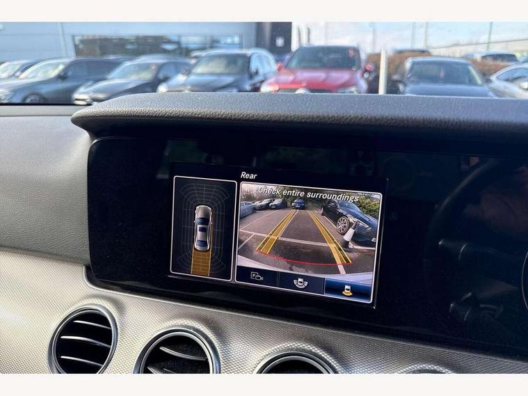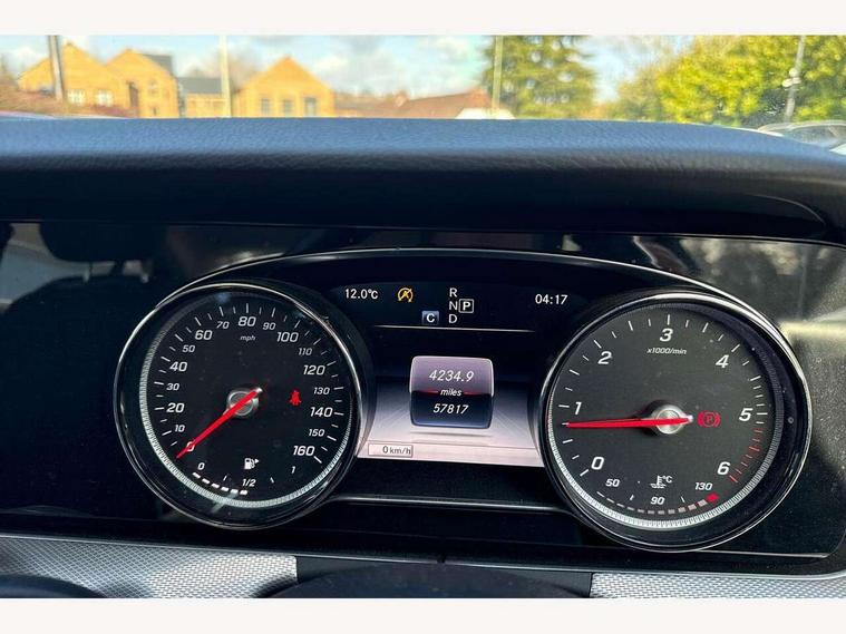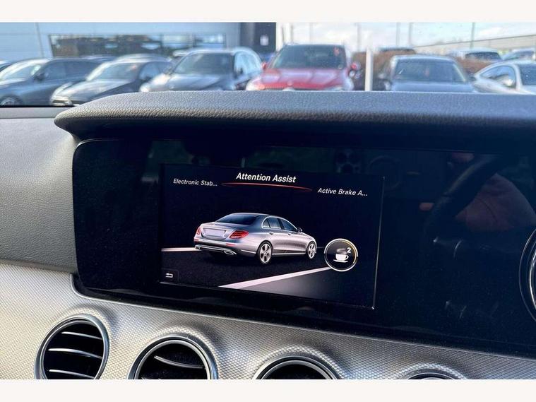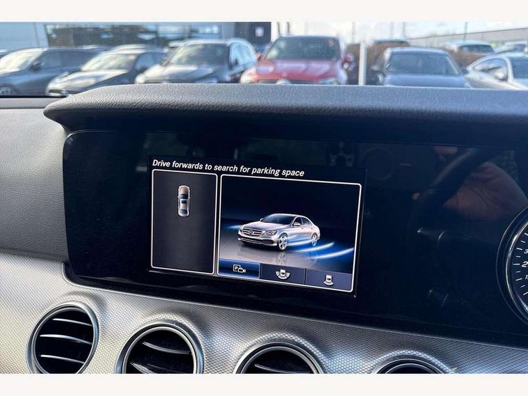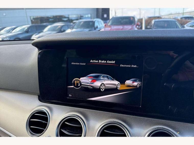 Active park assist with parktronic system, Analogue clock, Attention assist, Bluetooth interface for hands free telephone, Boot release from drivers seat, Brake wear warning light, DYNAMIC SELECT with a choice of driving modes (ECO, Comfort, Sport, Sport+ and Individual), Multi function trip computer, Park assist pilot with front and rear park assist, Remote boot release, Service indicator (ASSYST), Speed sensitive power steering, Diesel particulate filter, DAB Digital radio, Media interface, Steering wheel mounted audio controls, USB/aux input socket, Adaptive brake lights, Aerial integrated in rear window, Body colour bumpers, Body colour door handles, Body colour door mirrors, Electrically adjustable and heated door mirrors, Polished aluminium upper window surround, Polished aluminium waistline, Radiator grille with integral star and 2 louvres in matt iridium silver with chrome trim, Rain sensor windscreen wipers, 3 spoke nappa leather steering wheel, Ambient lighting, Auto Mercedes-Benz child seat recognition sensor, Front and rear door pockets, Front centre armrest with storage compartment, Front door sills with Mercedes Benz lettering, Heated front seats, Height/reach adjust steering wheel, Interior rear light/integral reading lights, Isofix rear child seat fastenings, Leather upholstery, Lockable/illuminated air conditioned glovebox, Multi function steering wheel, Sports pedals with stainless steel surfaces and rubber studs, Storage compartment with 12V socket in centre console, Sunvisors with illuminated vanity mirrors, Interior lighting pack - E Class, Keyless Go comfort pack - E Class, Memory pack - E Class, Mirror pack - E Class, 3x3 point rear seatbelts, Active bonnet, Active brake assist, Childproof rear door locks, Driver and passenger side/thorax airbags, Driver/front passenger airbag, Drivers knee airbag, Electronic parking brake, Hill hold assist, Hill start assist, Pre-Safe anticipatory safety system, Seat occupancy sensor, Seatbelt warning, Tyre pressure monitoring system, Warning triangle and first aid kit, Window airbags, Alarm system/interior protection/immobiliser, Chrome surround in electric key, High gloss black centre console,