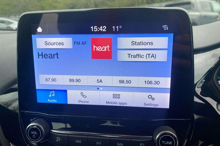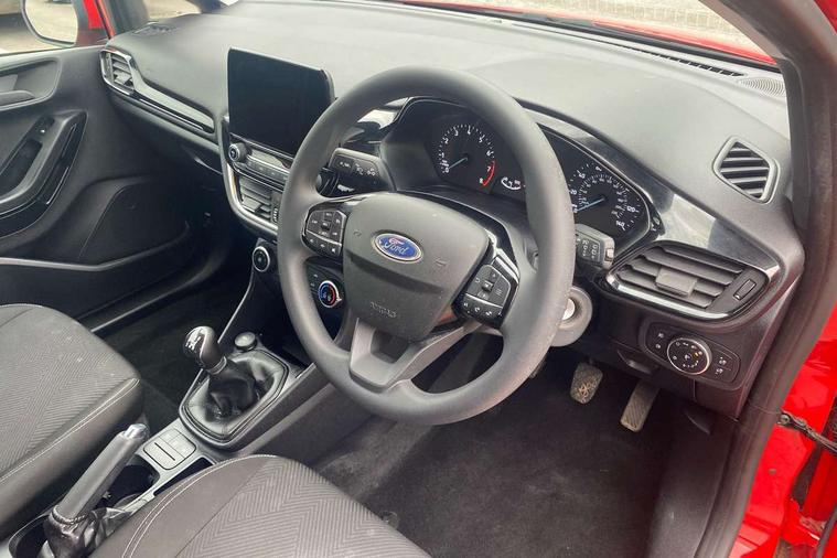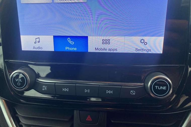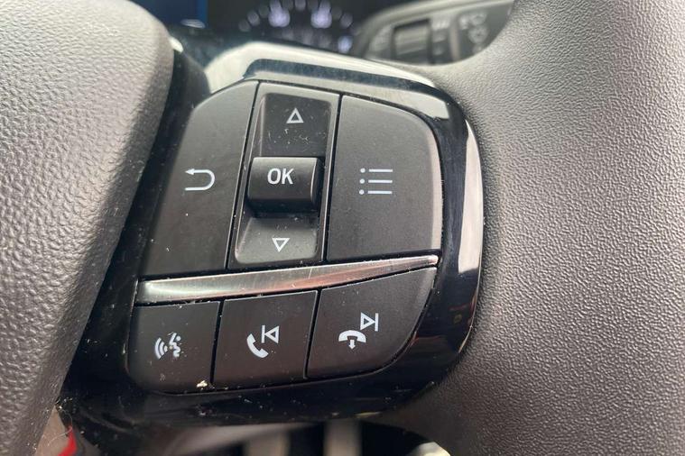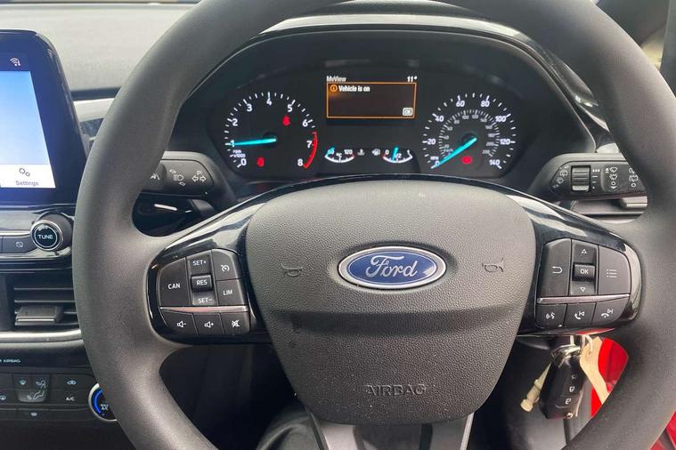 4.2" TFT Ice blue illumination analogue cluster, Cruise control with adjustable speed limiter, Electric power steering, Ford easy fuel, Ford SYNC 2.5 with DAB radio, 8" screen, emergency assistance, Apple car play/Android auto, 2x USB, 6 speakers, Lane keep assist, Lane keeping aid, Selectable drive modes (Normal, Sport, Track), Trip computer, Standard suspension, 3rd brake light, Automatic headlights, Body colour bumpers, Body coloured electrically operated with side indicators, Electric front windows/one touch facility, High gloss chrome grille surround, LED headlights with LED daytime running light and integrated fog light, Quickclear heated windscreen, Rain sensing wipers and auto dimming rear view mirror, Rear side wing doors, Rear wiper, 3 rear headrests, 3 seat bench in 2nd row, Adjustable head restraints, Cloth upholstery with metal grey stitching, Front floor mats in velour, Manual 2 way passenger seat adjust, Manual 4-way driver seat adjust, Manual air conditioning, Single front passenger seat, 3 point seatbelts on all rear seats, Electronic stability control with hill start assist, Front and rear seat belt warning, Manual child lock in rear doors, Tyre pressure monitoring system, MyKey system, Remote central locking, Thatcham alarm with power door dead locks, Tyre repair kit,