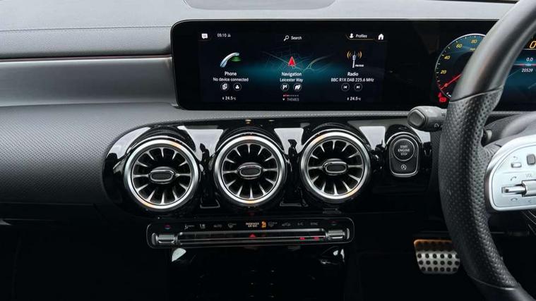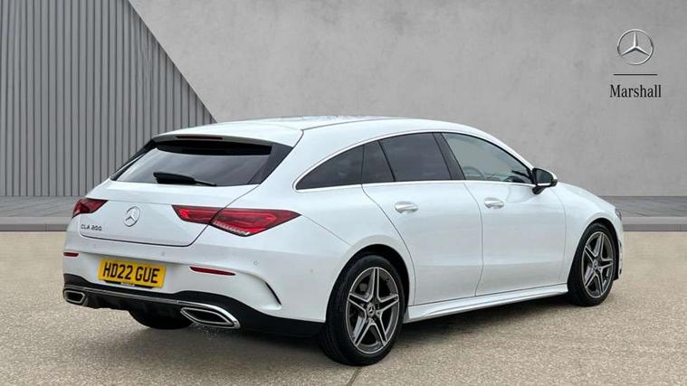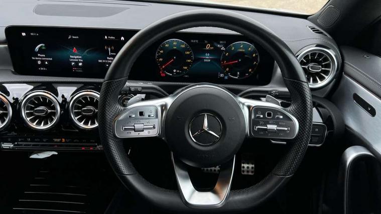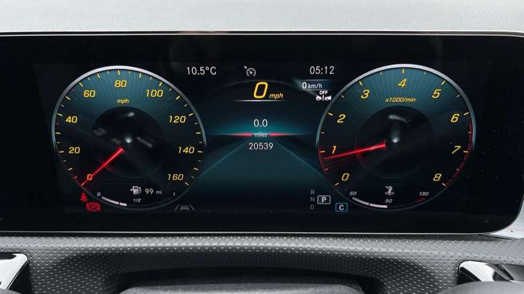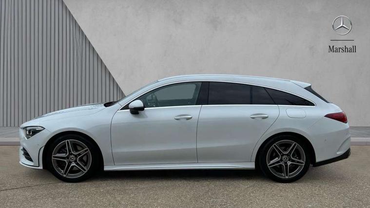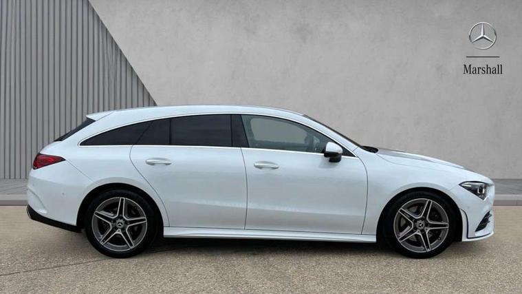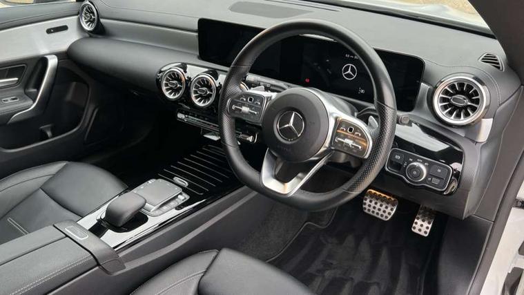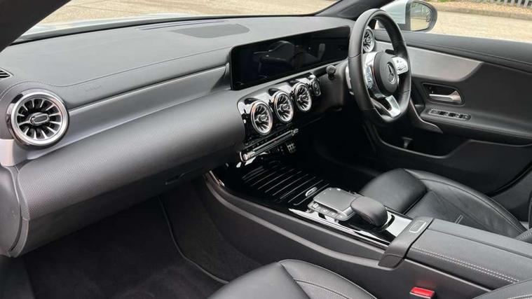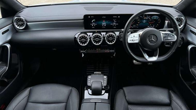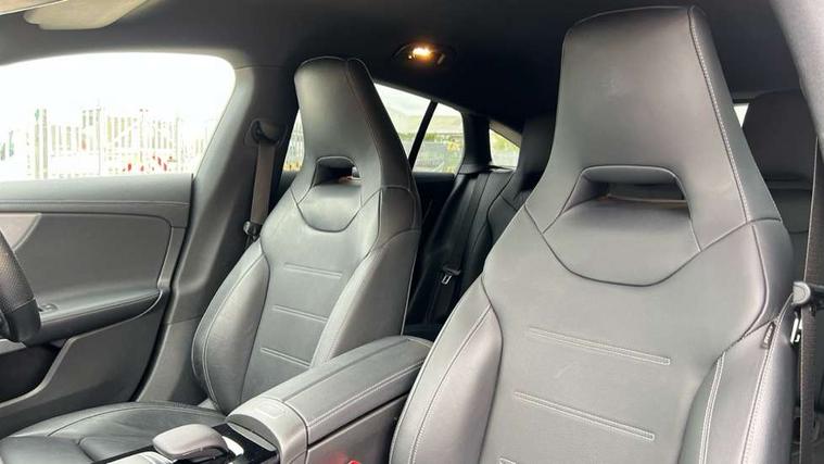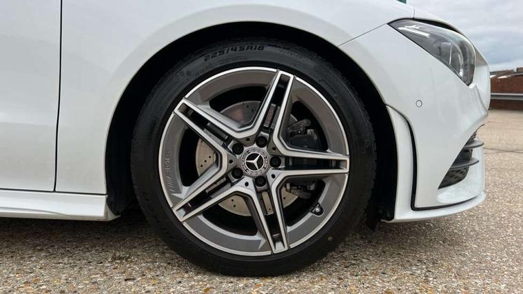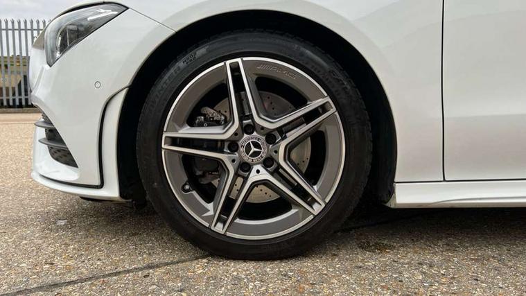 10.25 inch Instrument display with digital cockpit, 10.25 inch touchscreen central media display, Active lane keeping assist, Attention assist - Monitors steering behaviour and long journey fatigue, Bluetooth connection, Car wash mode, Cruise control with limiter, Direct steer system with speed sensitive power steering, DYNAMIC SELECT with a choice of driving modes (ECO, Comfort, Sport and Individual), ECO start/stop function, Fluid level warning indicator for fuel, oil, coolant and washer fluid, Hard-disk navigation, Hey Mercedes Voice activation, Lamp failure indicator, Mercedes me connect including emergency call system, accident recovery, breakdown and maintenance management, Mercedes me remote services, Outside temperature gauge, Owners manual and service booklet in English, Pre-installation of private car share, Preinstallation for Mercedes Benz link, Radio aerial integrated into front and rear windshields, Service indicator (ASSYST), Smartphone integration with Apple CarPlay and Android auto, Speed limit assist, Trip computer in multifunction display with current consumption indicator, 7G-DCT 7 speed automatic transmission, Lowered comfort suspension, Rear axle multi-link, DAB digital radio tuner, MBUX multimedia system with DAB digital radio and touchpad including satellite navigation, Mid-range sound system, USB (type C) ports (2) in stowage compartment and 1 in front of centre console, Adaptive brake lights, AMG body styling with AMG front apron and rear apron and visible exhaust tailpipe in chrome trim elements, AMG bodystyling side skirts, Body colour bumpers, Body colour door handles, Chrome beltline strips, Chrome weather strip, Diamond radiator grille pins in chrome with silver painted louvres and chrome insert, Electric windows, Electrically adjustable and heated door mirrors with integrated LED indicators, Exhaust system with 2 Visible tailpipe trim elements and rear apron with trim in chrome, Headlamp assist automatic headlamp activation, Heated glass rear windscreen + timer control, High level LED third brake light, Interior mirror with black reading lamps and frameless, LED high performance headlamps with integrated LED daytime running lights, LED tail lamp, Privacy glass with dark tinting on rear side windows and rear window, Rain sensing windscreen wipers with two sensitivity settings, Rear fog lamp, Rear side wing doors, Rear wiper, Window line trim strip in chrome, 3 seat bench in 2nd row, 3 spoke flattened bottom nappa leather multifunction steering wheel with perforated leather in grip area, 40:20:40 split folding rear seat backrests, Air conditioning - Two zone thermotronic luxury automatic climate control with display, Air vents with surround in silver chrome, Automatic child seat recognition sensor, Black roof lining, Brushed stainless steel sports pedals with rubber studs, Floor mats with stitched AMG lettering, Front centre armrest with stowage, Galvanished gear shift paddles on steering wheel, Heated front seats, Illuminated front door sills with changeable cover, Illuminated glove compartment stowage, Interior lighting - 64 colour Ambient lighting, Luggage net on driver/front passenger seat backrest, Manually adjustable front seats, Manually height and reach adjustable steering column, Rear armrest with two integral cup holders for drinks, Rear head restraints, Single front passenger seat, Sport seats with fixed head restraints, Stowage compartment in centre console with retractable cover, Sunvisors with illuminated vanity mirrors, Touchpad on center console, Twin front cupholders, Two outer rear seat isofix and top tether child seat fixing points, Keyless go pack - CLA, Light and sight pack - CLA, Mirror pack - CLA, Parking package - CLA, Seat comfort pack - CLA, Active bonnet pedestrain safety measure which detects an impact and raises bonnet by 65mm, Active brake assist includes forward collision warning system with autonomous braking, Adaptive brake assist with hold function and hill start assist, Anti-lock braking system (ABS), Black seat belts, Bonnet with power domes, Brake pad wear warning indicator, Childproof locks manually operated for rear doors and electrically operated for rear power windows, Crash responsive emergency lighting, Driver and front passenger head and sidebags, Driver and front passenger windowbags, Drivers knee airbag, Dual stage driver and front passenger airbags, Electric parking brake, Electronic stability programme with acceleration skid control, ESP curve dynamic assist, Front and rear seatbelt reminder, Front passenger seat occupancy sensor, Three point rear seat belts, Tyre pressure monitoring system, Warning triangle and first aid kit, Remote central locking and crash sensor with emergency opening function, Urban guard vehicle protection system with immobiliser and interior protection, Light aluminium with longitudinal grain interior trim, 18" 5 twin spoke design alloy wheels painted in titanium grey with high sheen finish, Summer tyres, Tirefit tyre sealant kit,