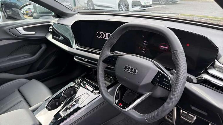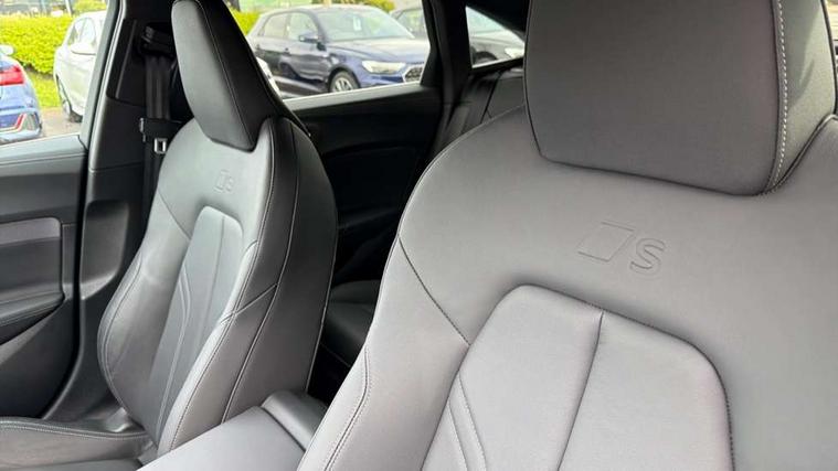 Adaptive cruise control, Advanced driver attention and fatigue montior, Audi application store, Audi assistant, Audi connect emergency call and service, Audi drive select, Audi smartphone interface, Audi virtual cockpit plus with 11.9" OLED colour display, Automatic start/stop system with coasting functionality, Camera based traffic sign recognition, Intersection assist, Lane departure warning, MMI navigation plus with high resolution 14.5" OLED touchscreen colour display, Park assist plus, Parking system plus with 360 display, Progressive steering with servotronic, Rear view camera, Swerve assist and turn assist, Traffic sign based speed limiter, Sports suspension lowered by 20mm, 2 USB-C ports in both the front and rear, Audi sound system impressive sound with 10 loudspeakers including centre speaker and subwoofer, 6-channel amplifier with a total output of 180 watts, DAB digital radio reception, Smartphone compartment with wireless charging, Aluminium window trims, Auto dimming rear view mirror, Body colour door mirrors, Door mirrors - electrically adjustable, heated, folding and auto dimming on both sides, Front and rear electric windows, Front door sill trims with aluminium inlays, illuminated with 'S' logo, High beam assist, LED headlights Plus incl. digital daytime running lights, turning light, all-weather light, motorway light, manouevring light and intersection light, LED rear lights pro incl. dynamic rear indicators and illuminated light strip with animated coming and leaving home function, LED third brake light, Privacy glass, Rear and side windows with heat insulating glass, Rear boot, Rear side wing doors, S Line badges on the front wings, S line bumpers, radiator grille and diffuser in phantom black and diffuser insert in matt anthracite, White rhombus logo projection light in exterior mirrors, Windscreen with acoustic glazing, 3 rear headrests, 3 seat rear bench, 3 spoke leather steering wheel with multi-function buttons with touch control, flattened on top and bottom, with S badging and contrast stitching, 3-zone automatic climate control, 40:20:40 split folding rear seat bench with centre armrest and cup holders, Comfort front centre armrest, Front and rear floor mats, Front seats with manual adjustment for position and 4-way electric lumbar support, Front sport seats with integrated headrest and S embossed logo, Headlining in black cloth, Heated front seats, i-Size child seat mounting on the front passenger side and outer rear seats, i-Size and top tether on the outer rear seats, Luggage compartment lid, electrically opening and closing, Manual steering column height and depth adjustment, Single front passenger seat, Stainless steel pedals and footrest, Steering wheel grips in perforated leather and shift paddles, Ambient lighting package plus - A5, 3x3 point rear seat belts, Driver airbag, Electric child safety locks, First aid kit with warning triangle and vests, Front emergency brake assist, Front passenger airbag, Front passenger airbag deactivation, Front side airbags with head airbag system and front interaction airbag, Hill hold assist, Seat belt monitoring with rear seat occupant reminder, Tyre pressure loss indicator, Anti theft alarm, Anti-theft wheel bolts, Keyless Go, Accent surfaces and control buttons in gloss black, Black dashboard with contrast stitching, Inlays in matt brushed aluminium with linear embossing, anthracite, Softwrap in leatherette with contrast stitching, Upper and lower interior elements in leatherette, Tyre repair kit,