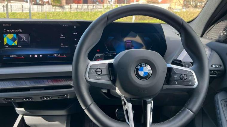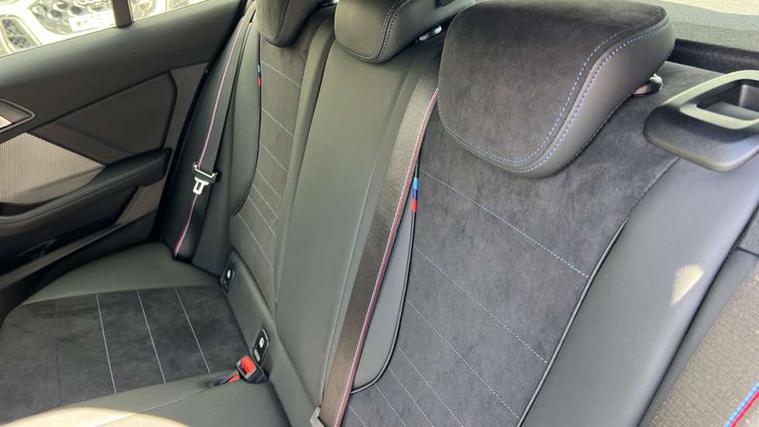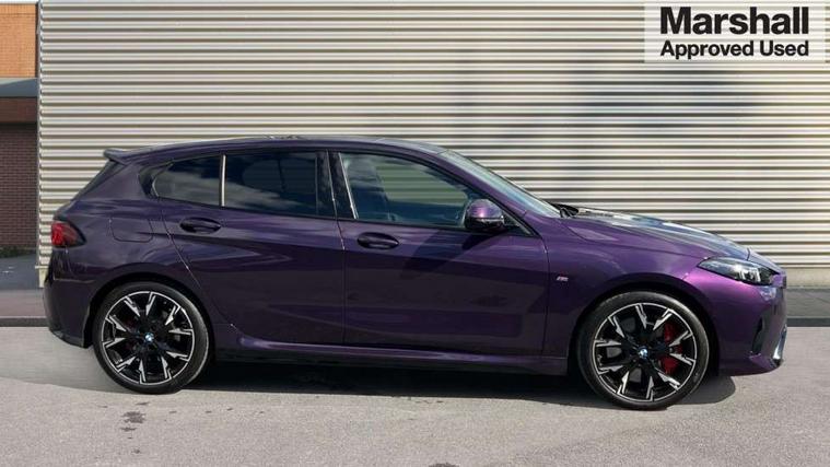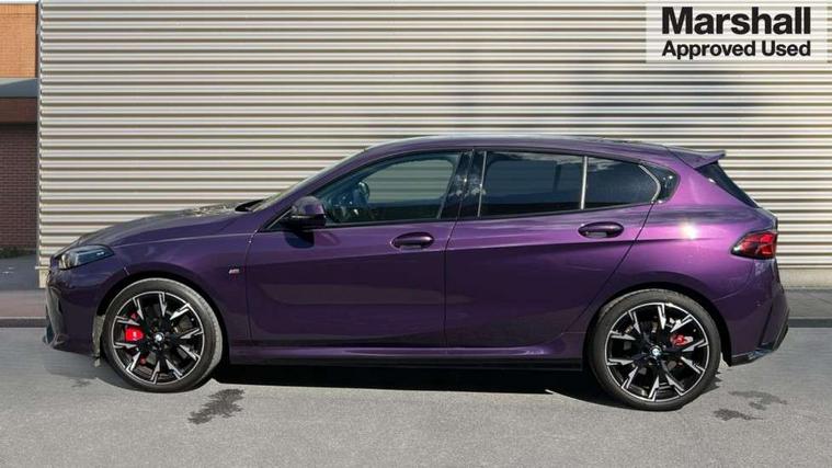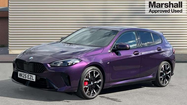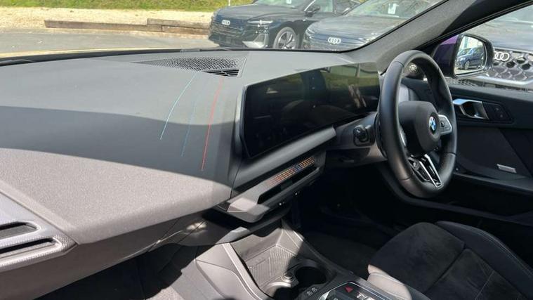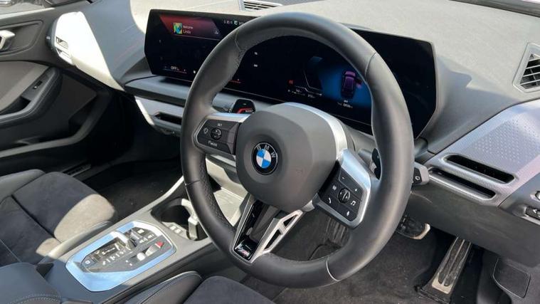 Active guard plus, Attentiveness assist, Bluetooth / WiFi interface for wireless connection of mobile terminal devices and audio streaming, BMW ConnectedDrive online services, BMW Live cockpit plus, BMW Teleservices, Check Control warning system for monitoring of lights and door/luggage compartment open warning, Eco pro mode, Electric power steering with Servotronic steering optimised at all speed ranges, Evasion assistant, Flat airvents in instrument panel with adjustable slats, Front and rear parking sensors, Front axle single joint with specific axle kinematics to minimise drive influences on steering + provide increased rigidity agile driving behaviour, Gearshift time display in manual mode, Integrated owners handbook, Left turn warning with brake function, My modes (Personal / Efficient / Sport), Oil sensor for level and grade, On board computer, Optimum shift indicator, Park assist including reversing assistant, lateral parking aid and reversing assist camera, Personal e-SIM, Personal Profile, Pull away assistant, Rigidly mounted rear subframe - Multi link construction with separate spring / damper configuration and excellent driving characteristics, Speed limit Info including no-overtaking indicator, Speed limiter, 49 litre fuel tank, Aluminium lightweight construction, Anti roll bar front and rear, Balancer shaft, Double VANOS twin scroll turbocharging system, Drive Performance Control, Electronic differential lock, Electronic selector lever, High precision injection, M Adaptive suspension, Petrol Particulate Filter, Steptronic transmission with double clutch, Twin tube gas filled shock absorbers with degressive characteristic curve, VALVETRONIC engine management, DAB Digital radio, Auto dimming rear view mirror, Automatic windscreen wipers and automatic headlight, Body colour door handles, Body colour mirror caps, Body colour roof trims, Chrome 'M' logo side designation, Chrome exhaust twin tailpipes round 90mm in left, Chrome kidney grille frame with Satin Aluminium struts, Direction indicator side lights in exterior mirrors, Electrically adjustable exterior mirror with mirror adjustment switch on drivers armrest and aspheric on driver side, convex on passenger side, Exterior M sport design elements, Fading support, Folding side mirrors with auto dimming/folding wing mirrors with auto dimming, Follow me home headlights, Front and rear bumper system with replaceable deformation elements, Front and rear electric windows with open and close fingertip control, anti trap facility and comfort closing, Front bumper panel with M specific design in vehicle colour with inserts in black high gloss, Front door sill finishers in black plastic with M designation in metallic look, Green tinted heat protection glazing, Heated rear window, High gloss black exterior mirrors, High gloss shadowline window frame, Recess cover mirror frames and B/C pillar embelisher trim, High level third brake light, Integrated front windscreen with washer jets, LED daytime running lights, LED eyebrow turn indicators, LED front fog lights, LED Headlights, Lightweight engineering, M identification on the sides, Matt black air guide grilles, Matt black wheel arch trim, Model badge on tailgate right, Nearside reverse light in rear light cluster, Preparation for high beam assistant, Rain sensor, Rear bumper panel with M-specific design in vehicle colour with inserts in black high gloss, Rear fog lights, Rear side wing doors, Rear window wiper, Shark fin antenna, Side sill covers with M specific design in body colour, Trailer stabilisation logic, Visible VIN plate, Welcome lighting, 12V power socket in front centre console with blanking plug, 3 rear seat head restraints, 3 seat bench in 2nd row, 3 spoke sports leather steering wheel with black leather and stitching, pearl chrome decorative finish, specific M Badge, Anthracite front and rear floor mats, Anthracite headlining, Black boot net with lashing eyes, Cargo function on 2nd seat row, Child seat ISOFIX attachment for two outer rear seats and front passenger seat with anchorage points, Conditioned based service, Driver and front passenger backrest net on rear, Driver and front passenger seat heating, Driver side folding compartment in instrument panel, Folding rear clothes hook, Footrest and pedals in black plastic, Four grab handles integrated in roof lining, Front and rear door pockets with bottle holders, Front and rear side armrest integrated into door trim, Front armrest with storage compartment, Gearshift paddles on steering wheel, Glove compartment, Height adjustable front head restraints, Luggage compartment for bag hooks on left and right, foldable luggage compartment liner and four lashing eyelets, Manual adjust steering wheel, Multi-function controls for steering wheel, Rear seat backrest with manual 60:40 split folding with 3 top tether clips integrated on rear of seat panels, Single front passenger seat, Storage compartment in centre console, Storage compartment in luggage compartment, Stowage of the parcel shelf in luggage compartment trim, Sun visors with vanity mirrors and insert tab, Two front centre console cupholders, Type C two USB ports in rear centre console, Upper retaining strap integrated into backrest rear panels, Connected pack professional - 1 Series, Interior lights pack - 1 Series, M Sport exterior styling aerodynamics pack - 1 Series, 2 tone horn, 3 point seatbelts on all seats, front pyrotechnic belt tensioners, stopper and belt force limiters, rear coded belt buckles, Airbags - Front driver/passenger, front and rear curtain head protection, front side, manual deactivation of front passenger airbag, Anti lock braking system (ABS) with brake assist, BMW emergency call, Brake drying, Braking readiness, Child proof locking system in rear door, Comfort modes, Cornering brake control, Crash sensor activating of airbags, Unlocking doors, hazard warning lights, interior light, safety battery terminal, Driver and front passenger seat belt sec