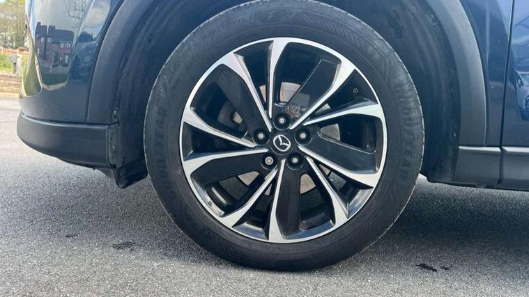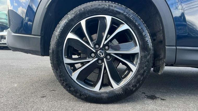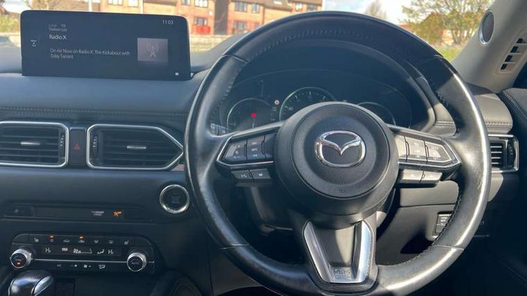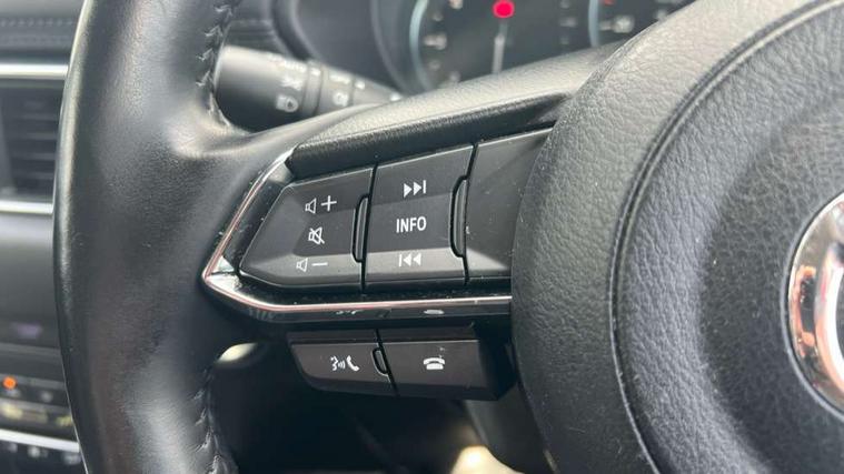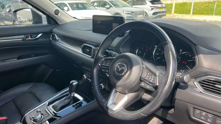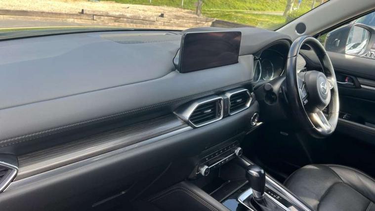 10.25" display with Mazda Connect infotainment, 7" colour TFT display, Apple car play/Android Auto, Blind spot monitoring with rear cross traffic alert, Bluetooth connectivity with voice control, Collision prevention assist, Connected services, Cruising Traffic Support, Electric power steering, Emergency stop signalling system, Engine start/stop button, Forward collision warning, Front and rear parking sensors, Integrated navigation system, Intelligent speed assist, Lane departure warning system, Lane keep assist, Qi wireless phone charging, Radar cruise control with Stop and Go, Reversing camera, Service indicator, Traffic sign recognition (TSR), Trip computer, Windscreen projected colour active driving display (HUD) with memory, i-stop, 2 USB sockets in rear, 2x USB sockets in front, AM/FM radio, Bluetooth audio streaming, Bose premium sound system with 10 speakers, DAB Digital radio, Multimedia Commander including separate volume dial, Steering wheel mounted audio controls, Adaptive front lighting system, Auto dimming rear view mirror, Automatic headlights, Black inlay dashboard panel, Body colour door mirrors, Body colour roof spoiler, Body coloured front and rear black lower bumper mouldings, Bright finish signature wing, Coming/leaving home lighting function, Door mirror integrated indicators, Dusk sensitive headlamps, Electric front/rear windows with one touch auto up/down, Front grille in gloss black finish, Gloss black B and C pillars garnish, High beam assist, Intermittent rear wash/wipe, LED auto levelling, LED daytime running lights, LED front fog lights, LED Headlights, LED third brake light, Power folding and heated door mirrors, Power tilt/slide sunroof, Privacy glass (rear side windows only), Rain sensing front wipers, Rear side wing doors, Satin black side mouldings, Scuff plates, Shark fin antenna, Signature LED rear combination lights, Single chrome tailpipes, Vinyl with wood grain metal inlay door trim panel, Windscreen wiper de-icer, 12v electrical power outlet, 3 seat bench in 2nd row, 3 stage heated front seats, 40:20:40 Karakuri fold-flat seat system, 6 way electric adjustable passenger seat, 8 way electric driver seat with lumbar support + memory, Cargo room flat floor board with waterproof undertray, Driver seat power slide, recline and height adjustment, Driver, Front passenger and two rear grab handles with coat hooks, Driver/passenger front seatback pockets, Driver/passenger sunvisors + illuminated vanity mirrors (drivers with ticket holder), Dual zone climate control, Folding centre armrest with 2 cup holders, Front and rear door pockets, Front centre storage with two cupholders, Front passenger seat power slide, recline and height adjustment, Gear shift indicator, Heated steering wheel, Humidity sensor, Illuminated glovebox, Interior dome light with integral spotlight, ISOFIX child seat anchorage points attached on outer rear seats, Karakuri tonneau cover, Leather upholstery, Leather wrapped steering wheel and gear knob, Light roof lining, Luggage compartment LED lighting, Luggage compartment power outlet, Paddle shifts, Rear air vents, Rear headrests, Rear seat recline, Roof mounted sunglasses holder, Single front passenger seat, Three height adjustable head restraints, Tilt/height adjustable steering wheel, White interior LED illumination lighting, 3 point front seatbelts with pre-tensioners, 3 rear 3 point seatbelts, ABS, Advanced Smart City Brake Support - SCBS, Child locks on rear doors, Driver and front passenger side airbags, DSTC-Dynamic Stability and Traction Control, Dual front airbags, Electronic brake force distribution, Electronic parking brake with auto hold, ESP, Front and rear curtain airbags, Front passenger airbag deactivation, G-Vectoring control, Hill hold assist, Seatbelt reminder front and rear, Single stage passenger airbags, Smart brake support with forward obstruction warning, Tyre pressure monitoring system, Automatic door locking when moving off, Deadlock, Immobiliser, Power door locks, Remote central locking, Smart keyless entry, Thatcham Cat.1 alarm, 19" diamond cut black alloy wheels, Tyre repair kit,