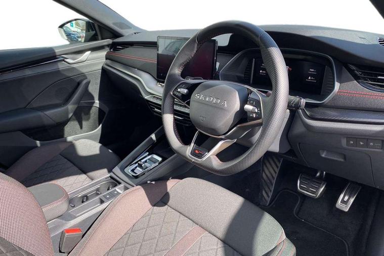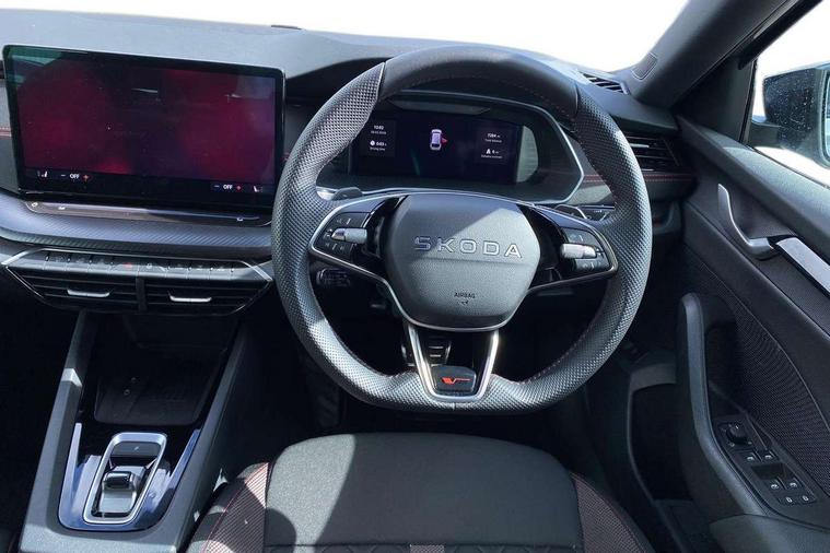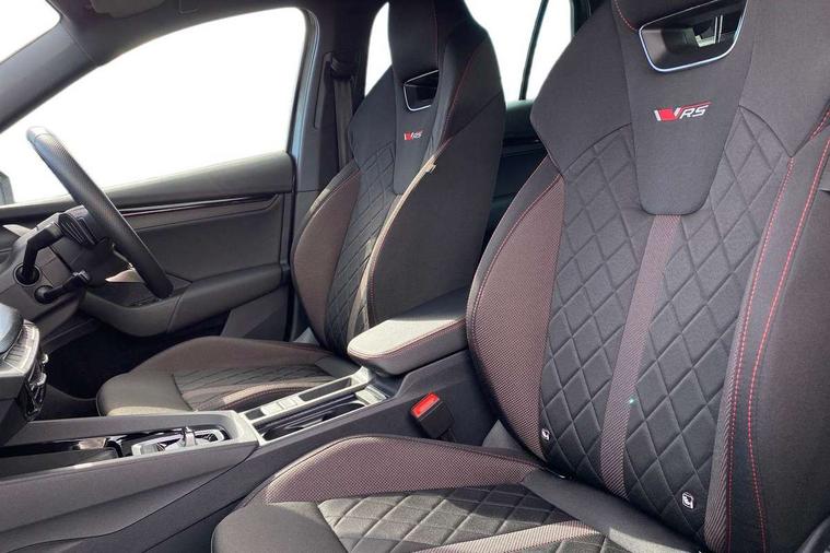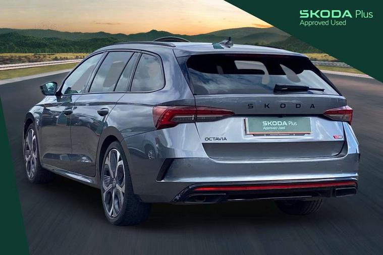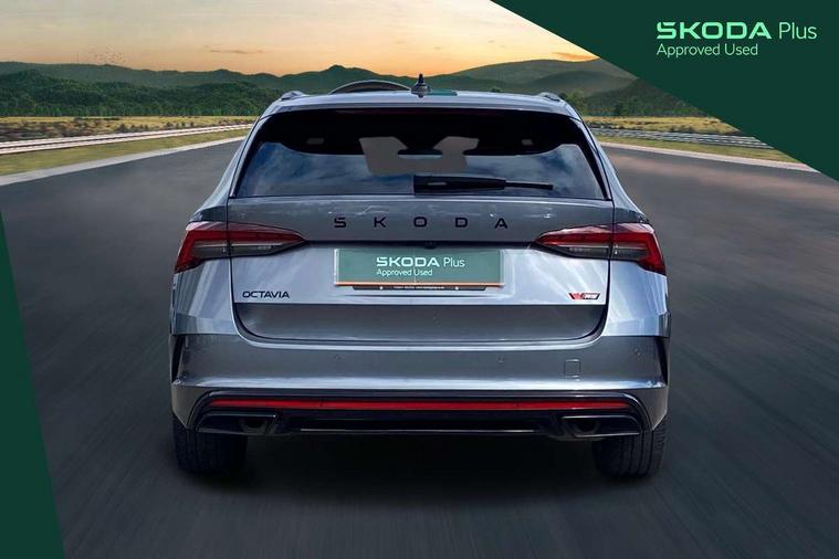 1x USB Typc C port in rear view mirror, 4x USB Type C ports - 2x in front centre console and 2x in rear (45W), Drive mode selection, Driver fatigue sensor, eCall emergency system, Electronic engine sound, Front assist system, Progressive dynamic steering, Traffic sign recognition, Turn Assist, Virtual Cockpit - 10.25" digital display, Voice control system, Wireless charging (15W) with cooling function, Wireless SmartLink for Apple CarPlay and Android Auto, Electronically controlled limited slip differential, vRS suspension, 13" touchscreen display with navigation, DAB Digital radio, Aero front windscreen wipers with intermittent function, Auto dimming rear view mirror, Black sport exhaust pipes, Body colour bumpers, Body colour door handles, Bumpers with rear red reflector strip, Electric front and rear windows, Exterior gloss black sports styling including front grille, window surrounds, door mirrors and badging, Gloss black diffuser, Gloss black roof rails, Gloss black spoiler, Heated rear windscreen, High beam control, High level third brake light, Ice scraper in fuel cap, LED daytime running lights, Logo projection in front doors, Rain and light sensors, Rear fog light on one side and reversing lights on both sides, Rear privacy glass, Rear side wing doors, Rear window wiper, Unique vRS bumpers and exterior styling, 12 volt socket in boot, 2x umbrella in door, 3 rear headrests, 3 seat bench in 2nd row, 4 foldable roof handles, Aluminium pedals, Front head restraints, Front sport seats, Heated front seats, Illuminated glovebox, Interior door handles in dark chrome, Jumbo Box storage, Luggage compartment lighting x2 lights, Mechanical rear seat release from boot, Single front passenger seat, Steering wheel in black leather with black stitching, Storage compartments in left and right of boot, Sun visors with mirrors, Sunglasses storage, Three spoke leather sports multifunction steering wheel with paddles, Ticket holder, Unsplit rear bench seat, split folding backrest with centre armrest with cupholder, Waste bin in door panel, Comfort package - Octavia Estate, Family package - Octavia, Light and view package plus - Octavia, vRS Design Selection pack - Octavia, 3x3 point rear seat belts, Alarm with interior monitoring, tilt sensor and back up horn, Curtain airbags and front side airbags, Driver and front passenger airbags, Drivers knee airbag, Electronic parking brake, ESC including ABS, EBV, MSR, ASR, EDS, HBA, DSR, Front central airbag, Hill hold assist, ISOFIX on front passenger seat and outer rear seats, Passenger airbag deactivate switch, Red brake calipers, Three point seat belts in front and rear, Two tone horn, Tyre pressure monitor, Visual and acoustic seat belt reminder, Warning reflectors in front door, Anti-theft wheel bolts, Keyless entry and start/stop, Remote central locking, Gloss black air vent surrounds, 19" Elias anthracite alloy wheels,