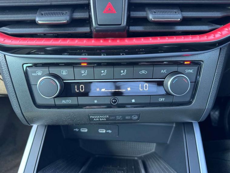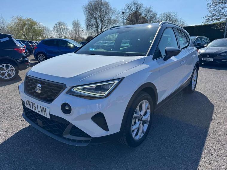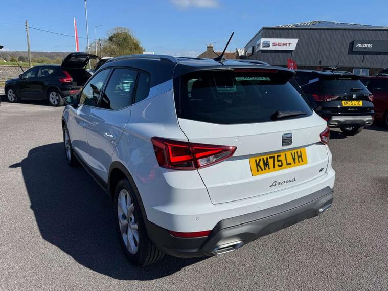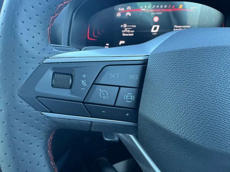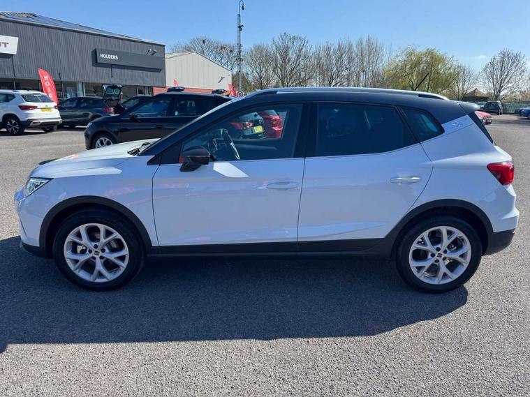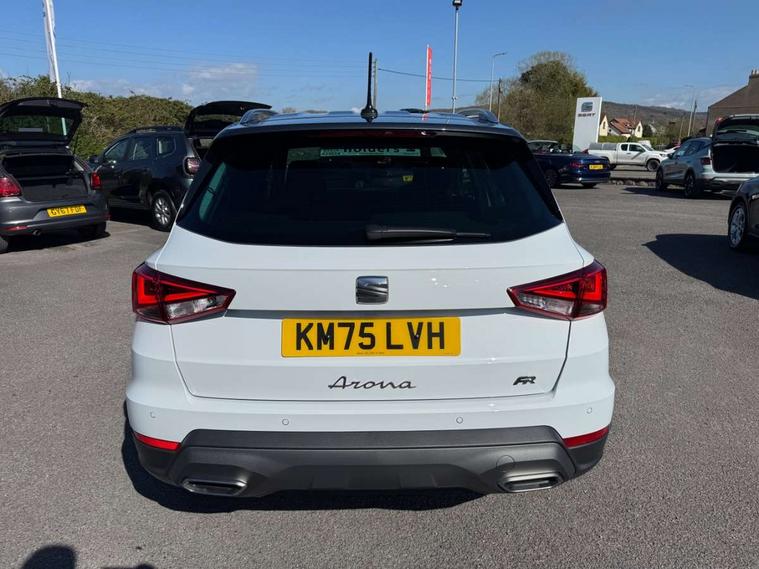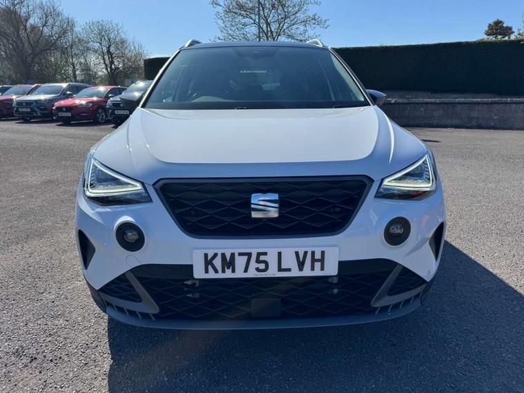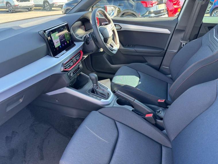 'Lights On' Reminder warning buzzer, 8" Digital cockpit, Digital clock, E-call, Electric speed sensitive power steering, Full link smartphone integration with mirror link, wireless apple carplay, Google android auto + USB Type C cable for apple and android devices, Lane keeping system, Low fuel warning light, Outside temperature display, RPM counter, SEAT Drive profile - Four different models normal-sport-eco-individual, steering response, throttle response and gear shifts mode, Trip computer, Wireless phone charger, 9.2" colour touchscreen with navigation system, voice control and USB port (type c), Bluetooth interface for hands free and audio streaming, DAB digital radio and AM/FM radio, Steering wheel mounted audio controls, Anti theft roof antenna, Auto dimming interior rear view mirror, Automatic activation of hazard warning lights, Body coloured bumpers, Body coloured door handle inserts, Chrome roof rails and window surrounds, Dark tinted rear windows, Electric front/rear windows, Electrically adjustable, heated and folding door mirrors, Front fog lights with cornering function and rear fog light, FULL LED automatic headlights with dynamic headlight range control, coming and leaving home, LED daytime running lights, LED rear tail lights and licence plate lights, Protective side mouldings, Rain sensing wipers, Rear side wing doors, Rear spoiler, Rear window wash/wipe, Roof colour door mirrors, Third brake light, Twin exhaust pipe styling hidden exhaust pipe, Visible VIN plate, 2 cupholders, 3 seat bench in 2nd row, 60/40 split folding rear seat, Aircare filter, Black interior roof, Cloth upholstery, Double boot floor, Driver sunvisor with covered mirror + card holder, Dual zone climate control, Front courtesy light with front reading lights, Gear shift indicator, Height adjustable front seats, Height/reach adjustable steering column, Illuminated air vent surrounds, Illuminated boot, Instrument lighting with brightness control, Interior ambient lighting, Interior light in footwell, central console and door panel, ISOFIX points in outer rear seats with top tether anchorage points, Passenger sunvisor with vanity mirror, Perforated flat bottomed leather steering wheel/gear knob/handbrake with red stitching and FR logo, Potentiometer, Single front passenger seat, Steering wheel mounted gearshift paddles, Two front and three rear height adjustable headrests, Interior chrome pack - Arona, Safe and driving pack (S) - Arona, 3 point seatbelts on all rear seats, ABS, Active front headrests, Child locks on rear doors, Driver and front passenger airbags with front passenger airbag de activation, front side and curtain airbags, Emergency Brake Assist (EBA) and front assist, Front and rear seatbelt reminder, Hill hold control, Multi-Collision braking, Tiredness recognition system, Traction control, Tyre pressure monitoring system, Alarm with back up horn with tow away protection, Deadlock, Electronic engine immobiliser, Locking wheel bolts, Remote central locking, Titan black dashboard, 17" Dynamic alloy wheels,