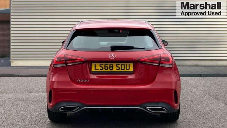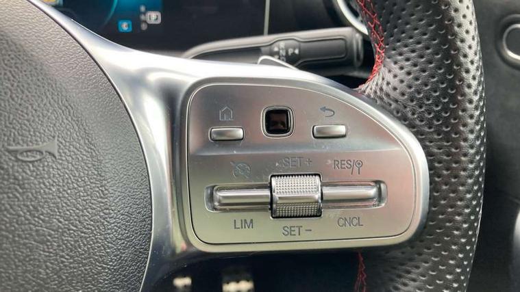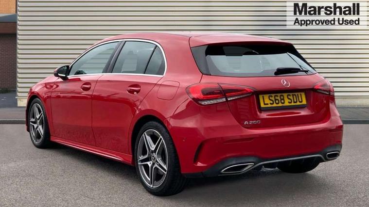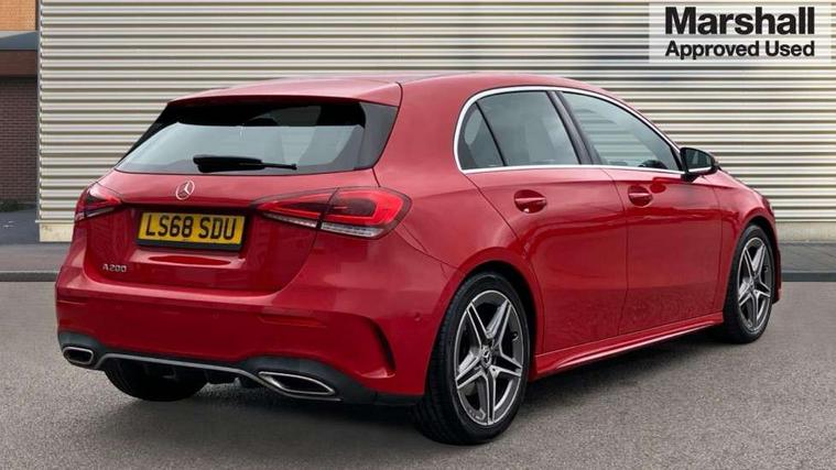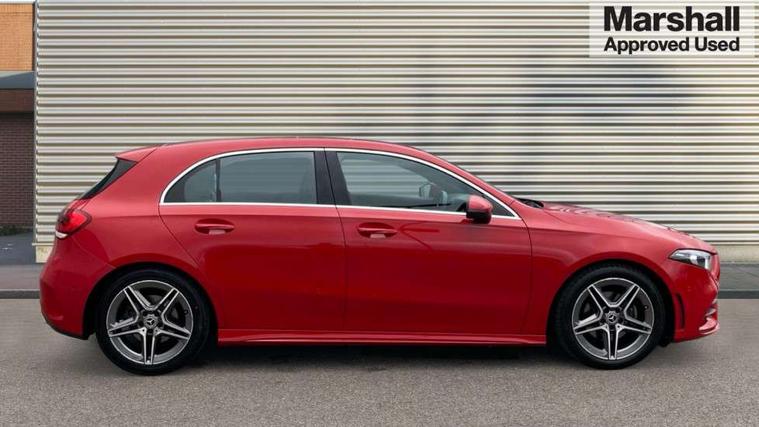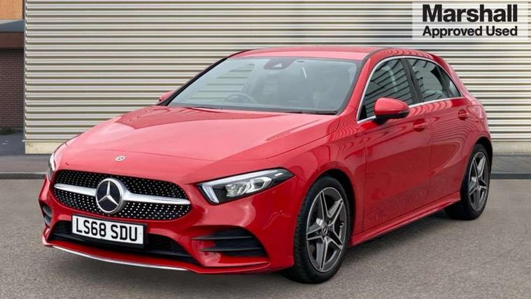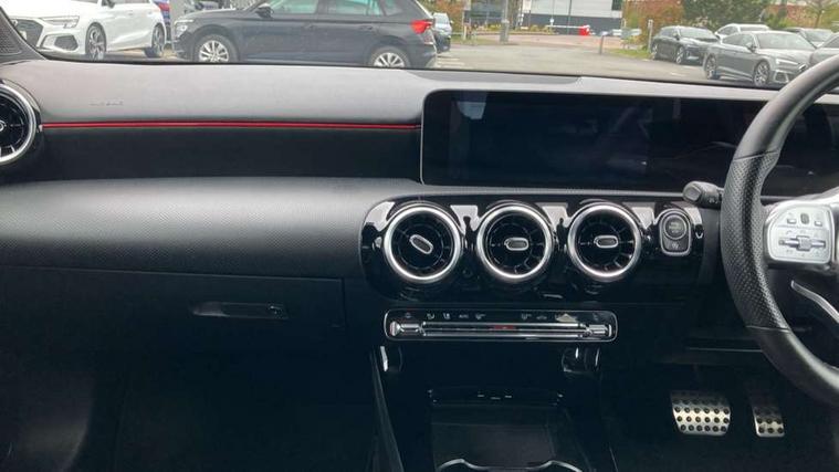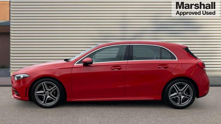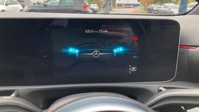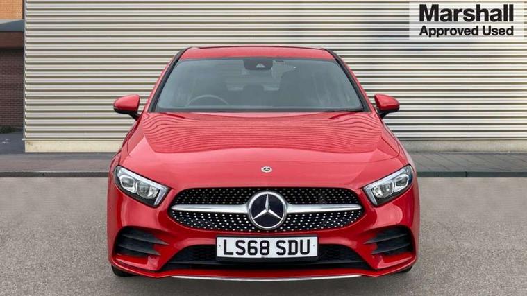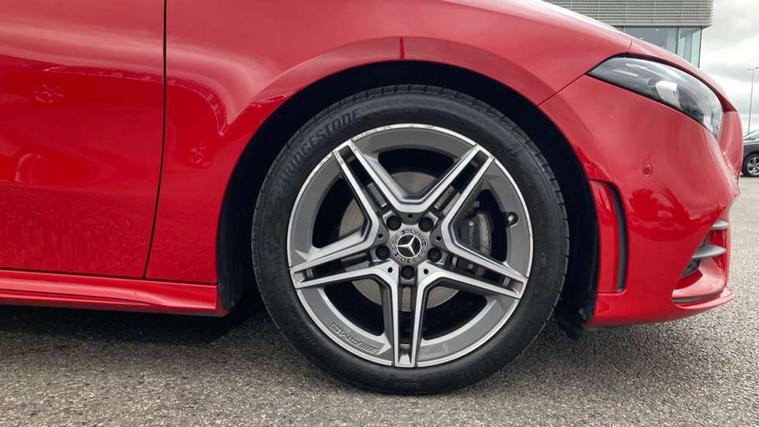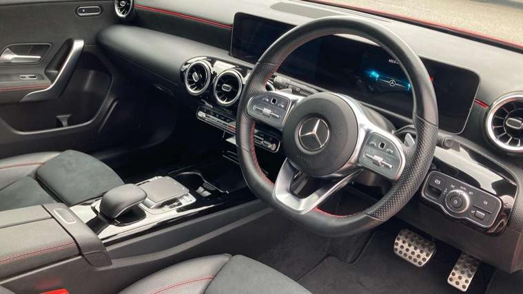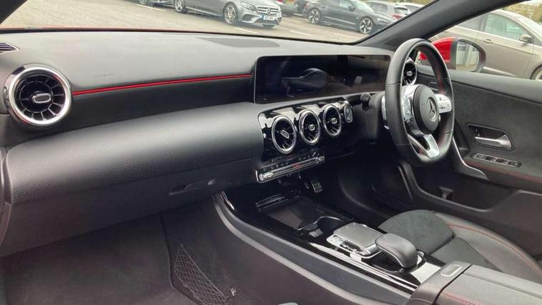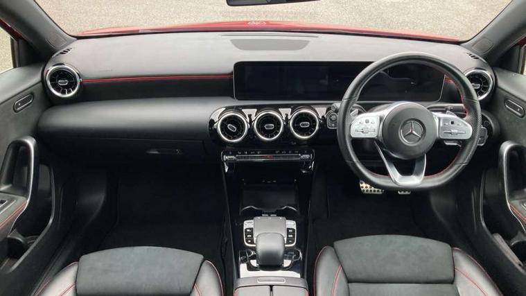 10.25" media display, 180 degree rear view camera with parking guidelines, 7" colour screen in instrument panel, Active lane keep assist, Active park assist with parktronic system including front and rear parking sensors, Attention assist, Brake pad wear indicator warning light, Cruise control + speed limiter, Direct steering, Direction indicators with lane change function, DYNAMIC SELECT with a choice of driving modes (ECO, Comfort, Sport, Sport+ and Individual), Fluid level warning indicator for fuel, oil, coolant and washer fluid, Lamp failure indicator, Mercedes me connect including emergency call system, accident recovery, breakdown and maintenance management, Outside temperature gauge, Radio aerial integrated into roof spoiler, Service indicator (ASSYST), Speed sensitive power steering, Stop/start system, Trip computer, Voice activation, Lowered sports suspension, DAB Digital radio, MBUX multimedia system with DAB digital radio and touchpad including satellite navigation, Adaptive brake lights, AMG front, rear apron and side skirts, Body colour bumpers, Body colour door handles, Body colour side skirt, Body coloured door mirrors, Chrome beltline trim, Diamond radiator grille with chrome pins and silver louvre + chrome insert, Electric adjustable and heated door mirrors with integrated LED side indicators, Electric front windows, Electric rear windows, Exhaust system - Twin trapezoidal tailpipes in polished stainless steel, Headlamp assist automatic headlamp activation, Heated glass rear windscreen + timer control, LED high performance headlamps with integrated LED daytime running lights, LED tail lamp, LED third brake light, Rain sensor windscreen wipers, Rear fog lights, Rear wiper, 1/3 to 2/3 split folding rear seats, 12V socket, 3 Spoke flat bottom leather multi function steering wheel with perforated leather in grip area, Air vents surround and cruciform nozzle in silver chrome, AMG floor mats with red stitching, Artico man-made leather/Microfibre Dinamica upholstery with red contrast stitching, Auto Mercedes-Benz child seat recognition sensor, Black roof lining, Brushed stainless steel sports pedals with rubber studs, Controller on centre console with chrome surround, Cup holder and stowage compartment lighting, Exit lights, Front centre armrest with storage compartment, Front door sills with Mercedes Benz lettering, Front doors with ambient and signal light, Front footwell lights, Front reading lamps, Front seat backs luggage nets, Front seat cushion length adjustment, Front signal exit lamp, Front vanity lights, Gearshift paddles on steering wheel, Handle recess/closing light, Heated front seats, Height/reach adjustable steering column, Illuminated glovebox, ISOFIX Child seat top tethers and anchor fixings, Load securing rings in luggage compartment, Luggage compartment cover, Manual height adjustable front seats, Oddments tray lighting, Rear head restraints, Rear Reading Lamps, Seat occupancy sensor for front passenger seat, Sports seats with integrated headrests, Storage compartment under load area floor, Sunvisors with illuminated vanity mirrors, Touchpad, Touchpad illumination, Twin front cupholders, Two zone thermotronic luxury automatic climate control, Mirror package - A Class, Seat comfort pack - A Class, 3 rear 3 point seatbelts, ABS with Brake Assist, Active bonnet, Active brake assist includes forward collision warning system with autonomous braking, Adaptive brake assist with hold function and hill start assist, Brake calipers with Mercedes-Benz lettering + perforated brake discs, Childproof locks manually operated for rear doors and electrically operated for rear power windows, Crash responsive emergency lighting, Driver and passenger head and side airbags, Drivers knee airbag, Dual stage driver/passenger airbags, Electronic parking brake, ESP curve dynamic assist, ESP with ASR, Front and rear seatbelt reminder, Tyre pressure monitoring system, Warning triangle and first aid kit, Window airbags, Alarm system/interior protection/immobiliser, Keyless Go, Remote central locking and crash sensor with emergency opening function, Chrome air vent surrounds, 18" AMG 5 twin spoke light alloy wheels in titanium grey with highsheen finish, Tirefit sealant kit,