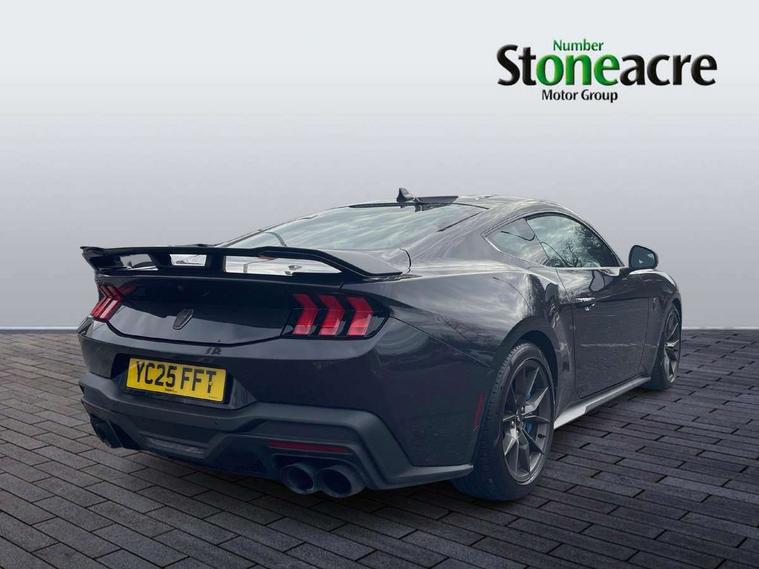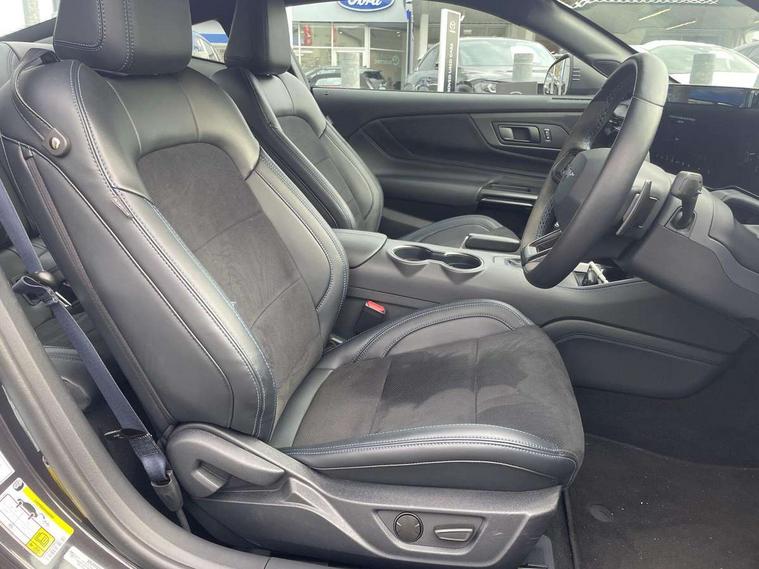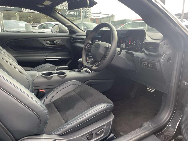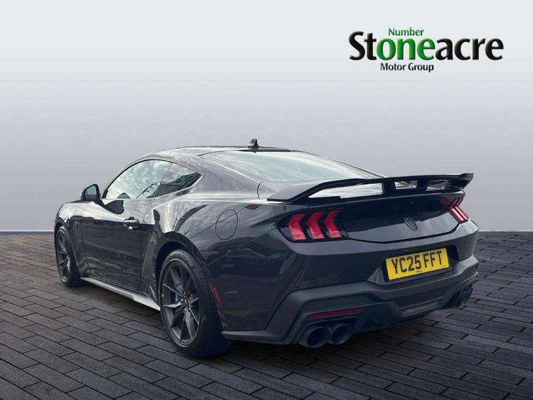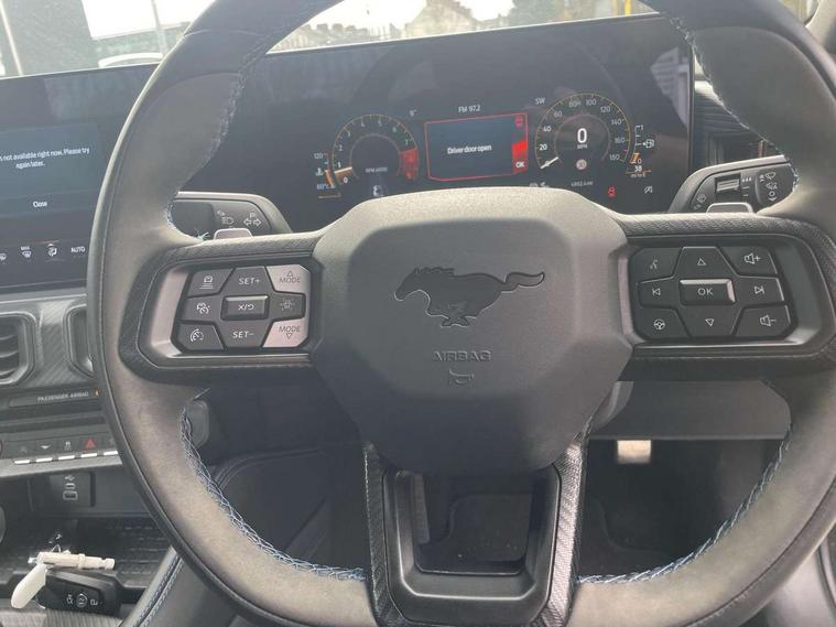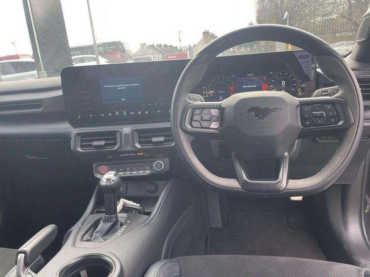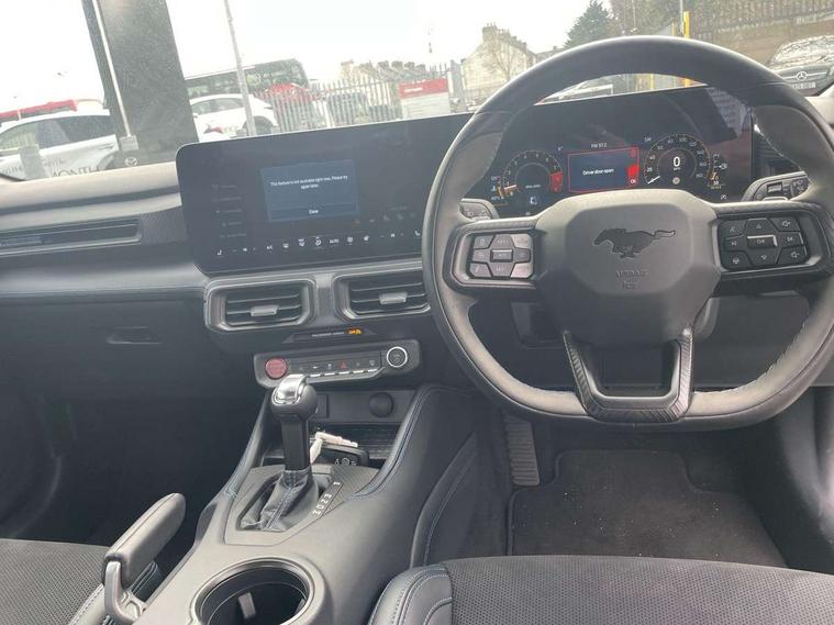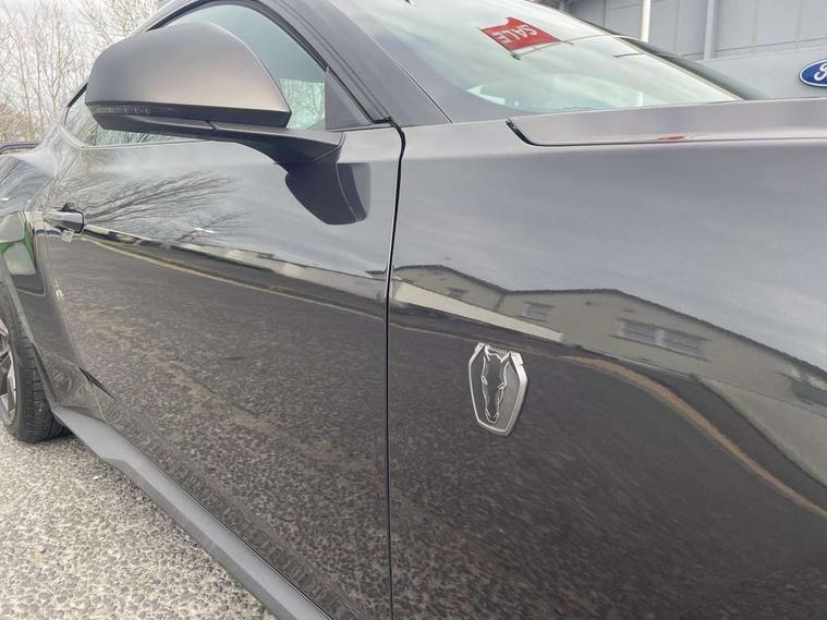 12" digital LCD instrument cluster, Adaptive cruise control with adjustable speed limiter, Apple car play/Android Auto, Bluetooth connectivity with voice control, Electric power steering, Emergency services call system, Ford pass connect embedded modem, Fully customisable 13.2" Touchscreen with wireless smartphone integration, FordPass connect & connected navigation, Lane keeping aid with lane keeping assist, Oil pressure gauge, Rear view camera with rear parking sensors, Selectable driving modes - normal, mymode, snow/wet, sport+, track and drag mode, Service interval indicator, SYNC Emergency Assistance, Track apps with accelerometer technology, Trip computer, Wireless charging and USB charging port, Limited slip differential, Magneride adaptive suspension system with unique Dark Horse calibration and pothole mitigation, Magneride damping system with pothole mitigation, Bang & Olufsen 12-speaker surround sound audio system, DAB Digital radio, USB connection, 3rd brake light, Active exhaust system with quad tailpipes, Auto dimming rear view mirror, Auto high beam, Automatic headlights, Automatic rain sensing wipers, Body colour bumpers, Body colour door mirrors, Bonnet air intake, Dark Horse front grille with dark pony badge, Dark Horse extrior badging and quad tailpipes in black, Dark Horse specific bodykit with exclusive aerodynamic enhancements, Dark Triple-LED headlamps with welcome / farewell animation, Electric front windows, LED daytime running lights, LED rear lights with sequential indicators and welcome / farewell animations, Power-folding door mirrors including blind spot informaion system and mustang logo projection puddle lamps, Rear boot, 6 way power adjustable front seats, Ambient lighting, Cup holders, Electronic automatic temperature control (EATC), Front headrests, Heated leather flat bottom steering wheel with blue stitching and Dark Horse badging, Illuminated entry system, Individually folding 2 rear seats in 2nd row, Isofix system on outer rear seats, Leather gearknob, Reach and rake adjustable leather steering wheel with integrated controls, Rear head restraints, Single front passenger seat, 4 seatbelts, ABS, Drivers knee airbag, Dual front airbags, Electronic Line Lock, Electronic Stability Control (ESC) with three settings, ESP, Front side airbags, Performance brake system with brembo 6 piston front callipers and electronic brake prefill, Pre-collision assist with AEB and pedestrian and cyclist detection, Side curtain airbags, Tyre pressure monitor, Ford key free system with power starter button and keyless entry, Immobiliser, Thatcham Cat.1 alarm, 19" Unique aluminium wheels, Tyre repair kit,