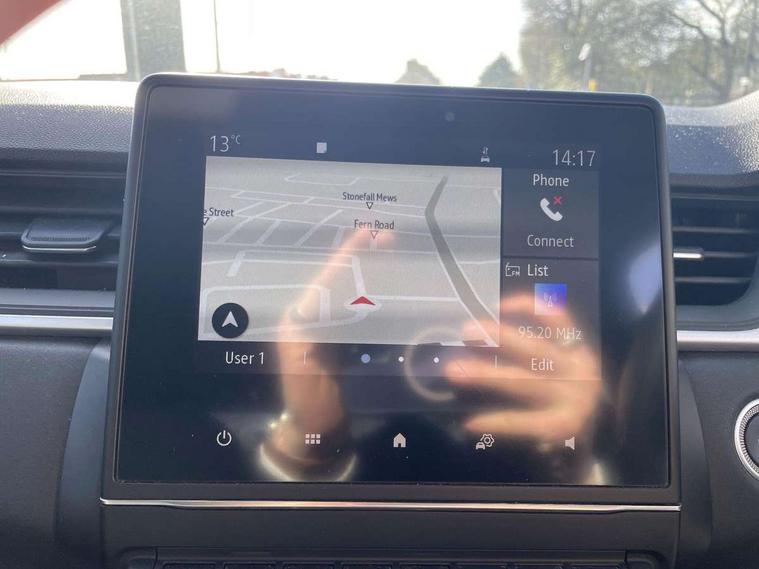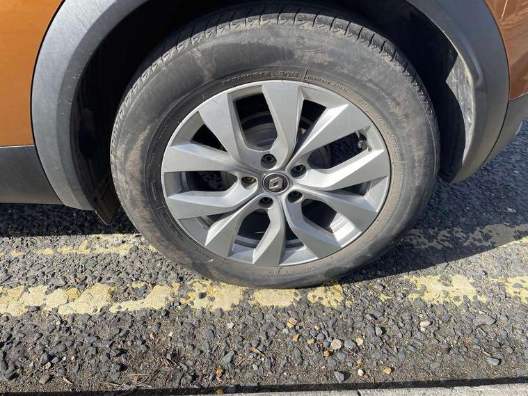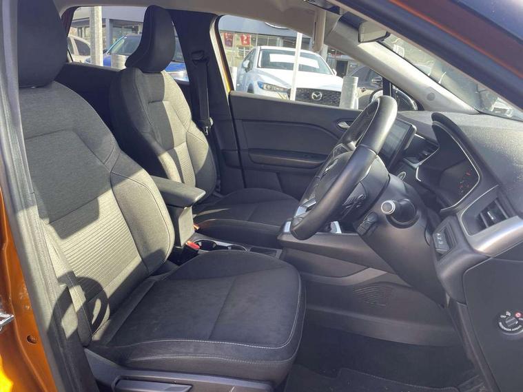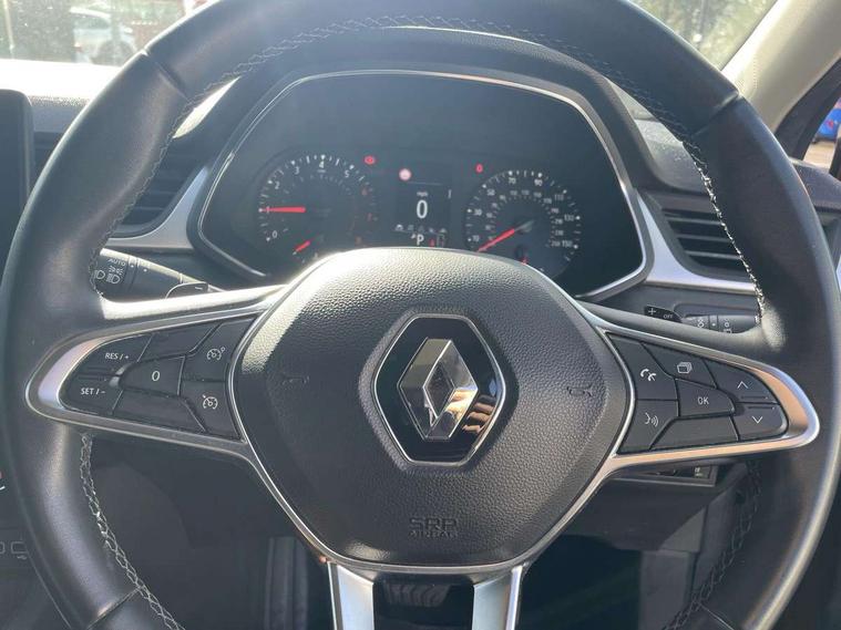 4.2" TFT Driver information display, Cruise control + speed limiter, eCall emergency call system, Eco mode, Gear change indicator, Lane departure warning system, Lane keep assist, Renault automatic emergency assist, Traffic sign recognition, Trip computer, Variable assistance power steering, EasyLink Nav 7" touchscreen, 4x20W amp, FM DAB, sound auditorium, 2xUSB, 1xJack, Bluetooth, smartphone integration plus, Apple carplay/Android auto, Automatic front wipers with rain sensors, Automatic headlights, Body colour door handles, Body coloured bumpers, Body coloured door mirrors, Electric adjustable/heated/folding door mirrors, Electric front windows + one touch + anti-pinch, Electric rear windows, Extra tinted glass in rear windows and tailgate, Full LED front and rear headlamps integrating daytime running lights at the front and rear, Gloss black side door protection with chrome effect, LED front fog lights, Rear fog lights, Rear wiper, Roof bars, Variable speed on front windscreen wipers, 12V Accessory socket, 3 rear headrests, 5.2L front glovebox, 60/40 split folding rear seat bench, Automatic climate control with one touch demist function, Centre console storage tray, Cloth upholstery, Front head restraints, Heating system with pollen filter, Height adjustable driver's seat, Height/reach adjust steering wheel, ISOFIX child seat fixing points on rear outermost seats, Middle console with armrest and storage, Rear air vents, Synthetic leather steering wheel, 3 rear seatbelts, ABS+EBA, AEBS, Distance warning alert, Driver and front passenger, side, head and curtain airbags, Driver height adjustable seat belt, Electric parking brake, Electronic stability control, Front and rear no seatbelt warning sound, Front dash warning indicator in case of heavy braking, Front driver and passenger side airbag deactivation, Hill start assist, Rear door and window child locking function for rear door, Tyre pressure warning light, Anti drill door locks and locking fuel cap, Deadlocking system, Hands free keycard with push button and start/stop function, RAID (Renault Anti-Intruder Device) automatic door locking, Remote central locking with thatcham approved immobiliser, Black soft touch dashboard with black gloss air vent surrounds,