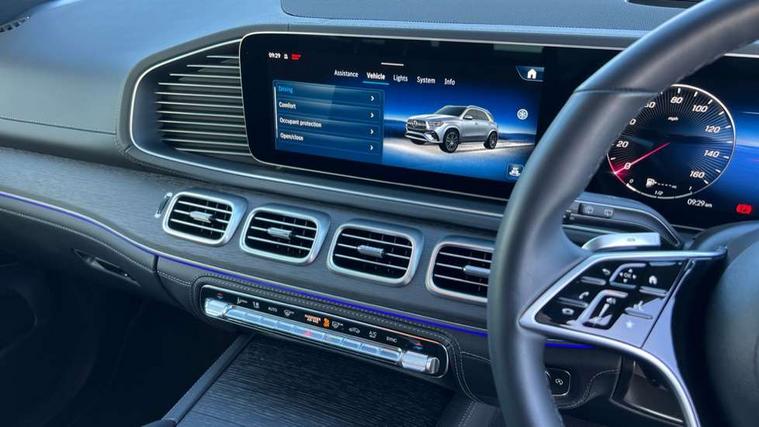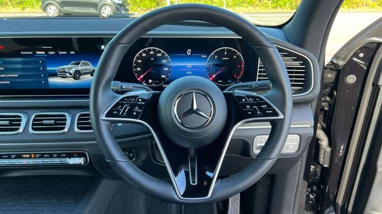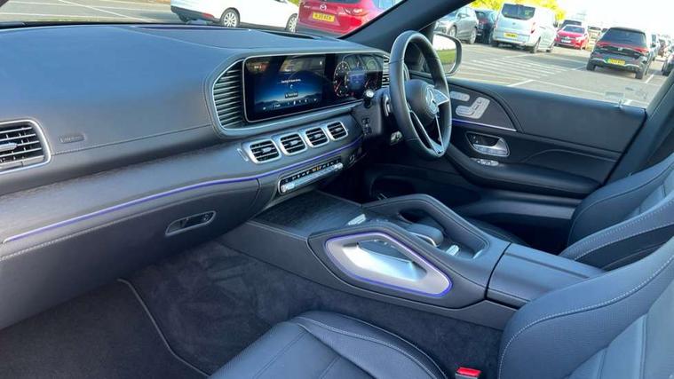 12.3 High resolution wide screen cockpit display with choice of three display styles Classic, Progressive or Sport and unique ambient lighting setting, 360 degree view camera, Active parking assist with PARKTRONIC, Attention assist, Brake wear warning display, Direct steer speed sensitive steering, DYNAMIC SELECT with a choice of driving modes (ECO, Comfort, Sport and Individual), Easy-pack tailgate - Powered opening/closing automatically, ECO start/stop function, Hard-disk navigation, Head up Display, MBUX augmented reality for navigation and live traffic, MBUX voice control activated by keywords "Hey Mercedes", Mercedes Benz emergency call system, Mercedes me connect - vehicle set up and monitoring, Outside temperature display, Pre-installation for digital key transfer, Remote boot release, Service indicator (ASSYST), Status display for rear seat belts in instrument cluster, Traffic sign assist, Trip computer in multifunction display showing current fuel consumption, Wireless charging, Wireless smartphone integration including Apple CarPlay and Android auto, 85 litre fuel tank, 9G TRONIC 9 speed automatic transmission, Airmatic air suspension with adaptive damping system, Diesel particulate filter (DPF), Mild Hybrid starter alternator, Additional USB connection, Bluetooth interface for hands free and audio streaming, Burmester surround sound system, DAB digital radio tuner, Front and rear USB ports, Sound personalisation, Adaptive brake lights, Aluminium look, illuminated running boards with rubber studs, AMG bodystyling front and rear aprons, Auto headlights, Automatically dimming rear view mirror, Body coloured bumpers, Electric windows with one touch opening/closing and obstruction sensors, Electrically adjustable, heated, folding exterior mirrors, Exterior styling - front bumper, radiator grille and front air intakes, Heat insulating dark tinted glass, Heated windscreen washers, LED 3rd brake light, LED daytime running light signet, LED rear lights, Magic vision control, Multibeam LED headlights with adaptive highbeam assist plus, Panoramic sliding sunroof, Radio aerial integrated into rear window, Rain sensing windscreen wipers, Rear side wing doors, Rear wiper, Roof rail system, Top surround of side windows in polished aluminium, Transparent Bonnet, Visible twin pipe exhaust system integrated into bumper, Waistline in polished aluminium, 3 spoke round bottomed multifunction steering wheel in nappa leather, 3rd row of seats for 2 people, 4 way adjustable front head restraints and 2 way rear head restraints, 40:20:40 split folding rear seats, Automatic child seat recognition sensor, Climatised front seats, Double sunvisor, Electric height/reach adjustable steering column, Electrically adjustable front seats with memory function, Front centre armrest with stowage compartment and illuminated grab handles, Gearshift paddles on steering wheel, Glove compartment - lockable, air conditioned and illuminated, Heated steering wheel, Illuminated front door sill with Mercedes Benz lettering, Interior lighting - 64 colour Ambient lighting, Leather upholstery, Luggage compartment cover, Luxury AVANTGARDE Interior, Luxury head restraints in front, Multicontour front seats with massage, Seat occupancy sensor for front passenger seat, Second row three seats, Single front passenger seat, Sunvisors with illuminated vanity mirrors, Temperature controlled cupholder, Thermotronic automatic 4 zone climate control, Touchpad, Velour floor mats, Air balance package - GLE, Energizing package - GLE, Exclusive Trim package - GLE, Keyless go comfort package - GLE, Active bonnet, Airbags - driver and front passenger, front sidebag, pelvis bag and window airbags, Anti-lock braking system (ABS), Black seat belts, Childproof locks manually operated for rear doors and electrically operated for rear power windows, Drivers knee airbag, Electronic parking brake, Electronic Stability Programme (ESP), ISOFIX child seat points with automatic child seat recognition, Perforated front brake discs and brake calipers with Mercedes-Benz lettering, Pre safe impulse side, Three point rear seat belts, Tyre pressure monitoring system, Warning triangle and first aid kit, Alarm system/interior protection/immobiliser, Central locking with interior switch, automatic locking and crash sensor with emergency opening function, Chrome surround in electric key, Guard 360 degree vehicle protection plus, Dashboard and door beltlines in ARTICO man made leather with contrast top stitching, Trim - Centre console, anthracite open pore oak wood trim, TIREFIT with tyre inflation compressor,