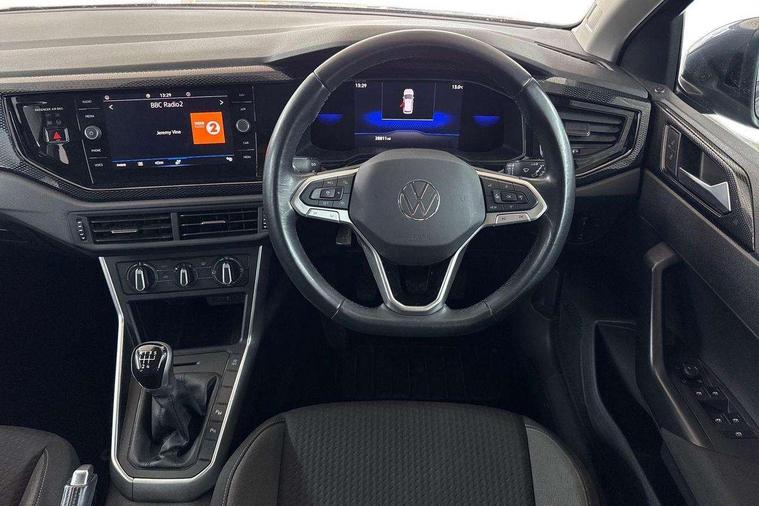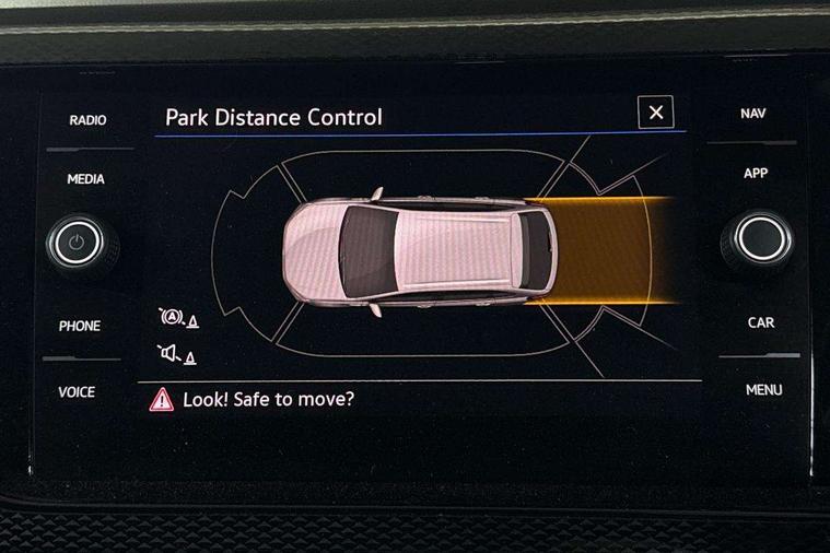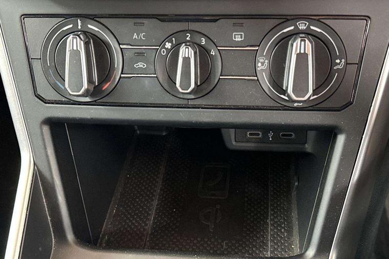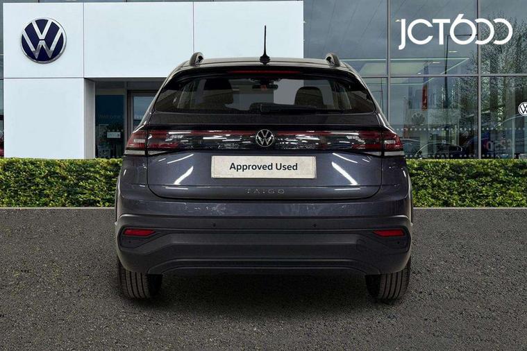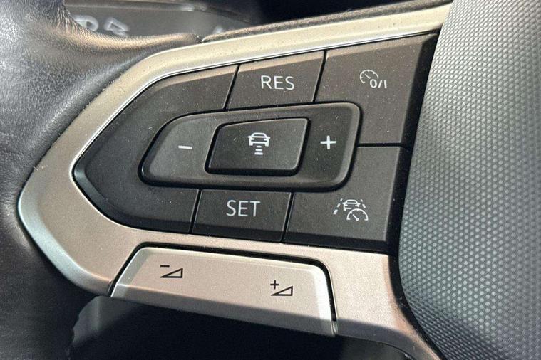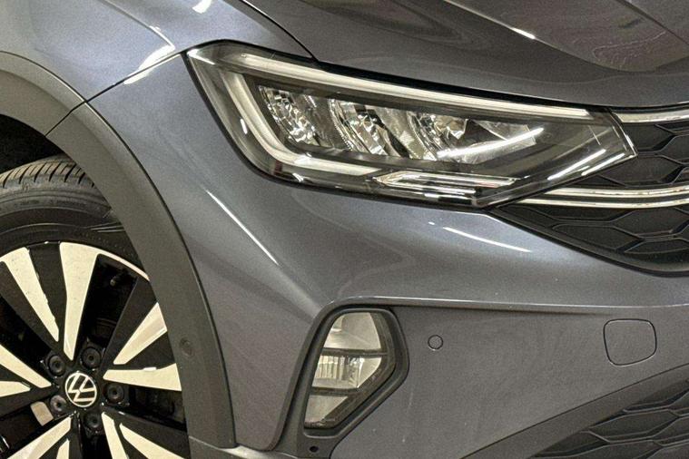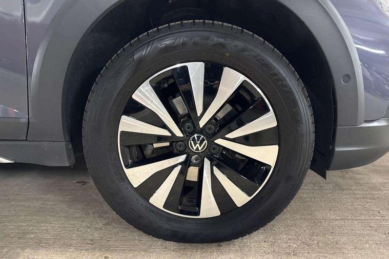 App-Connect including App-Connect Wireless, Driver alert system, e-Call (emergency call), Power Steering, Travel assist including emergency assist, Washer fluid level indicator, Wireless Charging including Bluetooth, Start-stop system with battery regeneration (recuperation - energy recovery during braking), Digital radio reception (DAB+), Diversity antenna for FM reception, WeConnect plus, Ambient lighting with logo projection, Aspherical driver's exterior mirror, Auto headlights, Body coloured bumpers, Body coloured exterior mirror housings and door handles, Electric windows, External USB type C socket and charging sockets, Front fog lamps with cornering function, Headlight range control, Heat insulating glass windscreen, LED headlamps, LED rear combination lamp, LED third brake light, Left convex exterior mirror, Power folding adjustable/heated exterior mirrors and front passenger exterior mirror lowering function, Rear fog light on one side, reversing light on both sides, Rear side wing doors, Rear wash/wipe with intermittent wipe setting, 'Slash/ Austin' Cloth upholstery, 12V socket in centre console, 2 front reading lights, 3 rear head restraints, 3 seat bench in 2nd row, Black carpets, Child seat anchor for child seat system i-Size, 2x top tether and child seat anchor in front on front passenger side, Door and side trim panels in titan black, Driver and front passenger seat height adjustment, Front centre armrest, Handbrake lever handle in leather, Height and reach adjustable steering wheel, Leather trimmed gear knob, Leather wrapped multifunction steering wheel, Luggage compartment floor, Luggage compartment light, Lumbar support for driver's and front passengers seat, Seat covers in titanium black, Single front passenger seat, Split folding backrest with centre armrest and unsplit rear seat bench, Storage compartment under front seats, Sun visors with illuminated vanity mirrors, Chrome Package - Taigo, Drivers assistance pack - Taigo, Light and Sight pack including High beam assist - Taigo, 2 x 3-point seatbelts/outer rear seats with ECE label, 3-point seat belts in front with pretensioner and height adjustment, 3-point seatbelt for centre rear seat, Driver and front passenger airbags with front passenger airbag de-activation, front side and curtain airbags, Driver and front passenger safety-optimised head restraints, Electronic stability control, Extended and predictive pedestrian/ cyclist protection, Front and rear disc brakes, Front curtain and side airbags with center airbag, Hill start assist, Manual rear child locks, Single tone horn, Tyre pressure loss indicator, Anti-theft alarm system with interior monitoring, backup horn, and towing protection, Anti-theft wheel bolts, Lava stone black gloss/matt decorative inserts in dash and front door panels, Low rolling resistance tyres,
