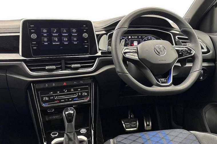 10.25" Digital cockpit pro, Advanced driver attention and drowsiness monitor, Emergency call service, Lane keeping system Lane Assist, Mobile phone interface, Modified key software - reduce switch off time for key status change to Long no motion, Online services, Park assist including front and rear parking sensors, Service interval indicator, Tailgate/trunk lid release from outside, Think blue trainer driver tips and journey analysis, Warning sound and light for front seatbelts unfastened, Wireless app connect, Battery regeneration during braking, Four wheel drive, Start/stop function with battery regeneration, DAB Digital radio, Diversity antenna for FM reception, Music playback - MP3, WMA and AAC files, Premium USB cable in choice of either Apple or Android smartphone compatibility, SD card slot, Simultaneous pairing of 2 compatible mobile devices, Title and cover art display, We Connect and We Connect Plus functionality, Auto dimming interior rear view mirror, Automatic hazard lights activation under emergency braking, Automatic headlight control with LED separate daytime running lights with coming/leaving home function, Body colour door handles, Electrically adjustable and heated door mirrors, Extended roof spoiler, Exterior mirror housings painted, Exterior mirrors aspherical on driver side, convex on front passenger side, External USB type C socket and charging sockets, Front windscreen wiper with intermittent wipe and 4 position delay, Heated rear window, LED 3rd brake light, LED rear combination lamps, LED rear number plate lights, Power windows with comfort operation and circuit breaker, Privacy glass for rear side windows and rear window, R-Line design body coloured bumpers, Rain sensor, Rear fog light on one side and reversing lights on both sides, Rear side wing doors, Rear wash/wipe with intermittent wipe setting, Remote electrically foldable door mirrors, puddle lights and reverse activated passenger's door mirror, 12V power socket in centre console, 3 rear head restraints, 3 seat bench in 2nd row, 4 load lashing points in luggage compartment, Air care climatronic air conditoning system with active combination filter and 2-zone temperature control, Ambient lighting - 10 colour (blue), Black roof lining, Chrome plated decorative trims, Chrome plated radiator grille inserts, air vent surrounds and light switch surrounds, Door and side trim panel with leatherette insert, Drawer under drivers seat, Front + rear carpet mats, Front centre armrest, Front cupholders x 2, Front footwell illumination, Front scuff plates with R logo in door apertures, Front seat back storage pockets, Front sport seats, Glove compartment door with light, Heated leather wrapped multi function sports steering wheel with tiptronic, Instrument lighting, white adjustable panel illumination, Interior light delay, Isofix child seat preparation, Leather gearshift handle, LED interior light with switch off delay/dimmer and 2 front/rear LED reading lights, Load-through provision with cup holder when folded down ('Unsplit rear seat bench, split folding backrest, with centre armrest), Luggage compartment lighting, Non-folding front passenger seat backrest, R-logo stitching in floor mats, Single front passenger seat, Stainless steel pedals, Storage compartment in left and right luggage area, Storage compartment in rear doors, Storage compartments in driver and front passenger doors, Sunvisors with illuminated vanity mirrors, Variable boot floor, height adjustable and removable, Driver assistance pack without proactive passenger protection - T-Roc, R styling pack - T-Roc, 3 point height adj front seatbelts + pretensioners, 3 point seatbelts in outer rear with ECE label, ABS, Child locks on rear doors, City emergency braking and pedestrian monitoring, Driver and front passenger airbag with front passenger airbag deactivation, Driver and front passenger safety-optimised head restraints, Drivers seatbelt reminder, Electronic parking brake, Electronic Stability Control (ESC) inc EDL (Electronic Differential Lock) and ASR (Traction Control), Front and rear passengers curtain airbag system including front side airbags, Hill descent control, Hill start assist, Predictive pedestrian protection, Rear disc brakes, Two tone horn, Tyre pressure loss indicator, Volkswagen roadside assistance, Trims for alloy wheels,