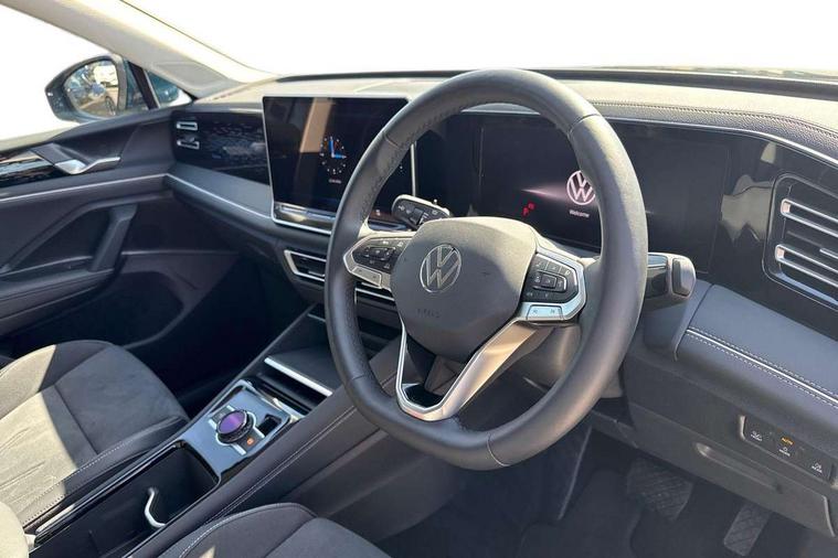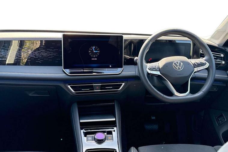 Adaptive cruise control (ACC), Advanced driver attention and drowsiness monitor, Bluetooth mobile phone interface, Car2X technology, Comfort drive travel assist, lane keeping system, lane assist and emergency assist, Digital Cockpit Pro - 10.25" high resolution dash display screen with customisable menus and information, Dynamic road sign display, E-Sim card for online connectivity, eCall emergency call service, Front Assist - Autonomous emergency braking with pedestrian and cyclist monitoring, Lane change system, Side assist, Rear traffic alert and Exit warning system, Multifunction front facing camera, Oncoming vehicle braking when turning including swerve support, Park assist pro with park distance control (Remote park assist), Power assisted steering with speed sensitive, Start/stop system with regenerative braking, Warning signal and warning light for front and rear seatbelts not fastened, Wireless App-Connect, Adaptive chassis control DCC pro includes driving mode selection, Charging cable Mode 3 Type 2 / 3 (16A), Front shock absorption, Front wheel drive, Rear shock absorption, Digital radio reception (DAB), Diversity antenna for FM reception, Air intake with Chrome trim, Ambient lighting with logo projection, Auto dimming interior rear view mirror, Automatic headlight control system, Body colored bumpers in R-Line style, Body coloured door handles, Body-coloured exterior mirror housings, Chrome moldings on the side windows, Coming/leaving home lighting function, Heat insulating glass in side and rear windows, Heated rear window, Heated windscreen washer jets, High level 3rd brake light, Illuminated door handle recesses, Illuminated lightline between headlamps, Laminated safety glass from B-pillar backwards 90% tinted, Laminated safety glass windshield, Rain sensor windscreen wipers, Rear fog light on one side, reversing light on both sides, Rear side wing doors, Rear wiper, Silver roof rails, 12V outlet in center console rear and in luggage compartment, 12V socket in centre console, 3 bench rear seats in 2nd row, Air care climatronic 3 zone air conditioning system with rear air conditioning control panel, Carpet mats, front and rear, Centre console with illuminated storage compartment with sliding cover and two drinks holders, Ceramique headlining, Chrome elements on the mirror switch and power window switches and door pulls, Door and side trim panel with leatherette insert, Door sill protectors, Front centre armrest, Interior ambient lighting with 30 colour options, ISOFIX anchors for child seats on outer rear seats and front passenger seat compatible with i-Size, Mechanical rear seat release, Power adjustable lumbar support in front, Rear bench seat, split folding, longitudinally movable and folding with load-through hatch and centre armrest, Safety optimised front head restraints, Single front passenger seat, Sports comfort seats in front, Sun visors with illuminated vanity mirrors, Three rear head restraints, Variable luggage compartment floor, Comfort package incl. Memory feature for Park assist and Safelock - Tiguan, Driver assistance package - Tiguan, 3 point seat belt for centre rear seats, 3 Point seat belts in front with pretensioners, 3 point seatbelts in outer rear with ECE label, Driver and front passenger airbag with front passenger airbag deactivation, Electronic parking brake with auto hold, Front and rear curtain airbags, Front and rear side airbags, Front centre airbag, Front disc brakes, Hill start assist, Manual child proof rear door locks, Rear disc brakes, Two tone horn, Warning triangle, Anti theft wheel bolts, Decorative inserts Cross in dash and front door panels, Interior door handle in matte chrome, Soul instrument panel, Tool kit for tyre mobility set, Tyre mobility kit including compressor and sealing foam,