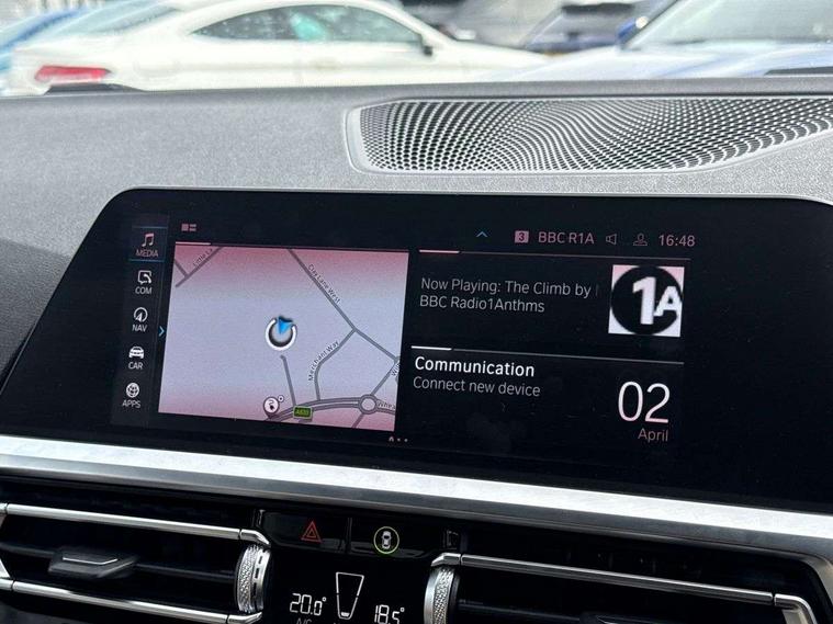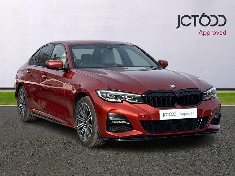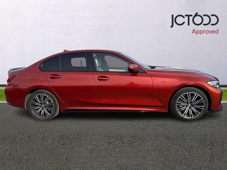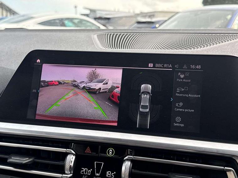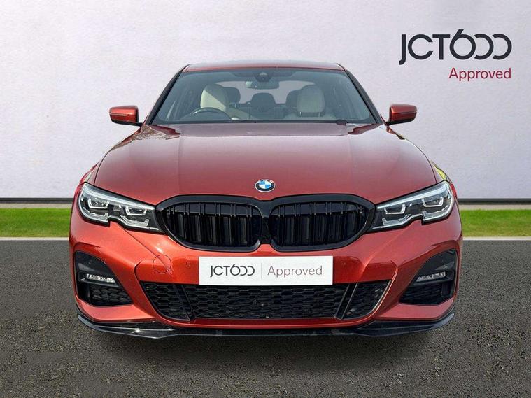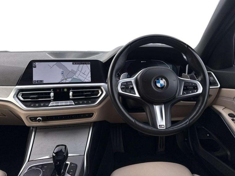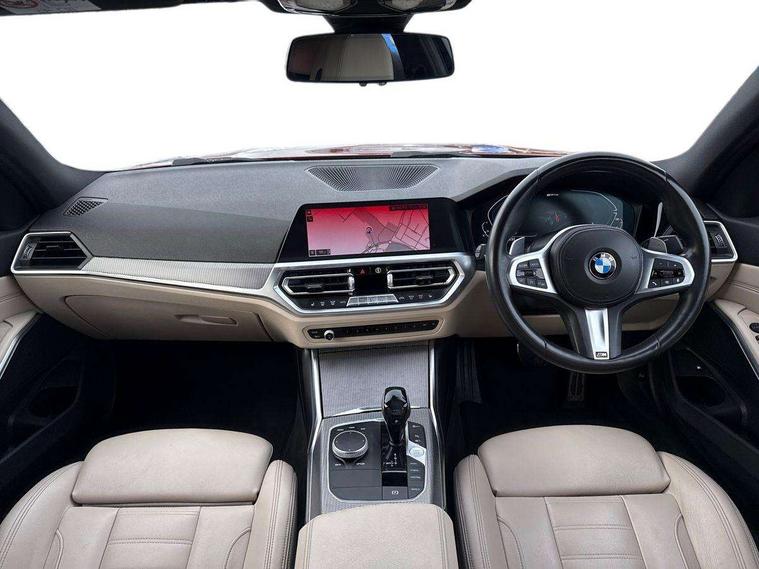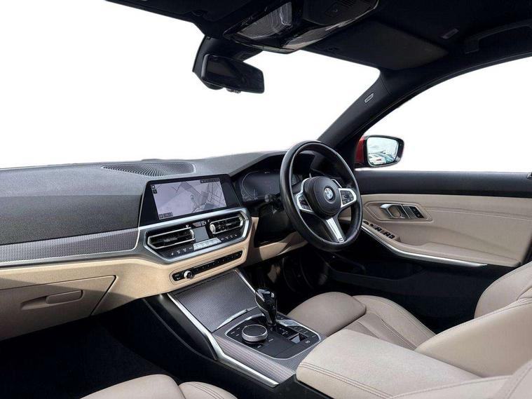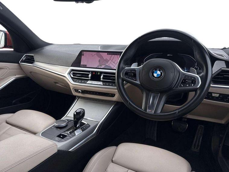 Active guard plus, Attentiveness assist, Auto start-stop, BMW Live Cockpit Professional Nav with 12.3" instrument display + 10.25" display, Intelligent Voice Assist, BMW OS 7, HDD, 2USB, 4G LTE connect, BMW service history, BMW Teleservices, Brake pad wear indicator in front and rear, Check Control warning system for monitoring of lights and door/luggage compartment open warning, Condition based service, Electric power steering, Electric power steering with Servotronic steering optimised at all speed ranges, iDrive controller on centre console, Instrument cluster with speedometer with mph readout, tachometer, fuel gauge and oil temperature gauge, Integrated owners handbook, Oil sensor for level and grade, warning by check control system, On board computer - average speed+fuel consumption, service interval, clock/date, odometer/trip meter, outside temperature display and ice warning, Optimum shift indicator, Personal Profile - automatic lock when driving away selectable, Balanced 50/50 weight distribution, Battery cut-out switch, Drive performance control - ECO PRO, comfort and sport modes, Petrol Particulate Filter, Sport automatic transmission with steering-wheel mounted gearshift paddles and launch control, Stroke dependent dampers, DAB tuner, Electronic service booklet, Acoustic glazing, Automatic headlight beam throw control with load dependent regulating reaction, dynamic compensation of braking dive and acceleration squat, Black roof mouldings, Body colour door handles, Body colour fuel filler flap, Body colour mirror caps, Dynamic brake lights, Electric windows - front and rear, with open/close fingertip control, anti-trap facility and comfort closing, Exhaust tailpipe - split left and right, Exterior mirrors - electrically folding with anti-dazzle, Fading support, Front and rear bumper system with replaceable deformation elements, Front black door sill finishers with BMW designation, Green tinted heat protection glazing, High gloss shadow line exterior trim, Interior rear view electrochromatic mirror with automatic anti dazzle function, LED daytime running lights, LED front fog lights, Lightweight engineering, M designation on front side panels, left and right, Matt black exterior B pillar, Model designation on right side of tailgate, Rain sensor with automatic headlight activation, Shark fin antenna, Two part LED tailights in L-shape with components in smoked glass, brake light, LED turn indicator and rear fog light, Visible VIN plate, Welcome lights in interior and door handle area, Windscreen wipers with integrated washing jets, 12V power socket in front storage compartment, 2 front cupholder in centre console with clamping elements and matt black inlay, 3 rear seats with non folding headrests with 3 point seat belts, 3 zone automatic air conditioning, 4 pieces lashing eyelets in luggage compartment, 40:20:40 split folding rear seat with loading system, Ambient lighting with welcome carpet light, Anthracite headlining, Armrest integrated in front and rear door trim + front centre console armrest, Centred top Luggage compartment lights, Four grab handles integrated in roof lining, Front and rear door exit lighting (left / right), Front and rear door pockets, Front and rear reading lights, Front and rear velour floor mats, Front head restraints, Front sport seats, Heated driver and front passenger seats, Height adjustable mechanically and infinitely variable steering column, Illuminated armrest storage compartment, Illuminated glove compartment with separate small compartment, Interior lighting - front centre over interior mirror with soft light, rear centre and front and rear footwell lighting, M Sport multifunction leather steering wheel, Make-up mirror lights, Rear centre armrest with 2 cupholders, Rear centre console with storage compartment and ventilation grille, Sunvisors with vanity mirrors and ticket pocket, Toolkit located in luggage compartment, Connected pack professional - 3 Series Saloon/Touring, M Aerodynamics pack - 3 Series Saloon/Touring, 2 tone horn, BMW emergency call, Brake energy regeneration, Braking pre-tensioning, Child proof locking system in rear door, Child seat ISOFIX attachment rear outer seats, Coasting in idle in ECO PRO mode, Crash sensor activating of airbags, Unlocking doors, hazard warning lights, fuel cut off, interior lighting+activation of safety battery terminal clamp, Driver and front passenger side airbags, integrated in the door side seat backrest bolsters for all seat variants, Driver/Front Passenger airbags, Dry braking, Dynamic brake control, Dynamic stability control + (DSC+) - Anti-lock Braking System (ABS) with brake assist and cornering brake control + Automatic Stability Control (ASC), Dynamic Traction Control - DTC, Electromechanical parking brake including automatic hold function and automatic release of the parking brake when pulling away, Electronic differential lock control (EDLC), Front passenger manual airbag deactivation, Head airbags for all 4 outer seats, Hill start assist, Seat belt security check for driver and front passenger, Side impact protection, Three 3 point seat belts on all seats including front belt stopper, pyrotechnic belt tensioners and belt force limiters, Tyre pressure monitoring with three level warning strategy, Ventilated front and rear disc brakes, Warning triangle and first aid kit, Alarm system (Thatcham 1) with remote control and electronic engine immobiliser, Central locking switch for all doors, fuel filler cap and luggage compartment, Remote control with integrated key one button open/close vehicle and windows, sole opening of the luggage compartment lid and panic mode, Start/stop button with Comfort Go keyless engine start and auto Start/stop deactivation button, Vehicle key with M specific designation, Reduced rolling resistance tyres,