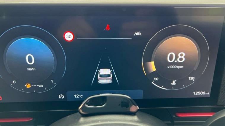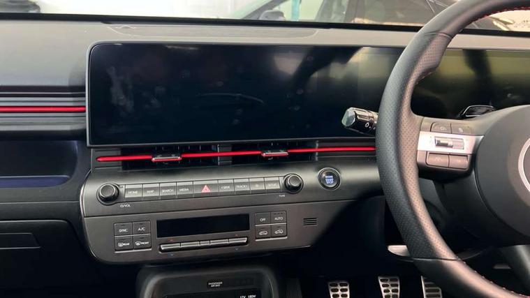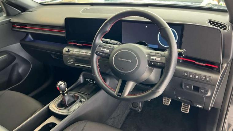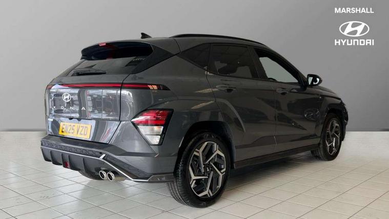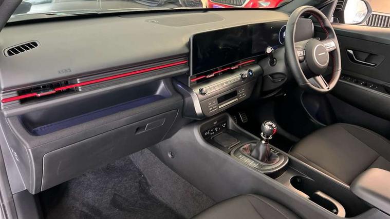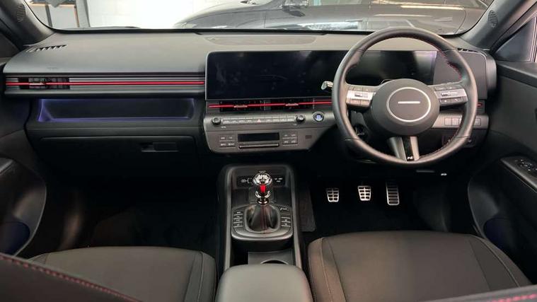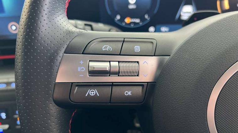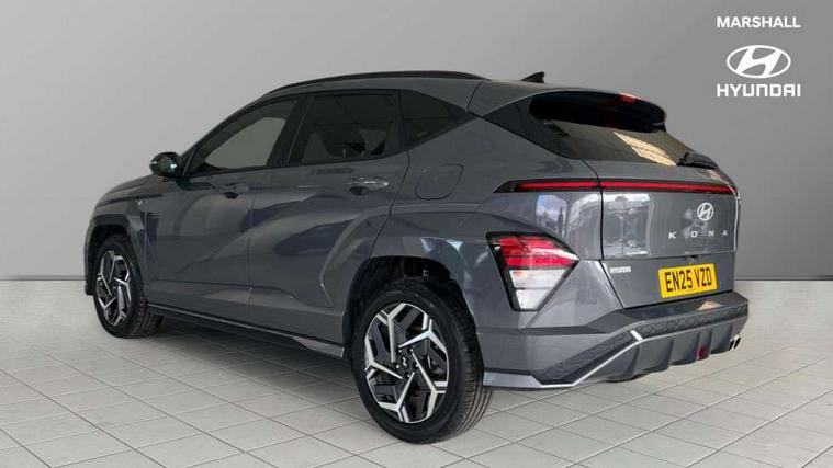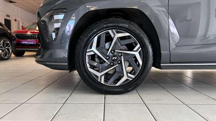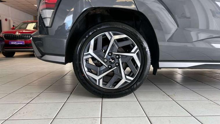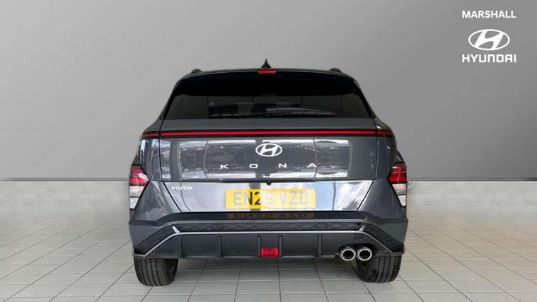 12.3" touchscreen centre console display satellite navigation with bluelink, live services and mapcare, Bluetooth connectivity with voice recognition, Cruise control, Driver status monitor (DSM), Driver supervision instrument cluster with 12.3" LCD display, eCall emergency call system, Feature on demand - Enabled, Forward collision avoidance assist (FCA 1.5) - Car, pededstrian, cycle and junction turning, Front parking sensor, Height adjustable power tailgate, Intelligent speed limit assist, Lane follow assist, Lane keep assist, Leading vehicle departure alert (LVDA), Parking system with rear camera and guidance system, PAS, Rear parking sensor, Roadside assistance, Wireless phone charging pad, Wireless Smartphone Integration includes Apple CarPlay and Android auto, 2 front USB C and 2 rear USB C charging points, DAB Digital radio, Speakers - Front, rear and tweeters, Steering wheel audio, phone and cruise controls, Auto dimming rear view mirror, Automatic headlights with dusk sensor, Automatic windscreen wipers with rain sensor, Body colour exterior door handles, Body coloured wheel arch inserts, Door mirror LED indicator lights, Electric front windows with anti-trap mechanism and one touch control, Electric rear windows, Electrically adjustable and heated door mirrors, Full LED MFR headlights, Gloss black door mirrors, LED daytime running lights, LED upper and lower rear lights, Power folding door mirrors, Privacy glass - Rear windows and tailgate, Rear roof spoiler with integrated LED brake light, Rear side wing doors, Rear wiper, Roof rails, Solar glass with front door glass and windscreen, Tinted glass in front and rear doors, Windscreen auto defog function, 12V power outlet in front console, 2 zone climate control, 3 seat bench in 2nd row, 40/20/40 split folding rear seat, Adjustable head restraints, Aluminium pedals, Ambient lighting, Driver and passenger front seat pockets, Driver's seat lumbar support, Driver/passenger manual seat height adjustment, Driver/passenger sunvisors and illuminated vanity mirrors, Floor mats, Heated front seats, Heated rear seats, Heated steering wheel, Height/reach adjustable steering column, Leather wrapped steering wheel and gear knob, LED centre interior light, LED front interior light, Luggage compartment LED lighting, Luggage shelf, Metal paint effect interior door handles, N Line cloth upholstery, Rear centre armrest with cupholders, Single front passenger seat, Vertical adjustment rear head restraints, N Line exterior design pack - Kona, Trailer wiring package - Kona, Airbag - front, front side, curtain and centre front airbag, Anti-lock brake system (ABS), Childproof rear door locks, Downhill brake control, Electric parking brake, Electronic stability control, Fixed 3 point for second row centre passenger seatbelt, Hill start assist control (HAC), Rear seat alert, Tyre pressure monitoring system, Alarm/immobiliser, Rear occupant alert, Remote central locking, Smart key with keyless entry and start/stop button, Five year annual vehicle health checks, Temporary mobility kit (TMK),