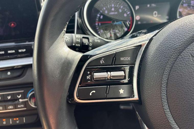 10.25" touchscreen satellite navigation, 4.2" supervision colour cluster display, Apple car play/Android Auto with voice control, Bluetooth with Voice Recognition & Music Streaming, Drive mode select (Normal and Sport), Driver attention warning + (DAW) with leading vehicle departure warning, Emergency call service, Emergency stop signalling system, Forward Collision-Avoidance Assist (FCA) - City/Pedestrian/Cyclist, Kia connect UVO, Lane Following Assist (LFA), Lane keep assist, Manual speed limit assist, Motor driven power steering, Rear parking sensor, Reversing camera system with dynamic guidelines (Integrated into centre fascia screen), Smart cruise control with stop/go functionality, Trip computer, Intelligent Stop and Go, 6 speaker audio system, DAB Radio with MP3, Illuminated USB ports, Steering wheel mounted controls, USB Fast Charger in Front Centre Console, USB type A port, All-round Electric Windows with Front Auto Up & Down Function, Auto dimming rear view mirror, Automatic defog system, Automatic headlights control, Body colour bumpers, Body colour door mirrors, Body colour exterior door handles, Body colour rear roof spoiler, Chrome window surround, Electric adjustable/heated/folding door mirrors with LED Indicators, Heated rear window with timer, High beam assist, High gloss black and white chrome coated radiator grille, LED daytime running lights, LED front fog lights, LED Headlights, LED High-mounted Brake Light, LED rear combination lights, Privacy glass (rear side windows and tailgate), Rain sensing front wipers, Rear side wing doors, Rear wash/wipe, Roof rails, Tinted glass, Wide view drivers door mirror, Windscreen Washer Level Warning, 1 x Front 12V socket, 12V power socket in luggage compartment, 3 seat bench in 2nd row, 3 x passenger assist grips, 60/40 split folding rear seat, All-round height adjustable headrests, Centre console storage box/armrest, Cloth upholstery with faux leather bolsters, Cupholders in centre console, Cupholders in rear armrest, Dash illumination dimmer switch, Door courtesy lamps, Driver & Front Passenger Sunvisors with Vanity Mirror Illumination & Ticket Holder, Driver + front passenger electric lumbar support, Driver's seat height adjuster, Dual Height Luggage Area Floor, Dual zone automatic air conditioning, Faux leather door centre trim, Front and rear door storage, Front cabin map light with sunglasses case, Front Passenger Seat Height Adjuster, Front seat back pockets, Heated front seats, Heated steering wheel, Interior door lock/unlock function, ISOFIX Child seat top tethers and anchor fixings, Leather handbrake, Leather trimmed steering wheel, Luggage area light, Luggage area parcel shelf, Luggage hooks, Rear centre armrest, Rear coat hooks, Single front passenger seat, Tilt/telescopic adjustable steering wheel, All round 3-point seatbelts, Anti-lock braking system (ABS), Brake assist system, Dual front side airbags, Dual horn, EBD - Electronic brakeforce distribution, Electronic parking brake, Electronic stability control (ESC) and vehicle stability management (VSM), Front passenger airbag cut-off switch, Height adjustable front seatbelts, Hill start assist control (HAC), Impact sensing auto door unlocking, Rear door child safety locks, Seatbelt reminder warning, Twin curtain airbags, Twin front airbags, Tyre pressure monitoring system, Alarm system, Engine Immobiliser & Deadlocks, Engine Start/Stop Button with Smart Entry System, Locking wheel nuts, Speed sensitive auto door locking, Satin Chrome Fascia Trim, 17" Alloy wheels, Tyre mobility kit,