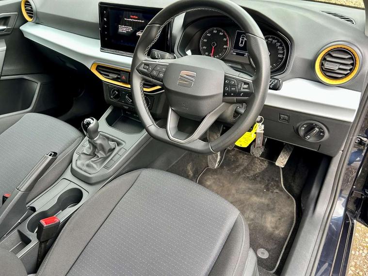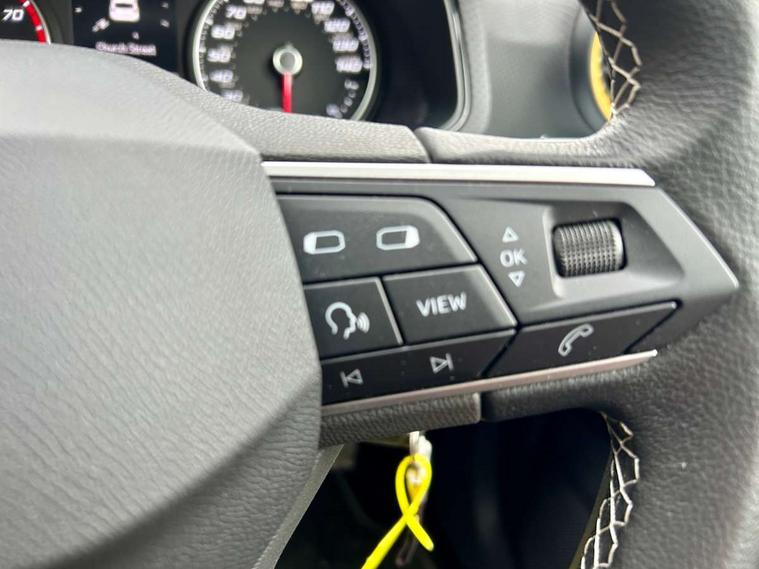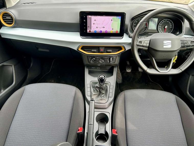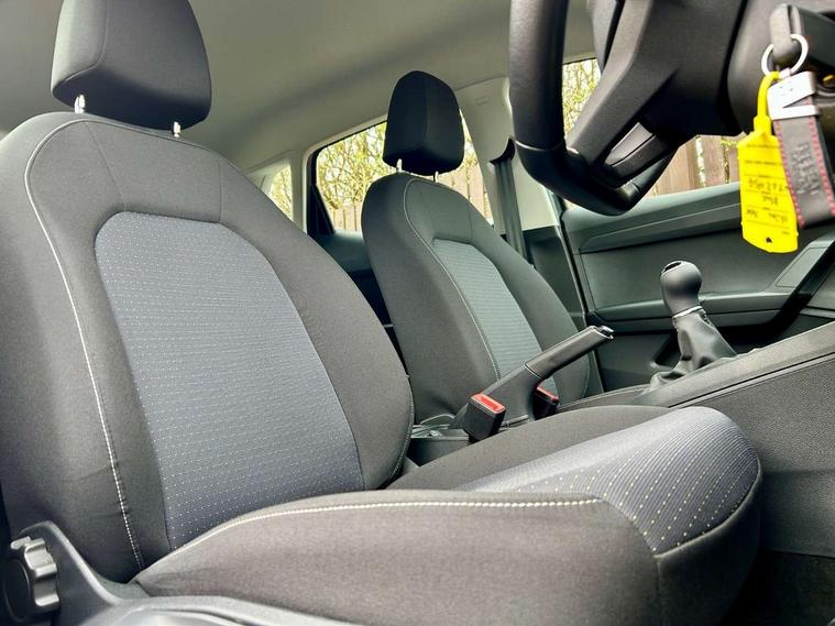 'Lights On' Reminder warning buzzer, 9.2" touchscreen navigation system with type C USB socket, Voice control and DAB/AM/FM radio, Auto start and stop system, Bluetooth audio streaming with handsfree system, Cruise control, Digital clock, E-call, Full link smartphone integration with mirror link, wireless apple carplay, Google android auto + USB Type C cable for apple and android devices, Lane assist, Low fuel warning light, Outside temperature gauge, Power Steering, Seat connect with safety, service, remote and online, SEAT logo boot release, Speed limiter, Trip computer, Comfort suspension, Auxiliary input socket, Radio/MP3 player, SD card slot, Steering wheel mounted controls, Anti theft roof antenna, Body colour bumpers, Body colour door handles, Body colour door mirrors, Dimming interior rear view mirror, ECO LED automatic headlights and LED daytime running lights, Electric front windows, Electric headlight adjustment, Electrically adjustable door mirrors, Front/rear fog lights, Halogen tailights, Rain sensor, Rear side wing doors, Rear wiper, Third brake light, 3 seat bench in 2nd row, 60/40 split folding rear seat, Air conditioning with dust and pollen filter, Chrome interior detailing and grey headlining, Cloth upholstery, Comfort seats, Front courtesy lights, Front cupholders x 2, Front reading lights, Gear shift indicator, Glovebox, Height adjustable front and rear headrests (five), Height adjustable front seats, Height/reach adjust steering wheel, Illuminated boot, Instrument lighting with brightness control, Isofix, Leather multifunction flat bottomed sports steering wheel, Passenger sunvisor, Single front passenger seat, Sunvisors with mirror and driver side card holder, 3 point seatbelts on all 3 rear seats, ABS, Active front headrests, Child locks on rear doors, Electronic stability control, Energy recovery system, Front assist forward collision warning and autonomous emergency braking, Front driver and passenger side airbags with curtain airbag and front passenger airbag deactivation, Hill hold control, Multi-Collision braking, Seat belt reminder for front and rear seats, Tiredness recognition system, Tyre pressure monitoring system, Electronic engine immobiliser, Locking wheel bolts, Remote central locking + deadlocks, 16" Design machined alloy wheels in Nuclear grey,
