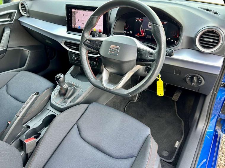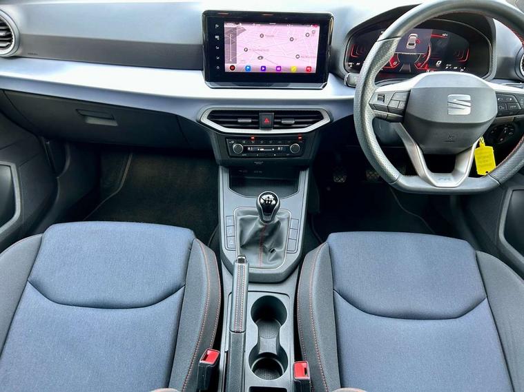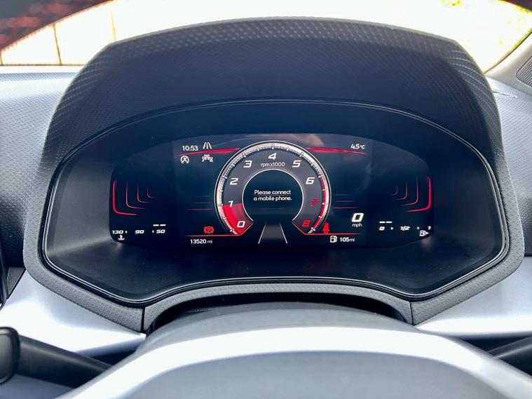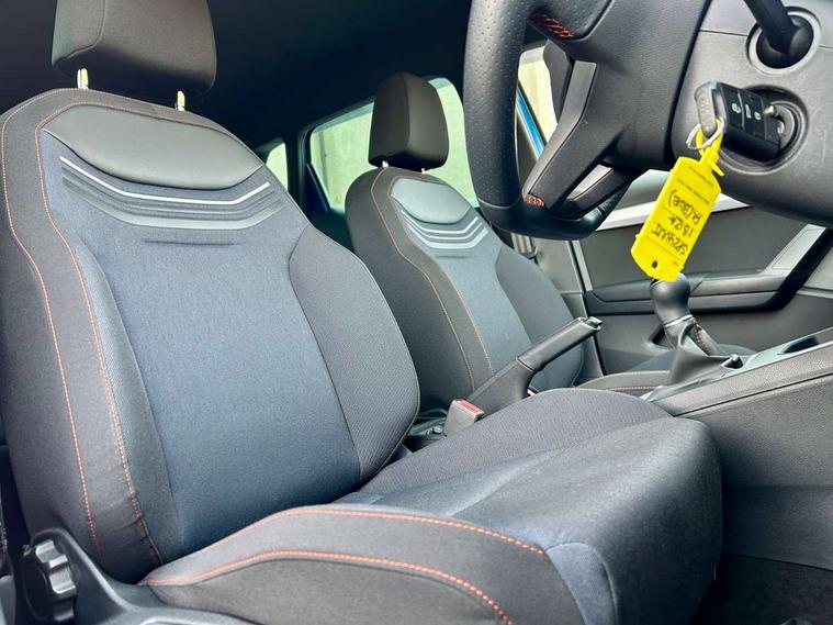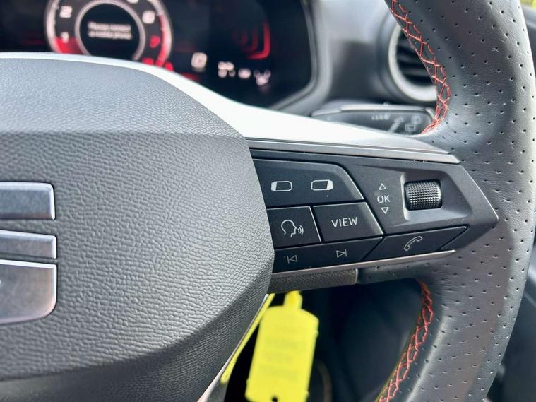 'Lights On' Reminder warning buzzer, 8" Digital cockpit, 9.2" touchscreen navigation system with type C USB socket, Voice control and DAB/AM/FM radio, Auto start and stop system, Bluetooth audio streaming with handsfree system, Digital clock, E-call, Full link smartphone integration with mirror link, wireless apple carplay, Google android auto + USB Type C cable for apple and android devices, Lane assist, Low fuel warning light, Outside temperature gauge, Power Steering, Seat connect with safety, service, remote and online, SEAT drive profiles and ECO function, SEAT logo boot release, Speed limiter, Trip computer, Sports suspension, Auxiliary input socket, Radio/MP3 player, SD card slot, Steering wheel mounted controls, Anti theft roof antenna, Auto dimming rear view mirror, Automatic rain sensing wipers, Black door mirrors, Body colour bumpers, Body colour door handles, Brilliant black window surrounds, Dark tinted rear windows, Electric adjustable/heated/folding door mirrors, Electric front windows, Electric headlight adjustment, Electric rear windows, Front/rear fog lights, FULL LED automatic headlights with dynamic headlight range control, coming and leaving home, LED daytime running lights, LED tail lights, Rear roof spoiler with FR twin exhausts, Rear side wing doors, Rear wiper, Third brake light, 3 seat bench in 2nd row, 60/40 split folding rear seat, Ambient interior lighting, Chrome detailing and black headlining, Cloth upholstery, Dual zone climate control with combination filter, Front courtesy lights, Front cupholders x 2, Front reading lights, Gear shift indicator, Glovebox, Height adjustable front and rear headrests (five), Height adjustable front seats, Height/reach adjust steering wheel, Illuminated air vent surrounds, Illuminated boot, Instrument lighting with brightness control, Isofix, Leather multifunction flat bottomed sports steering wheel, Passenger sunvisor, Single front passenger seat, Sports seats, Sunvisors with mirror and driver side card holder, 3 point seatbelts on all 3 rear seats, ABS, Active front headrests, Child locks on rear doors, Electronic stability control, Energy recovery system, Front assist forward collision warning and autonomous emergency braking, Front driver and passenger side airbags with curtain airbag and front passenger airbag deactivation, Hill hold control, Multi-Collision braking, Seat belt reminder for front and rear seats, Tiredness recognition system, Tyre pressure monitoring system, Electronic engine immobiliser, Locking wheel bolts, Perimeter alarm and interior monitoring with backup horn and tow away protection, Remote central locking + deadlocks, 17" Alloy wheels in Brilliant silver,