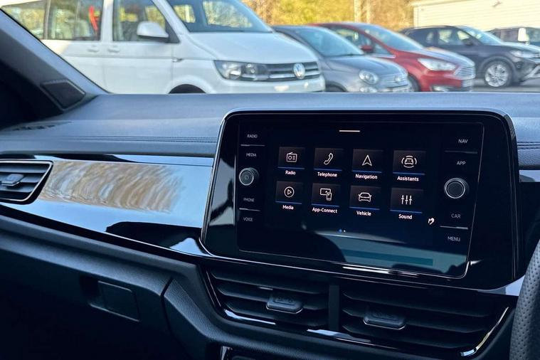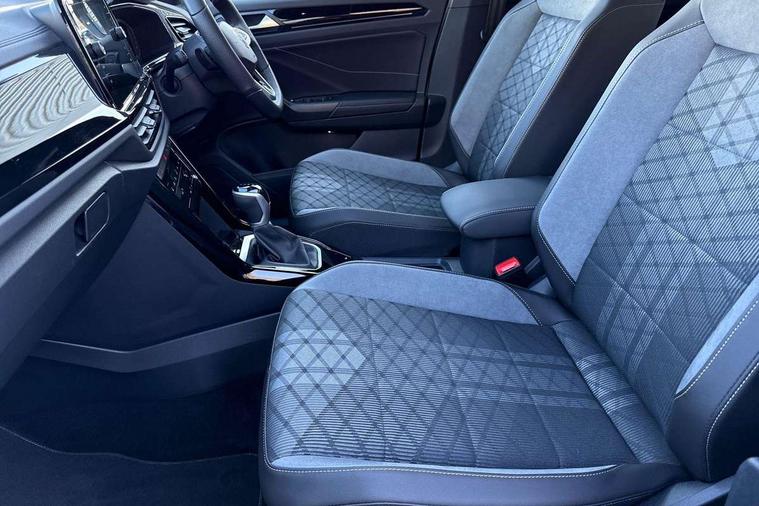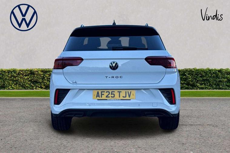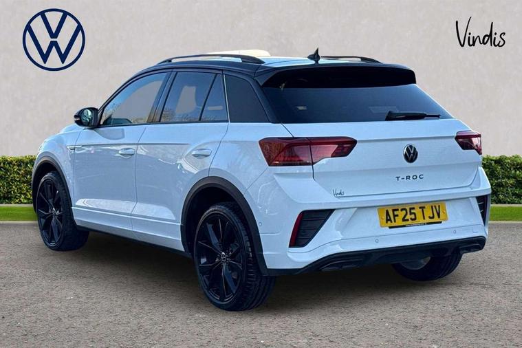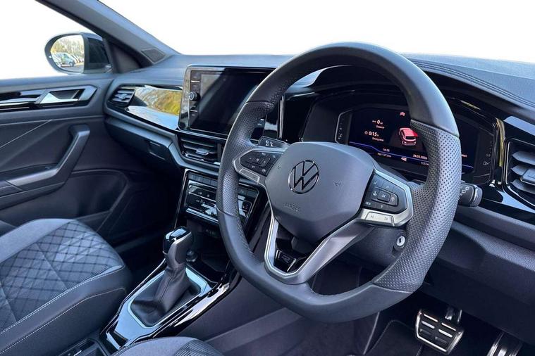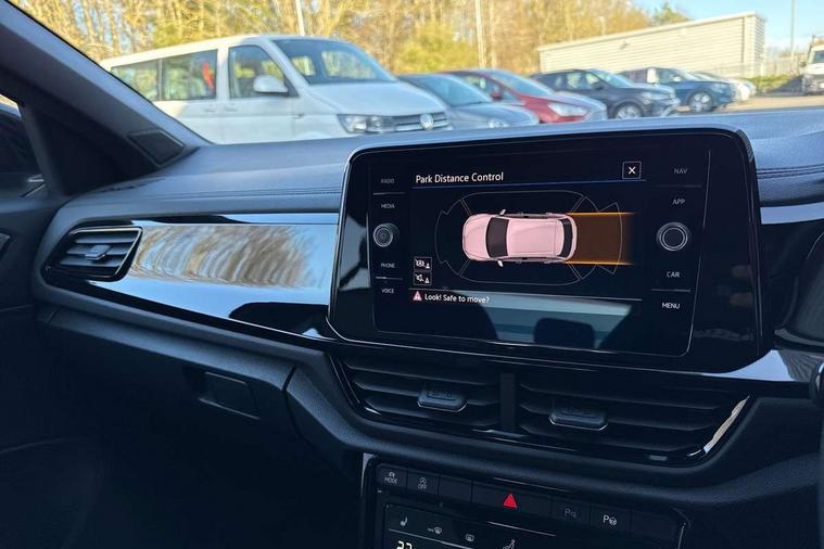10.25" Digital cockpit pro, Advanced driver attention and drowsiness monitor, Emergency call service, Lane keeping system Lane Assist, Mobile phone interface, Modified key software - reduce switch off time for key status change to Long no motion, Online services, Park assist including front and rear parking sensors, Power assisted speed sensitive steering, Service interval indicator, Tailgate/trunk lid release from outside, Think blue trainer driver tips and journey analysis, Warning sound and light for front seatbelts unfastened, Wireless app connect, Battery regeneration during braking, Rear shock absorption chassis with increased ride height, Start/stop function with battery regeneration, DAB Digital radio, Diversity antenna for FM reception, Front and rear 6 speakers, Music playback - MP3, WMA and AAC files, Premium USB cable in choice of either Apple or Android smartphone compatibility, SD card slot, Simultaneous pairing of 2 compatible mobile devices, Title and cover art display, We Connect and We Connect Plus functionality, Auto dimming interior rear view mirror, Automatic hazard lights activation under emergency braking, Automatic headlight control with LED separate daytime running lights with coming/leaving home function, Dynamic cornering light, Electrically adjustable and heated door mirrors, Extended roof spoiler, Exterior mirrors aspherical on driver side, convex on front passenger side, External USB type C socket and charging sockets, Front windscreen wiper with intermittent wipe and 4 position delay, Heated rear window, Illuminated front grille, IQ LED matrix headlights, LED 3rd brake light, LED rear number plate lights, LED rear tail lights with dynamic turn signal, Light mode for poor weather, rain, fog or snow, Power windows with comfort operation and circuit breaker, R-Line design body coloured bumpers, Rain sensor, Rear exhaust tailpipe, Rear fog light on one side and reversing lights on both sides, Rear side wing doors, Rear wash/wipe with intermittent wipe setting, Remote electrically foldable door mirrors, puddle lights and reverse activated passenger's door mirror, 12V power socket in centre console, 3 rear head restraints, 3 seat bench in 2nd row, 4 load lashing points in luggage compartment, Air care climatronic air conditoning system with active combination filter and 2-zone temperature control, Artvelours cloth upholstery, Black roof lining, Chrome plated radiator grille inserts, air vent surrounds and light switch surrounds, Door and side trim panel with leatherette insert, Drawer under drivers seat, Driver seat height adjust, Driver's seat lumbar support, Front + rear carpet mats, Front centre armrest, Front comfort sports seats, Front cupholders x 2, Front footwell illumination, Front reading light, Front scuff plates with R Line logo, Front seat back storage pockets, Glove compartment door with light, Instrument lighting, white adjustable panel illumination, Interior ambient lighting and surround lighting, Interior light delay, Isofix child seat preparation, Leather gearshift handle, Leather wrapped multifunction steering wheel with paddle shift, Load-through provision with cup holder when folded down ('Unsplit rear seat bench, split folding backrest, with centre armrest), Luggage compartment lighting, Non-folding front passenger seat backrest, Passenger seat height adjuster, Passenger seat lumbar support, Single front passenger seat, Stainless steel pedals, Storage compartment in left and right luggage area, Storage compartment in rear doors, Storage compartments in driver and front passenger doors, Sunvisors with illuminated vanity mirrors, Variable boot floor, height adjustable and removable, Winter pack without heated windscreen washer jets - T-Roc, 3 point height adj front seatbelts + pretensioners, 3 point seatbelts in outer rear with ECE label, ABS, Child locks on rear doors, City emergency braking and pedestrian monitoring, Driver and front passenger airbag with front passenger airbag deactivation, Driver and front passenger safety-optimised head restraints, Drivers seatbelt reminder, Electronic parking brake, Electronic Stability Control (ESC) inc EDL (Electronic Differential Lock) and ASR (Traction Control), Front and rear passengers curtain airbag system including front side airbags, Front disc brakes, Hill start assist, Predictive pedestrian protection, Rear disc brakes, Two tone horn, Tyre pressure loss indicator, Volkswagen roadside assistance, Tool kit, Trims for alloy wheels, Tyre mobility kit including compressor and sealing foam,