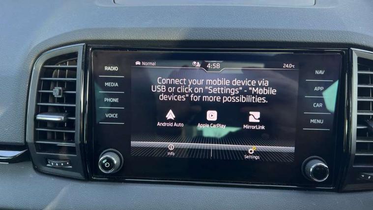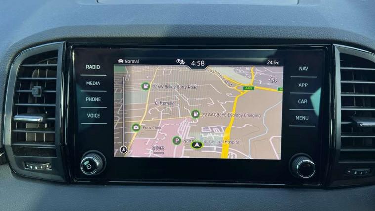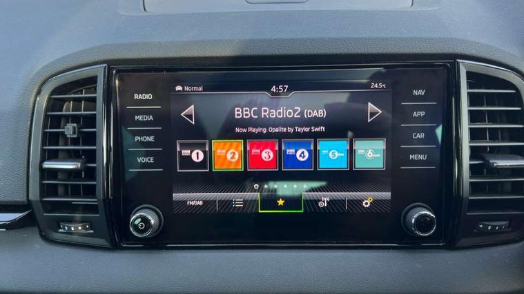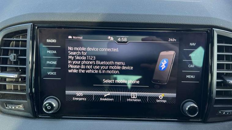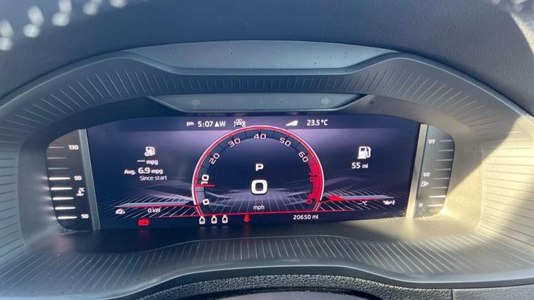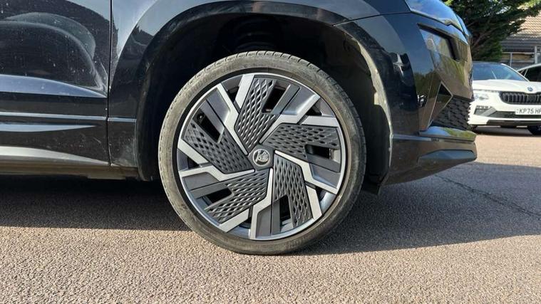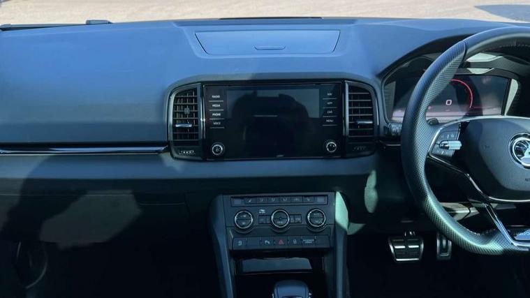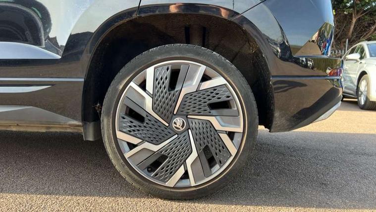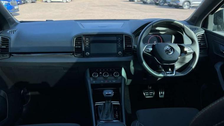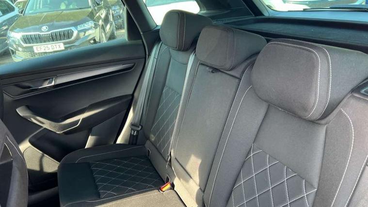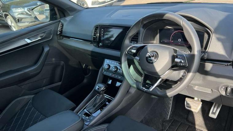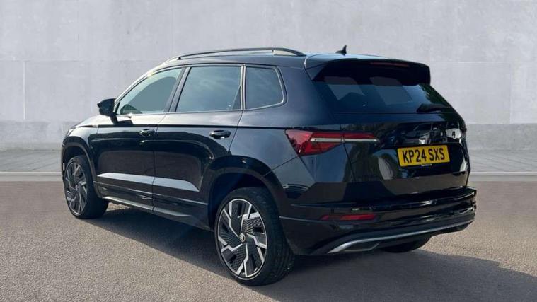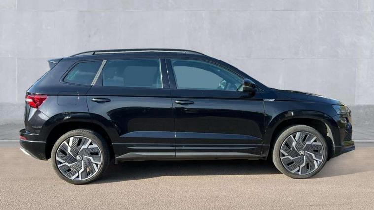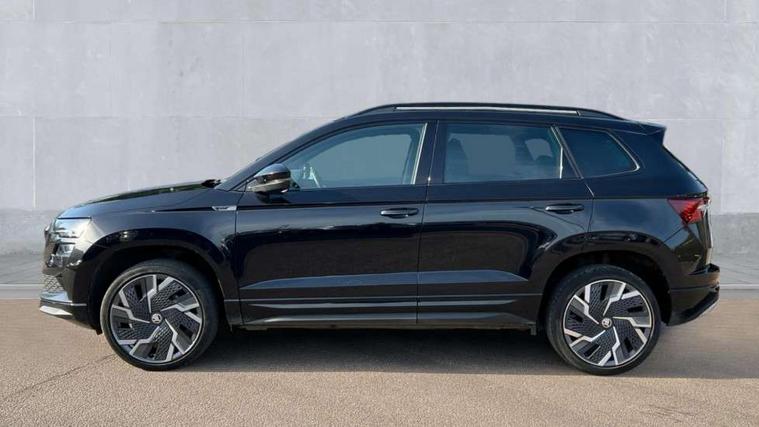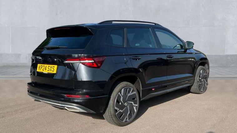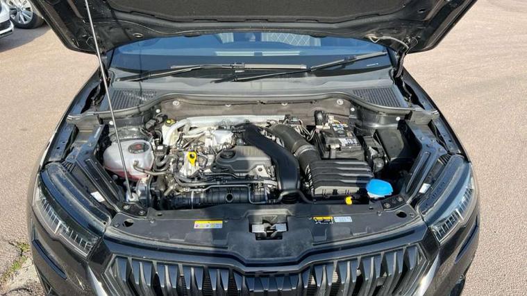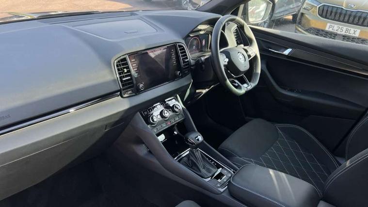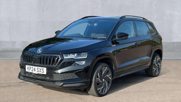 8" Digital display, Advanced driver attention and drowsiness monitor, Emergency services call system, Outside temperature gauge, Sensor for driver assistance systems, Service interval indicator, SmartLink wireless for Apple and wired for Android, Start/stop system with regenerative braking, USB C Port x 2 in front centre console, Virtual Cockpit - 10.25" digital display, Virtual pedal with electrically operated boot door, Wireless smartphone charging, Canton sound system, DAB radio with Bluetooth, USB connection, Acoustic glass, Aero front windscreen wipers with intermittent function, Auto dimming rear view mirror with light and rain sensors, Black door mirrors, Black electric window control buttons, Black radiator grille, Black roof rails, Body colour door handles, Electric front and rear windows with child proof lock, Front door steps with SportLine logo, Heated rear windscreen, LED 3rd brake light, LED daytime running lights, LED rear lights with high functionality welcome effect and dynamic indicators, Light assistant (coming/leaving home/tunnel light), Panoramic sliding sunroof, Plastic scuff plates in door apertures, Privacy glass, Protective door side sills in body colour, Rear diffuser, Rear side wing doors, Rear spoiler, Rear window wiper with washer system and intermittent control, Safety reflectors on front doors, Skoda lettering on tailgate in black, Sportline badge on front fender, Sportline decorative inserts with badging, Sports front and rear bumpers, 1.5 litre bottle holders in driver and front passenger door panels, 12V socket in boot, 12v socket in front centre armrest with storage compartment and rear air vents, 2 x Tablet holder, 3 rear height adjustable headrests, 3 seat bench in 2nd row, 3 spoke leather sports multifunction steering wheel and silver stitching with gear shift paddles, 4 foldable roof handles with rear coat hooks, Black floor carpet, Chrome inner door handles, Double sided boot floor, Foldable hooks in the boot, Front head restraints, Height adjustable front three point seats belts with tensioners, Height/reach adjust steering wheel, Ice scraper, Illuminated glovebox, Illuminated luggage compartment, Isofix child seat preparation for front passenger seat, Isofix child seat preparation outer rear, Manual lumbar support for front seats, Pen holder, Pollen filter, Rear boot cover, Rear reading lights, Rear seats fixed folding and divided 60:40, Rubbish bin door, Safety vest holder, Single front passenger seat, Storage box in upper central dashboard closed, Sunvisors with illuminated vanity mirrors, Textile floor mats, Ticket holder, Titan black interior ceiling, Umbrella under passenger seat, Under passenger seat storage compartment, Welcome animation with sportline logo, Light Pack - Karoq, Non Smokers pack, Automatic door unlocking in case of crash, Automatic fuel cut off in case of crash, Driver airbag, Electronic parking brake with auto hold function, Emergency rear braking signal, ESC including ABS, MSR, ASR, EDS, HBA, DSR, RBS, MKB and traction control, Front side airbags, Head airbags, Hill hold control, Knee airbags, Passenger airbag with switch-off function, Pedestrian monitor, Seatbelt reminder signalisation and pretensioner for all seats, Three point seatbelts rear, Two tone horn, Tyre pressure monitor, Alarm with interior monitoring, back up horn and tilt sensor with safe function, Electronic engine immobiliser, Keyless entry and start/stop, Remote central locking with 2 remote folding keys, Black air vent surround, Black centre console, carbon door decor, Satin black dashboard, Satin black door trim, 19" Sagittarius anthracite alloy wheels, Anti-theft wheel bolts protection, Breakdown and tool kit,