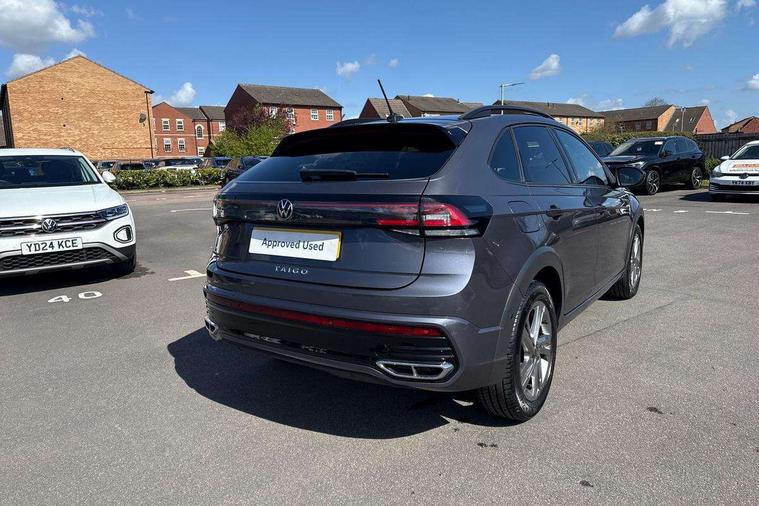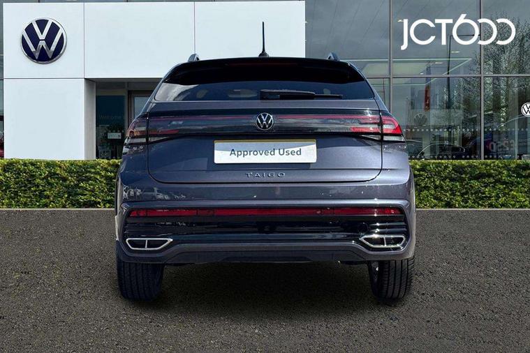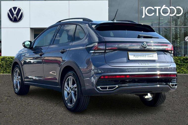 App-Connect including App-Connect Wireless, Digital cockpit pro - 10.25" high resolution TFT dash display screen with customizable menus and information, Driver alert system, Driving profile selection, e-Call (emergency call), Power Steering, Travel assist including emergency assist, Washer fluid level indicator, Wireless Charging including Bluetooth, Start-stop system with battery regeneration (recuperation - energy recovery during braking), XDS electronic differential lock for improved traction and handling, Digital radio reception (DAB+), Diversity antenna for FM reception, WeConnect plus, Aspherical driver's exterior mirror, Auto headlights, Body coloured bumpers, Body coloured exterior mirror housings and door handles, Bumpers in R-Line style, Electric windows, External USB type C socket and charging sockets, Front fog lamps with cornering function, Front scuff plates with R-Line logo, Headlight range control, LED headlamps, LED rear combination lamp, LED third brake light, Left convex exterior mirror, Power folding adjustable/heated exterior mirrors and front passenger exterior mirror lowering function, Rear fog light on one side, reversing light on both sides, Rear side wing doors, Rear wash/wipe with intermittent wipe setting, 12V socket in centre console, 2 front reading lights, 3 rear head restraints, 3 seat bench in 2nd row, Air care climatronic air conditoning system with active combination filter and 2-zone temperature control, Ambient lighting with logo projection, Black carpets, Black roof lining, Child seat anchor for child seat system i-Size, 2x top tether and child seat anchor in front on front passenger side, Chrome bezel for instrument cluster, vents, door handles + gear shift, Driver and front passenger seat height adjustment, Front + rear carpet mats, Front centre armrest, Front footwell illumination, Front sports comfort seats, Height and reach adjustable steering wheel, Interior ambient lighting and surround lighting, Karoso artvelours cloth upholstery, Leather trimmed gear knob, Leather wrapped multifunction steering wheel, Luggage compartment floor, Luggage compartment light, Lumbar support for driver's and front passengers seat, Seat covers in grey + titanium black, Single front passenger seat, Split folding backrest with centre armrest and unsplit rear seat bench, Stainless steel pedals, Storage compartment under front seats, Sun visors with illuminated vanity mirrors, Chrome Package - Taigo, Drivers assistance pack - Taigo, Light and Sight pack including High beam assist - Taigo, 2 x 3-point seatbelts/outer rear seats with ECE label, 3-point seat belts in front with pretensioner and height adjustment, 3-point seatbelt for centre rear seat, Driver and front passenger airbags with front passenger airbag de-activation, front side and curtain airbags, Driver and front passenger safety-optimised head restraints, Electronic stability control, Extended and predictive pedestrian/ cyclist protection, Front and rear disc brakes, Front curtain and side airbags with center airbag, Hill start assist, Manual rear child locks, Single tone horn, Tyre pressure loss indicator, Anti-theft alarm system with interior monitoring, backup horn, and towing protection, Anti-theft wheel bolts, Grey anodised matte decorative inserts in dash and front door panels, Low rolling resistance tyres,