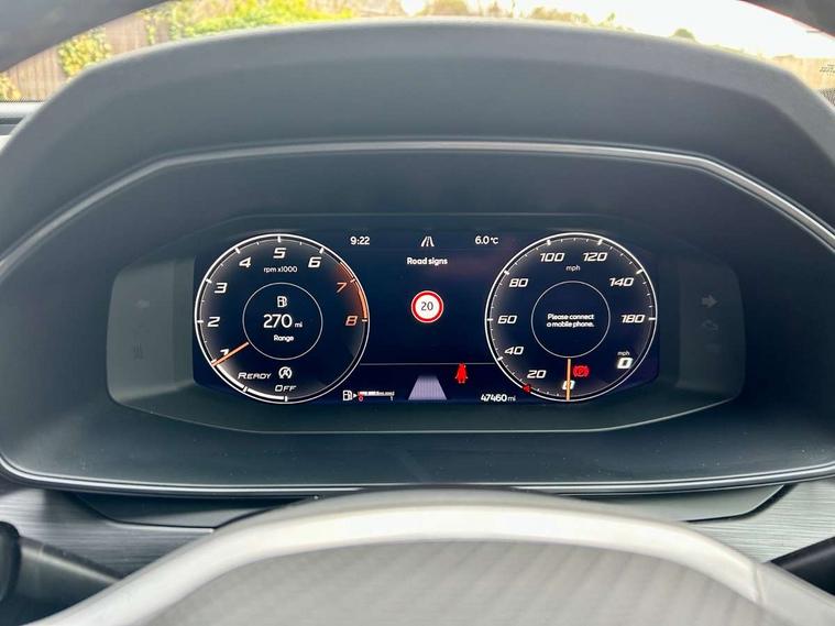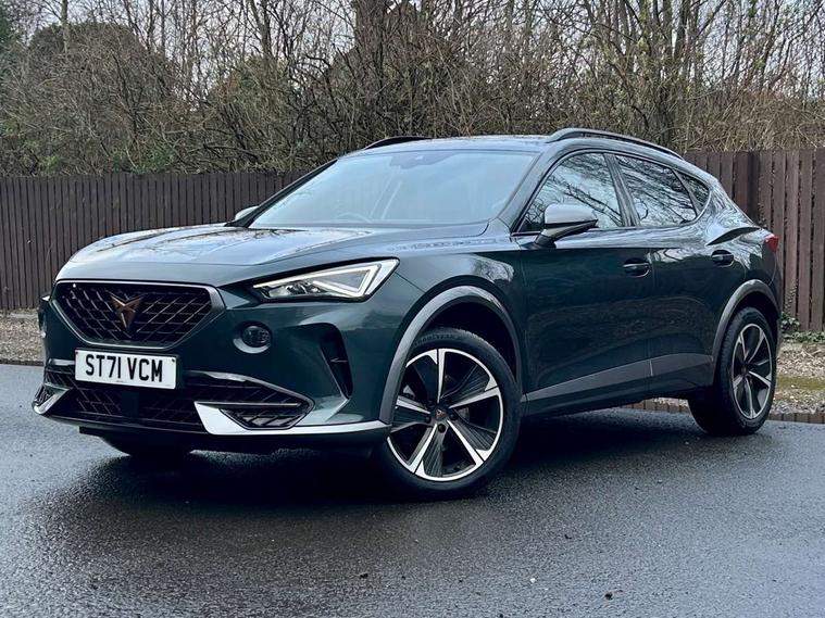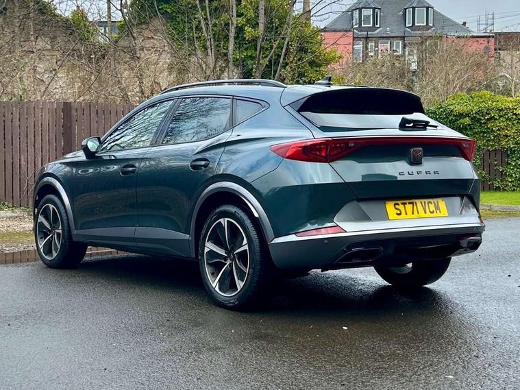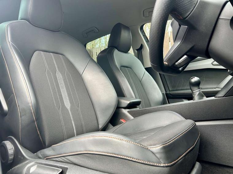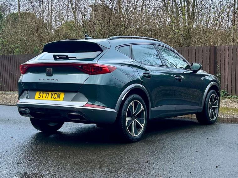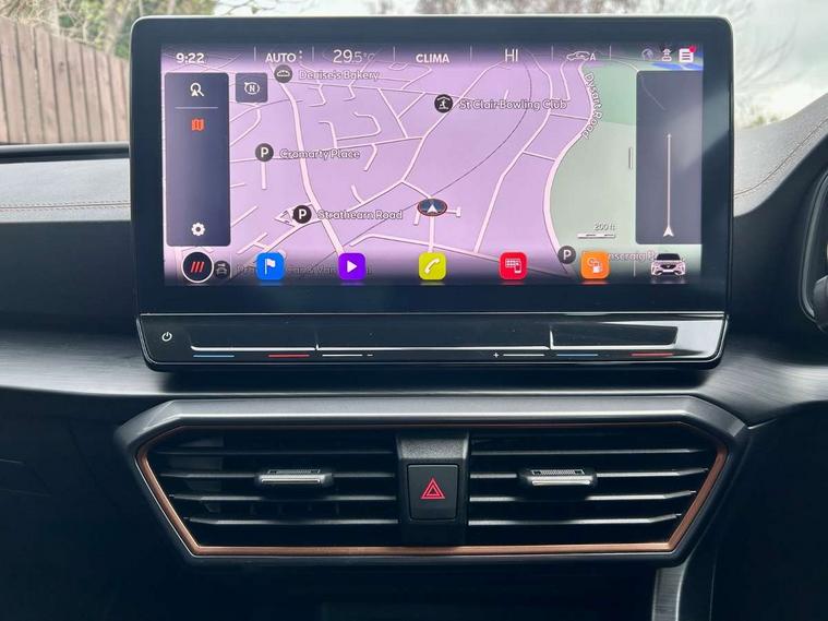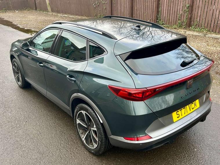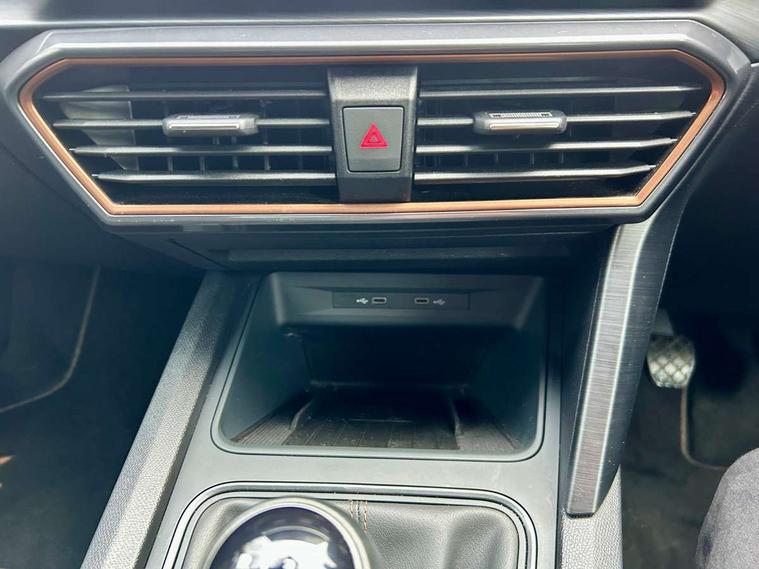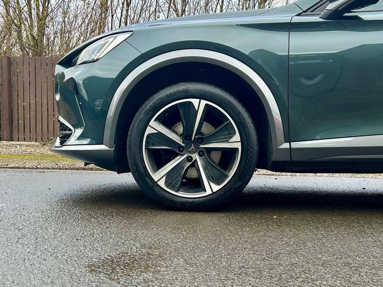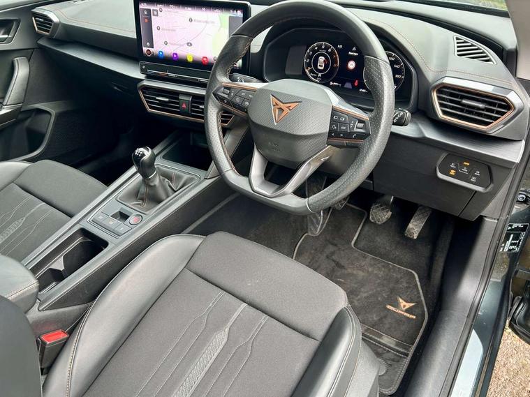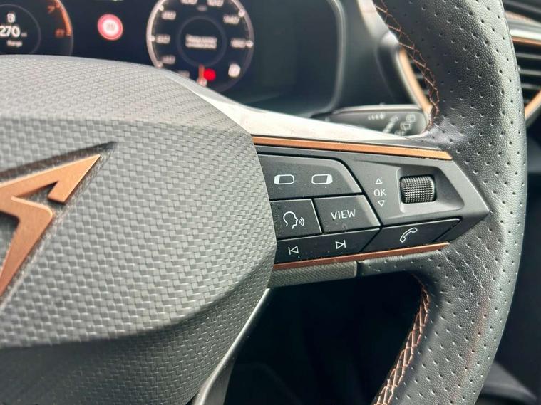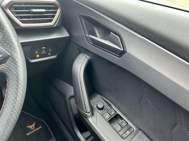 Copper and aluminium interior detailing, Navigation system pack with 10" navigation system - Formentor, Safety and driving pack (M) - Formentor, Anti theft alarm system, Keyless entry and start system (KESSY), Locking wheel bolts, 2 front and 2 rear USB type C sockets, Auxiliary input socket, DAB radio, 3 point seatbelts on all rear seats, ABS, Brake control system - ESC and brake booster, Child proof door locks, Driver and front passenger airbags with front passenger airbag de-activation, Electronic parking brake, Front and rear disc brakes, Front side curtain airbags, Hill hold control, Seat belt reminder for front and rear seats, Tyre pressure monitoring system, Auto dimming rear view mirror, Body colour door handles, Body coloured bumpers, Dark grey wing mirror, Daytime running light with automatic headlight control and coming home feature, Dynamic headlight range control, Electric front/rear windows, Electrically adjustable, heated and folding door mirrors, Front fog lamps with cornering function, Gloss black roof rails and window surrounds, LED Headlights, LED Taillights with dynamic indicator, Rain sensing wipers, Rear diffuser with black simulated exhaust pipes, Rear side wing doors, Rear wash/wipe, Third brake light, Tinted rear windows, Welcome lights, 12v power supply in centre console, 12V socket, 12v socket in loadspace, 2 front and 2 rear reading lights, 230V socket, 3 seat bench in 2nd row, 60/40 split rear bench seat with armrest and mechanical seat release, Dust/pollen filter, Front and rear head restraints, Front centre armrest, Height/reach adjust steering wheel, Illuminated interior front door sills, Illuminated sunvisor with mirror, Interior ambient lighting, Isofix, Leather multi function steering wheel, Luggage tie-down hooks, Manually adjustable height and lumbar support for front seats, PVC/Cloth upholstery with copper stitching + Sport seats, Single front passenger seat, Three zone climate control with control panel in rear, Variable luggage/load compartment floor, Digital cockpit and configurable dashboard, Driver alert system, Driving profile selection, E-call, Forward collision warning with automatic braking, Lane assist, PAS, Predictive adaptive cruise control with speed limiter, Rear parking sensors, RPM, trip computer, outside temp gauge, instrument light brightness, low fuel warning light, lights on reminder, gearshift indicator, Service interval indicator, Start/stop system with regenerative braking, Wireless apple carplay, Wireless phone charger, Electronic locking differential and dynamic traction support, Standard suspension,