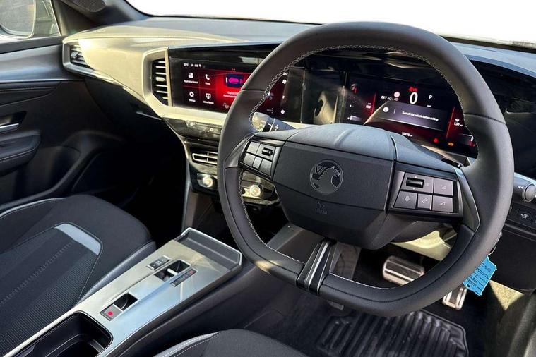 10" digital instrument cluster, Cruise control with intelligent speed limiter, Digital instrumentation with digital speedometer, rev counter, fuel and water temperature gauge, Drive mode selector, Driver attention alert, Driver drowsiness alert system, Driver information display with multi function trip computer, audio info, digital clock and outside air temperature with ice warning function, Lane keep assist system (LAS) with Lane departure warning system (LDWS), Lights on audible warning, Panoramic rear view camera, Power assisted speed sensitive steering, RDS with traffic programme, Rear parking distance sensors, Speech recognition, Start/stop system, Vauxhall connect with e-Call, WiFi connectivity, Wireless phone projection with Apple CarPlay and Android Auto, Sports chassis, 2 rear USB connection, 6 speakers, AM/FM stereo radio with 36 station presets, DAB Digital radio, Front USB connection, Mobile phone portal - bluetooth connect, vehicle microphone, handsfree calls, SMS read out and reply, phone book access, Multimedia pure panel system with 10" colour touchscreen, Steering wheel mounted controls, Adaptive brake lights, Automatic lighting control with tunnel detection, Black DLO, Black door mirror housings, Black Griffin logo and vizor frame, Black lettering and emblems, Black upper window moulding, Body colour door handles, Body colour front and rear bumpers, Body colour skid plates, Dark tinted rear side windows, Electrically adjustable and heated door mirrors, Electrically operated front and rear windows with safety auto reverse and one touch up/down facility, Hazard warning lights, Heated rear window+rear wash/wipe, High gloss black front and rear bumper inserts, High gloss black painted claddings, lower grille and front lateral inserts, High gloss black painted lateral moulding, Integrated black tailgate spoiler, Intelli LED headlights, LED 3rd brake light, LED daytime running lights, LED side repeat indicators, LED tail lights, Manual headlamp level control, Rain sensitive windscreen wipers, Rear side wing doors, Reversing light, Shark fin antenna, Solar heat absorbing windscreen and windows, Windscreen and side window demist vents, 12V Accessory socket, 3 seat bench in 2nd row, 4 speed fan with illuminated controls, 6 way adjustable front passenger seat including height adjustment, 60/40 split folding rear seat, Air recirculation system, Aluminium effect sports pedal, Ambient lighting, Black headliner, Cabin particulate filter - removes dust, airborne particles and pollen, Centre armrest console, Chrome effect interior door handles, Door pockets with two litre capacity, Driver and passenger sun visors with vanity mirror, Electronic climate control (ECC), Focus cloth/leather upholstery, Four adjustable facia vents, Four load restraint lashing eyes, Front centre armrest with storage, Front driver and co-driver side articulated grab handles, Front head restraints, Front map reading lights, Front seat back storage pockets, Fully carpeted load area, Interior courtesy light, Interior tailgate handle, Luggage compartment cover, Luggage compartment lighting, Reach + rake adjustable steering column, Rear Reading Lamps, Single front passenger seat, Steering wheel mounted paddle shift, Three height adjustable rear seat head restraints, Twin gas assisted tailgate struts, 2x Isofix child seat fitting on outer rear seats, 3x3 point rear seat belts, Anti-lock braking system (ABS), Child proof locks on rear doors, Cornering brake control, Deactivation switch for front passenger front and side impact airbags, Drag torque control, Driver and front passenger airbags, front seat side impact airbags, full size curtain airbags, Electric parking brake, Electronic brake force distribution, Electronic Stability Programme (ESP), Emergency brake assist, Enhanced automatic emergency braking with pedestrian detection, Forward collision alert at low speed, Hill start assist, Inertia reel lap and diagonal seatbelts for all seats, Seatbelt unfastened audible warning and warning light, Straight line stability control, Traction control, Tyre pressure monitoring system, Electronically protected audio equipment, Engine deadlock immobiliser, Freewheeling door locks, Key left in ignition audible warning, Locking wheel nuts, Remote control central locking, Remote control ultrasonic security alarm system, Visible vehicle identification number, Light grey trim inserts on front doors, Vegan door inserts, 18" Black diamond cut alloy wheels,