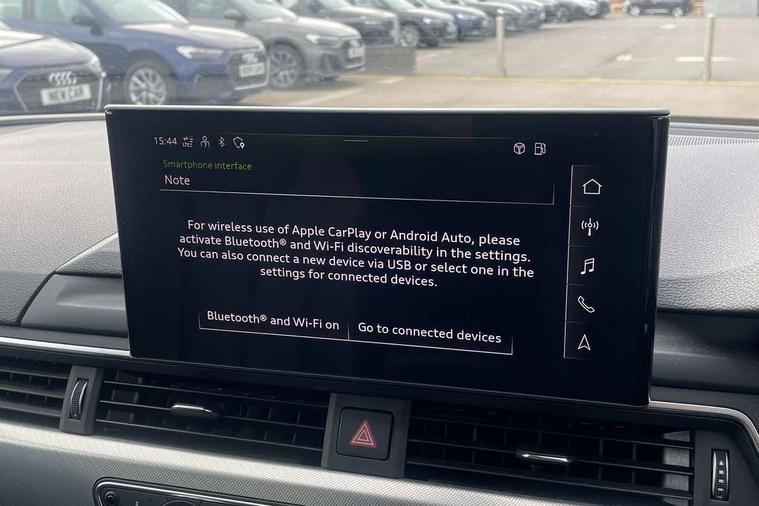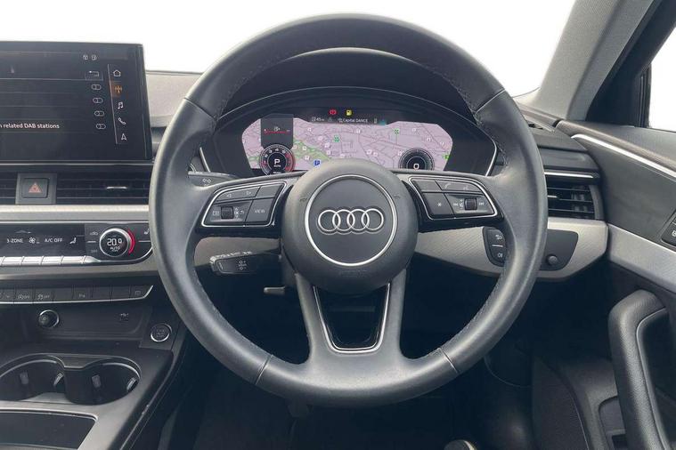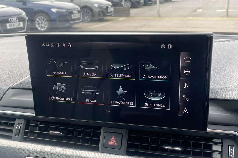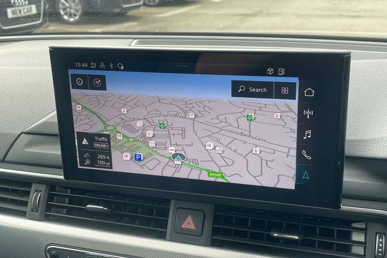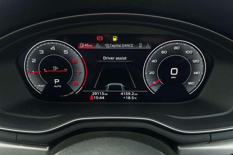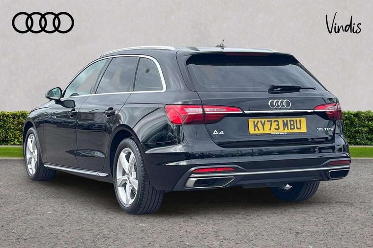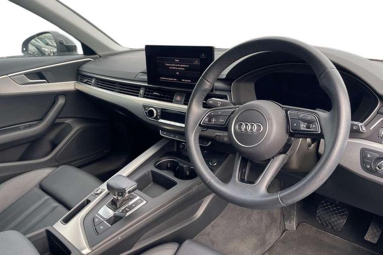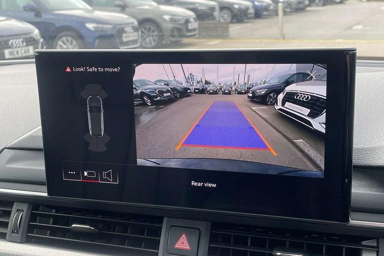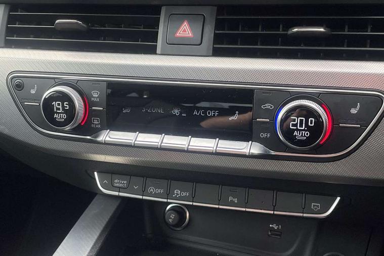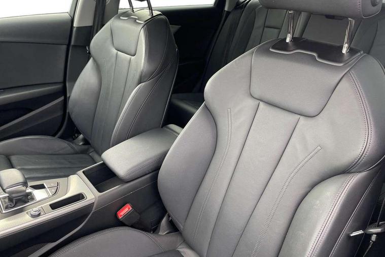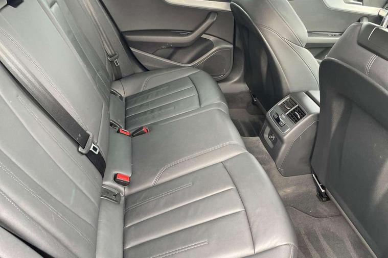 Audi connect safety and service (e-call), Audi drive select, Audi smartphone interface, Audi virtual cockpit, Automatic start-stop system with coasting functionality and efficiency programme, Bluetooth interface, Camera based traffic sign recognition, Electromechanical power steering, Email, calendar and text messages displayed via MMI, Front and rear parking sensors, Lane departure warning, MMI Navigation plus with MMI touch includes 10.1" high resolution colour MMI display, 3D map, Power operated tailgate, Rear view camera, Voice control system, 54 litre fuel tank, Comfort dynamic suspension, 2 USB charging ports, 8 passive loudspeakers, DAB digital radio reception, Aluminium roof rails, Auto dimming rear view mirror, Body colour door handles, Body colour side sill trim, Body coloured door mirrors, Electric adjustable/heated/folding door mirrors with auto dimming, LED headlights and rear lights with LED daytime running lights, LED third brake light, Matt aluminium silver tailpipe trim, Rain and light sensors, Rear side wing doors, Rear wiper, S Line roof edge spoiler, Sport front and rear bumpers with side skirts, Variable intermittent front wash/wipe, Windscreen with acoustic glazing, 3 spoke high multi-function leather sport steering wheel with paddle shift and height and reach adjustable, 4 way electric lumbar support for driver and front passenger, 40/20/40 split folding 3 rear seat bench in 3 parts with rear centre armrest, Black carpets, Contrast stitching on seats, steering wheel and gear lever gaiter, Deluxe 3 zone electronic climate control, Door sill trims with aluminium inlay, Electric load area cover, Front and rear head restraints, Front centre armrest, Heated front seats, ISOFIX child seat mounting and top tether, Manual seat adjustment, Single front passenger seat, Twin leather upholstery + front sports seats, High gloss package - A4, LED Interior light pack - A4/S4, 3 rear seatbelts, 6 airbags - Driver, front passenger, curtain and side windows, Attention and drowsiness assist, Electronic Stabilisation Control (ESC) including ABS, ASR and EDL, Hill hold assist, Multi collision brake assist, Pop-up bonnet for pedestrian protection, Pre sense city, Rear door child safety locks, Seatbelt monitoring, Warning triangle and first aid kit, Anti theft alarm, Anti theft wheel bolts, Central locking, Keyless Go, Aluminium ellipse silver inlays, Tool kit, Tyre repair kit,