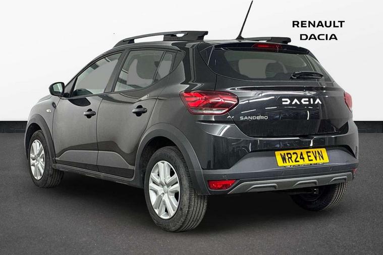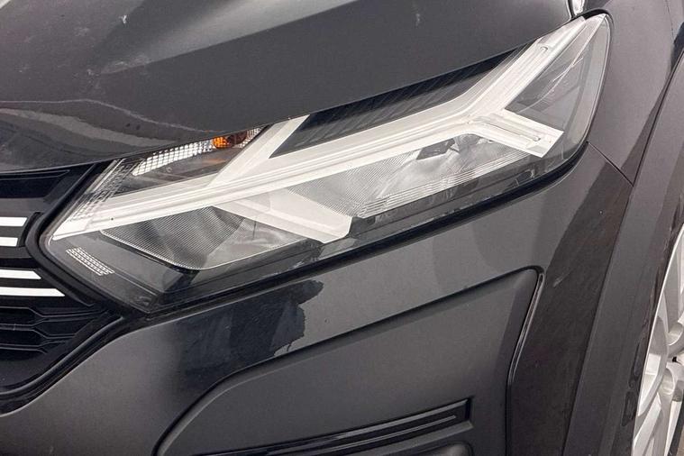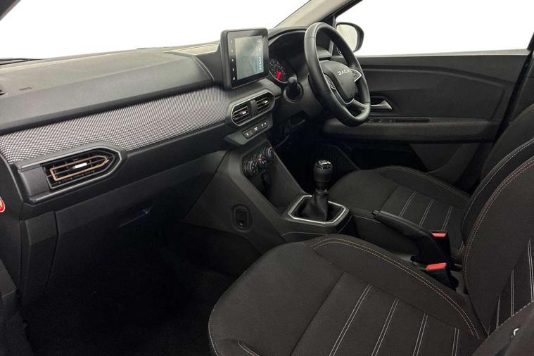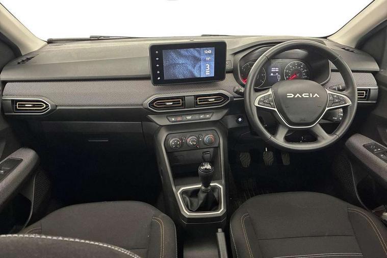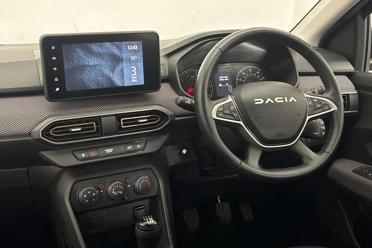 3.5" TFT instrument panel with on-board computer, Cruise control with speed limiter, Driver attention warning, eCall emergency call system, Eco mode, Electric power assisted steering, Emergency Stop Signal (ESS), Event data recoder, Lane departure warning, Lane keep assist, Rear parking sensors, Rescue code, Rev counter, Reversing camera, Stop/start system, Traffic sign recognition with speed alert/Intelligent speed assist (ISA), 8" Media display - DAB radio, smartphone replication, bluetooth, 4 speakers, Apple CarPlay and Android Auto, USB connection for data transfer and charging, USB socket, USB-C plug, 3 speed windscreen wipers, Auto lighting, Automatic wipers, Black radiator grille with white inserts stepway inscription, Body colour door handles, Body colour door mirrors, Body coloured bumpers, Drivers one touch electric windows, Electrically adjustable and heated door mirrors, Expression specifc decal below door mirror, Front electric windows, Front fog lights, Heated rear window, High level third brake light, LED automatic daytime running lights, LED Y-shape Dacia signature lighting, Megatith modular roof bars, Rear electric windows, Rear side wing doors, Rear wash/wipe, Tinted windows, White Dacia inscription on tail gate, White stepway inscription on roof bars, 1/3 to 2/3 split folding rear seats, 12 volt front socket, 12 volt rear socket, 3 height adjustable rear headrests, 3 seat rear bench, Driver and passenger vanity mirror with cover, Fabric upholstery, Fixed smartphone holder on dashboard, Floor mats, Fog grey and copper orange air vents, Fog grey interior door handles, Gear shift indicator, Height adjustable drivers seat with armrest, Height adjustable front headrests, Height/depth adjustable steering wheel, Isofix points for child seats in both outer rear seats, Manual air conditioning, Single front passenger seat, Soft feel steering wheel, Steering wheel controls, 3x3 point rear seatbelts, ABS and Emergency brake assist, Advanced emergency braking system, Alcohol imoboliser predisposal, Automatic emergency braking system, Child locks on rear doors, Door open visual and audible warning, Driver airbag, EBD - Electronic brakeforce distribution, ESC (Electronic Stability Control), ESP + Hill Start Assist, Front curtain airbags, Front seatbelt pretensioners, Front side airbags, Height adjustable front seatbelts, Passenger airbag, Seatbelt reminder for driver and front passenger, Side impact protection, Tyre pressure monitor, Automatic central locking, Immobiliser, Keyless entry, Remote central locking, Decopart on instrument panel and door with textile, 16" Atara dark flexwheels,