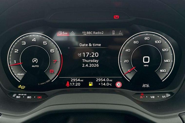 3D map display, Audi connect navigation and infotainment includes innovative services, Audi connect remote and control connects your vehicle to your smartphone, Audi drive select: power steering assistance + engine (modes: comfort, auto, dynamic, efficiency, individual), Audi smartphone interface - Apple carplay/Android Auto, USB connect, 2xSDXC card readers, voice control for navi, telephone, music and 3rd party apps, Audi virtual cockpit, Automatic start/stop system with recuperation, Bluetooth interface includes bluetooth audio streaming, Camera based traffic sign recognition, Cruise control, Distraction and Fatigue warning, E-call, Jukebox hard drive memory for music (10GB), Lane departure warning, MMI navigation plus with 8.8" touchscreen, Natural voice recognition, Power operated tailgate, Progressive steering, Rear parking sensors, 6 passive loudspeakers, DAB Digital radio, USB type C port, Auto dimming rear view mirror, Black window trims, Body colour door mirrors, Contrast bumpers in Manhattan grey, Electrically adjustable, folding, auto dimming and heated door mirrors with integrated LED side indicators, Front windscreen with grey tinted sunband, LED daytime running lights, LED headlights with dipped beam, high beam, position lights, indicators, LED third brake light, Rear side wing doors, Rear wiper, Side skirts in manhattan grey, Variable front intermittent wipers, Wheel arch trims in manhattan grey, 12V socket in front, 3 seat bench in 2nd row, 3 spoke leather trimmed multi-function steering wheel with height and reach adjustable, 4-way electric lumbar support for front seats including manual seat height adjustment for both front seats, 60/40 split folding rear seat bench, Black carpets, Front and rear head restraints, Front centre armrest, Front sport seats, Front/rear floor mats, Grey cloth headlining, Height/reach adjust steering wheel, Index cloth upholstery, ISOFIX child seat mounting in front passenger and rear outer seats, Manual air conditioning, Single front passenger seat, 3x3 point rear seatbelts, 6 airbags - Front, curtain and front side airbags, Electromechanical parking brake, Electronic stabilisation control including ABS, ASR and EDL, Front passenger airbag deactivation, Hill hold assist, Pre-sense front with pedestrian recognition, Seatbelt monitoring, Tyre pressure warning light with visual and acoustic warning, Warning triangle and first aid kit, Anti theft wheel bolts, Electronically operated child locks, Remote central door locking, Thatcham category 1 alarm, Aluminium interior element, Black dashboard, Gloss black centre console, Inlays in silver grey diamond paint, Tool kit,